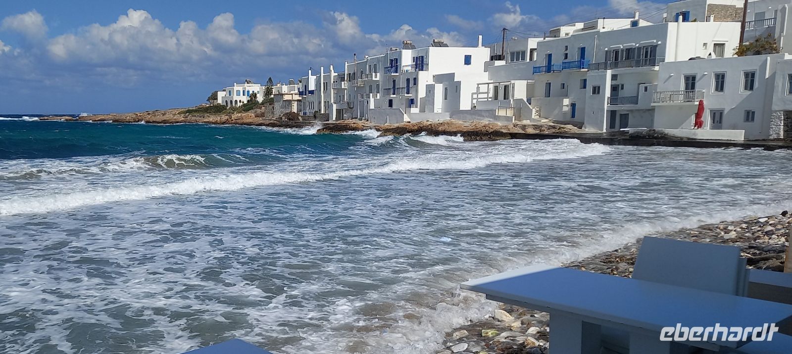 Allerdings erreichte mich, als Reisebegleiter dann ein Anruf von EHT, dass wir aufgrund der Wettersituation heute schon Paros verlassen müssten: Morgen gäbe es wegen des zunehmenden starken Windes keine Fähren mehr nach Piräus. So wurde unsere Freizeit verkürzt, wir mussten früher zurück zum Hotel, um genügend Zeit zum Packen und Auschecken zu haben – Sehr schade!