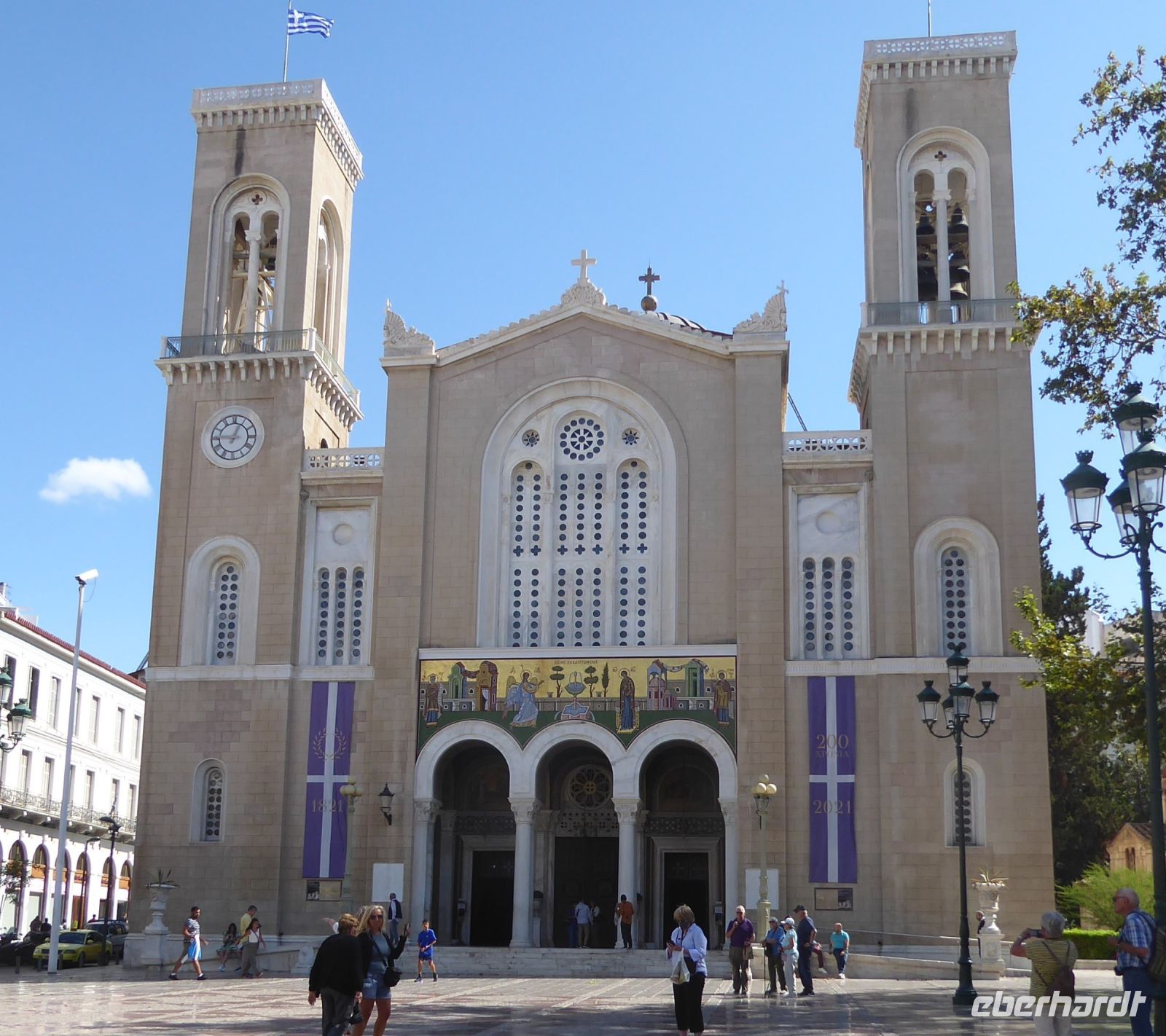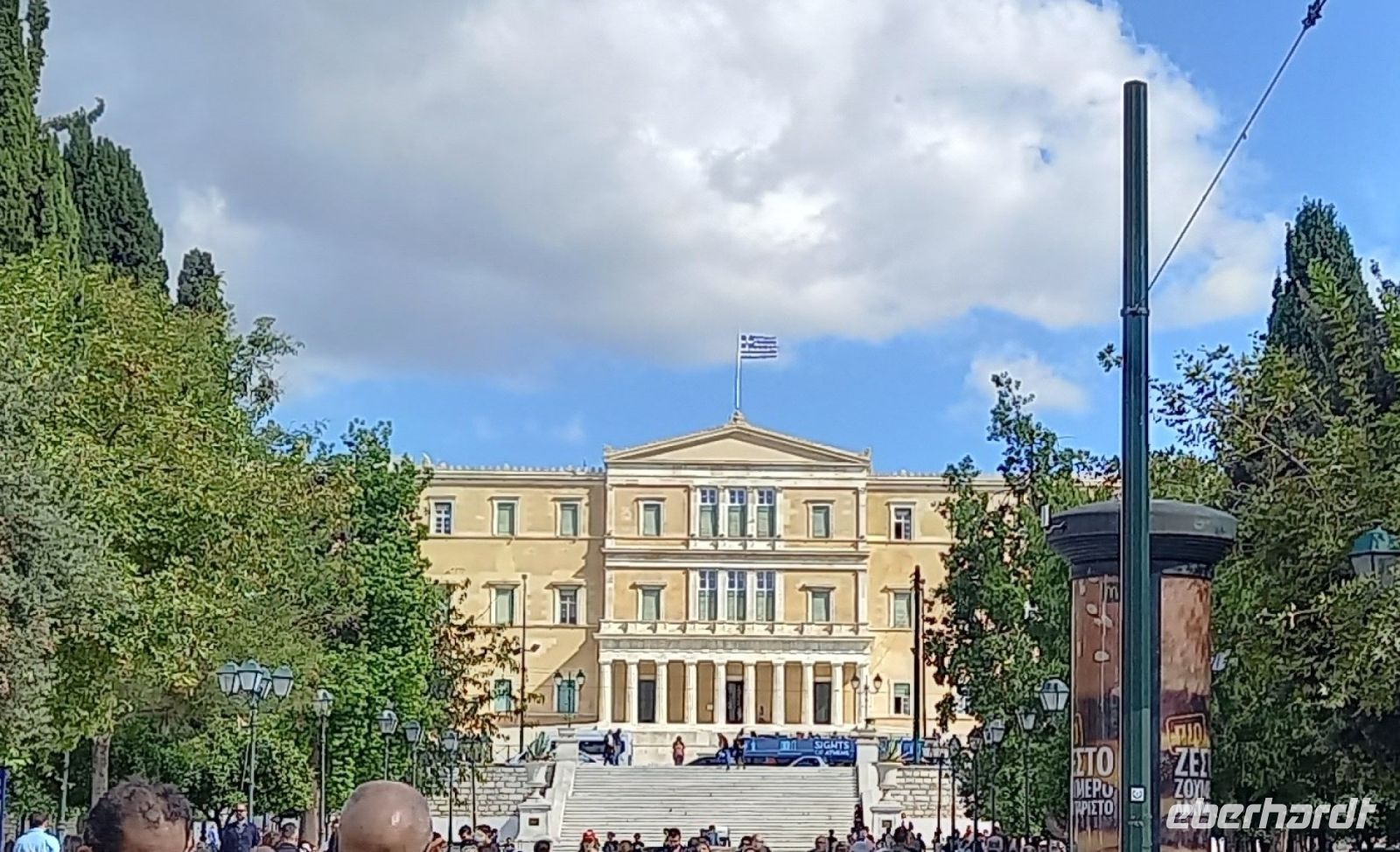 Nach knapp zwei Stunden ging es zu Fuß den Hügel hinunter, vorbei an der Römischen Agora und dem Turm der Winde in die Athener Altstadt, die Plaka. Als Treffpunkt wurde der Platz vor der Mitropolis, der Kathedrale Athens, vereinbart. Nun konnte jeder die Altstadt auf eigene Weise entdecken. Um 14.45 h waren dann auch alle Gäste wieder auf dem Platz. Nikkos führte uns durch die belebten Shoppingmeilen zum Parlament, wo unser Bus wieder auf uns wartete. Nach einer kurzen Busfahrt, wieder an der Atherner Trilogie vorbei, zum Hotel Titania. Hier konnten wir nach dem schnellen Einchecken noch ein bisschen relaxen, noch einen Spaziergang in der Umgebung machen, und uns auf den Abschlussabend auf der Dachterrasse freuen. Aber zuerst wurde noch unser Guide Nikkos, der uns über eine Woche lang die kykladischen Insel und seine Heimatstadt Athen gezeigt hat, verabschiedet.