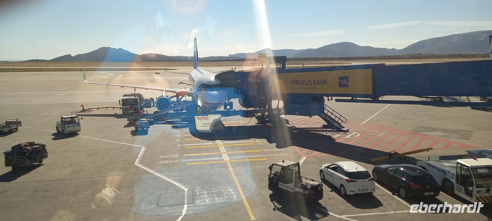 Um 08.15 h treffen wir unseren Guide Nikkos in der Lobby, nun heißt es Koffer in den Bus laden und Abfahrt zum Flughafen zum Weiterflug nach Santorini. Das Einchecken und die Sicherheitskontrollen laufen zügig und reibungslos, im 11.20 h ist Abflug, um 11.55 h Ankunft auf Santorini. Nach einigem Hin und Her bei der Gepäckaufnahme und beim Lost+Found hatten wir schließlich auch die drei vermissten Koffer.
