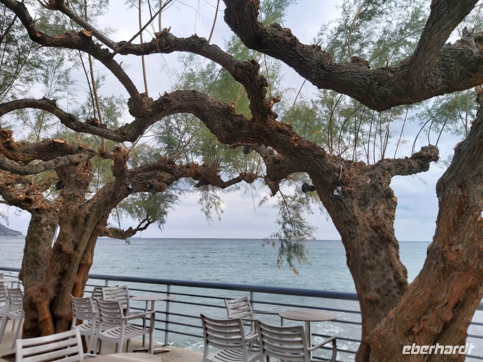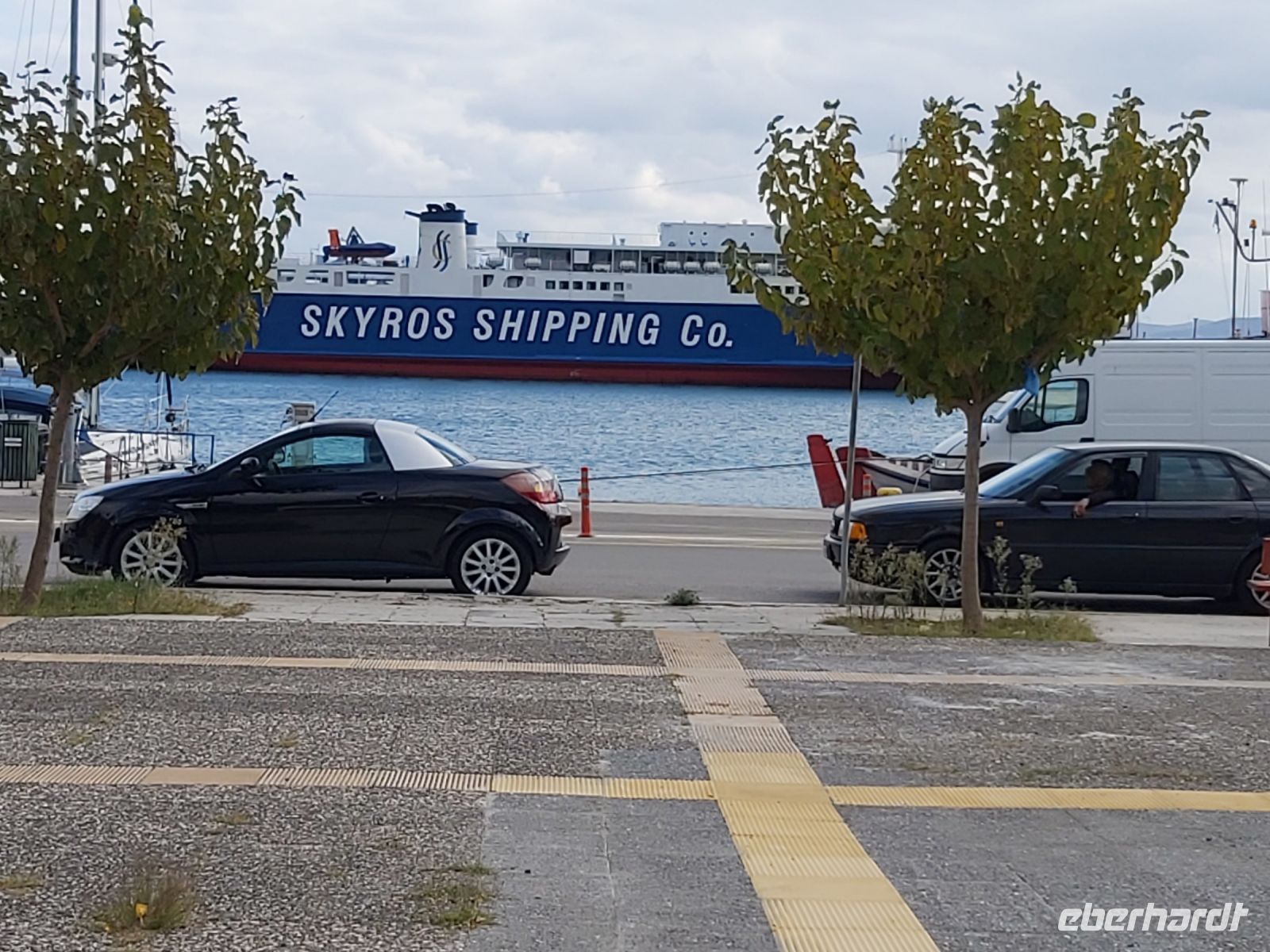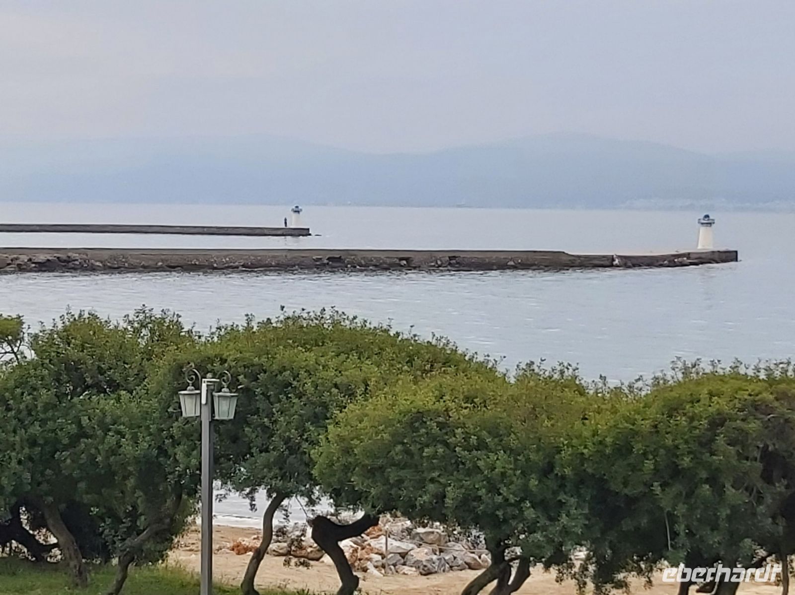 Anschließend fahren wir abwärts in die Stadt Karystos am Meer, nehmen unser Lunch, spazieren an der Promenade und beschauen die ankernden Fischerboote. Dann fahren wir Richtung Hotelunterkunft nach Eretria. Im Hotelresort atmen wir durch- alle haben Zimmer mit Balkon und Meerblick. Der Verheißung des Gartenpools können wir widerstehen, da das Wasser kälter ist als das Meerwasser: bei 21 Grad Wassertemperatur und 17 Grad Lufttemperatur steigen wir ins Meer.