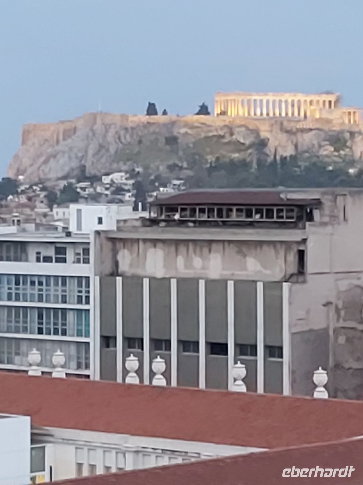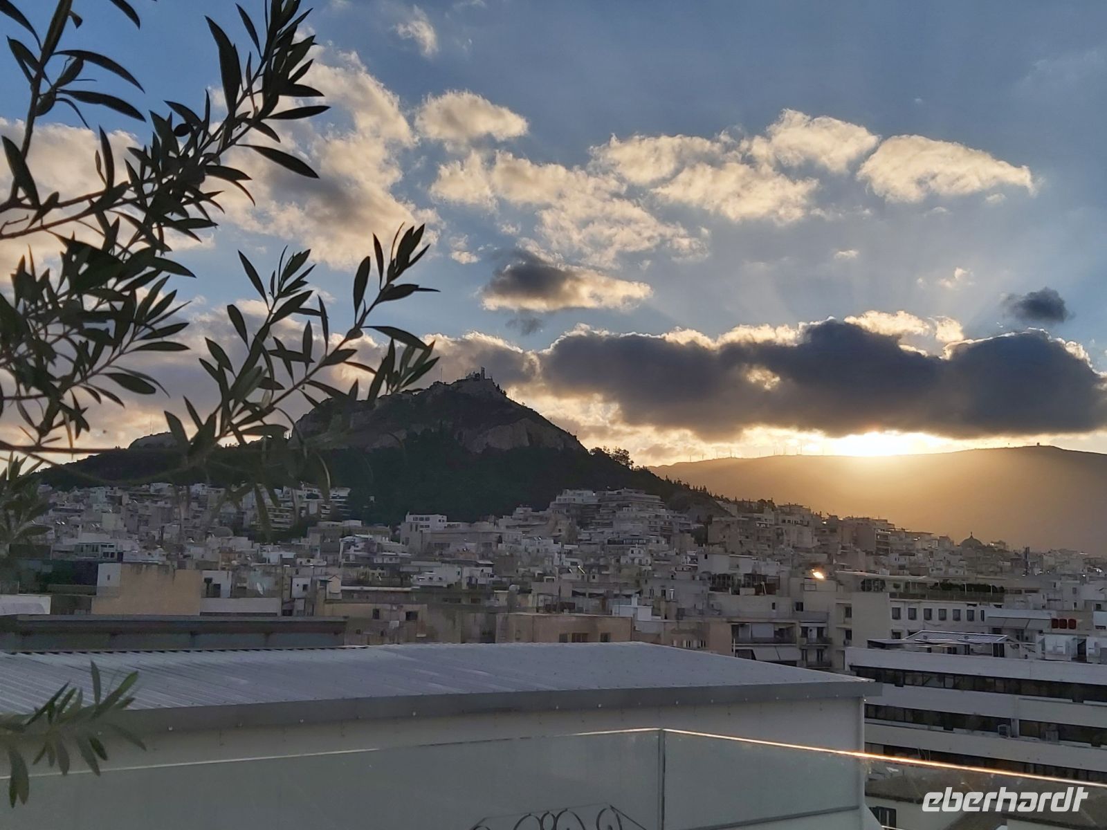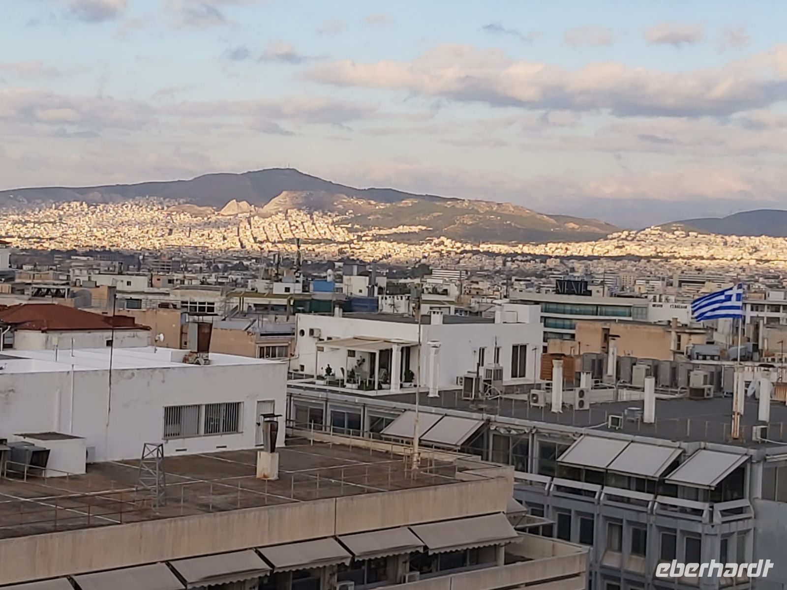 Beim Frühstück konnten wir die Akropolis sowie den Lykabettushügel (277 m) in der Morgensonne betrachten.
