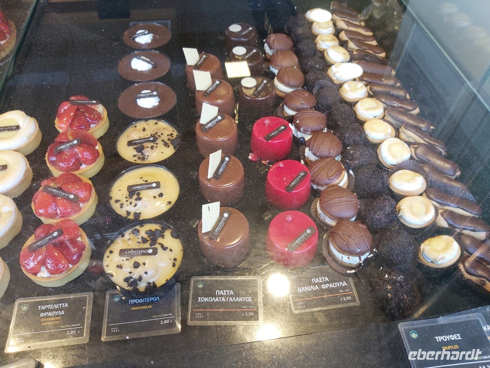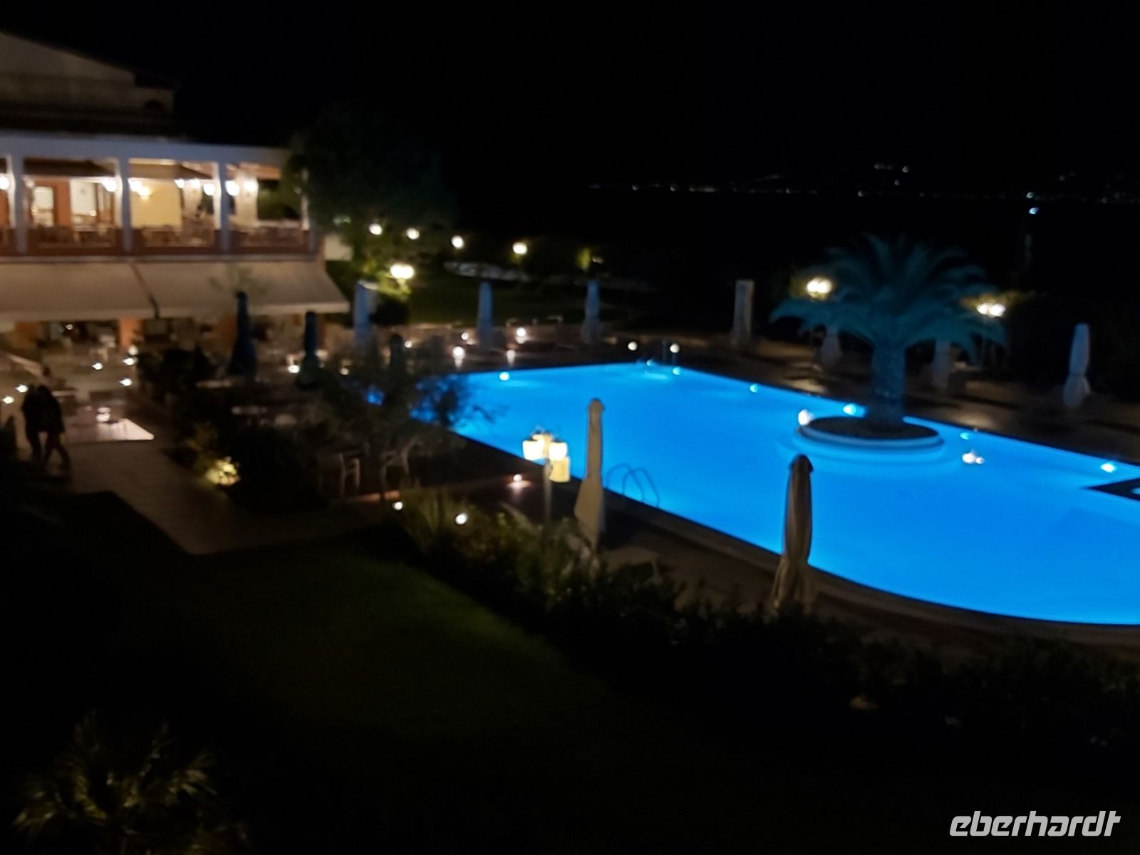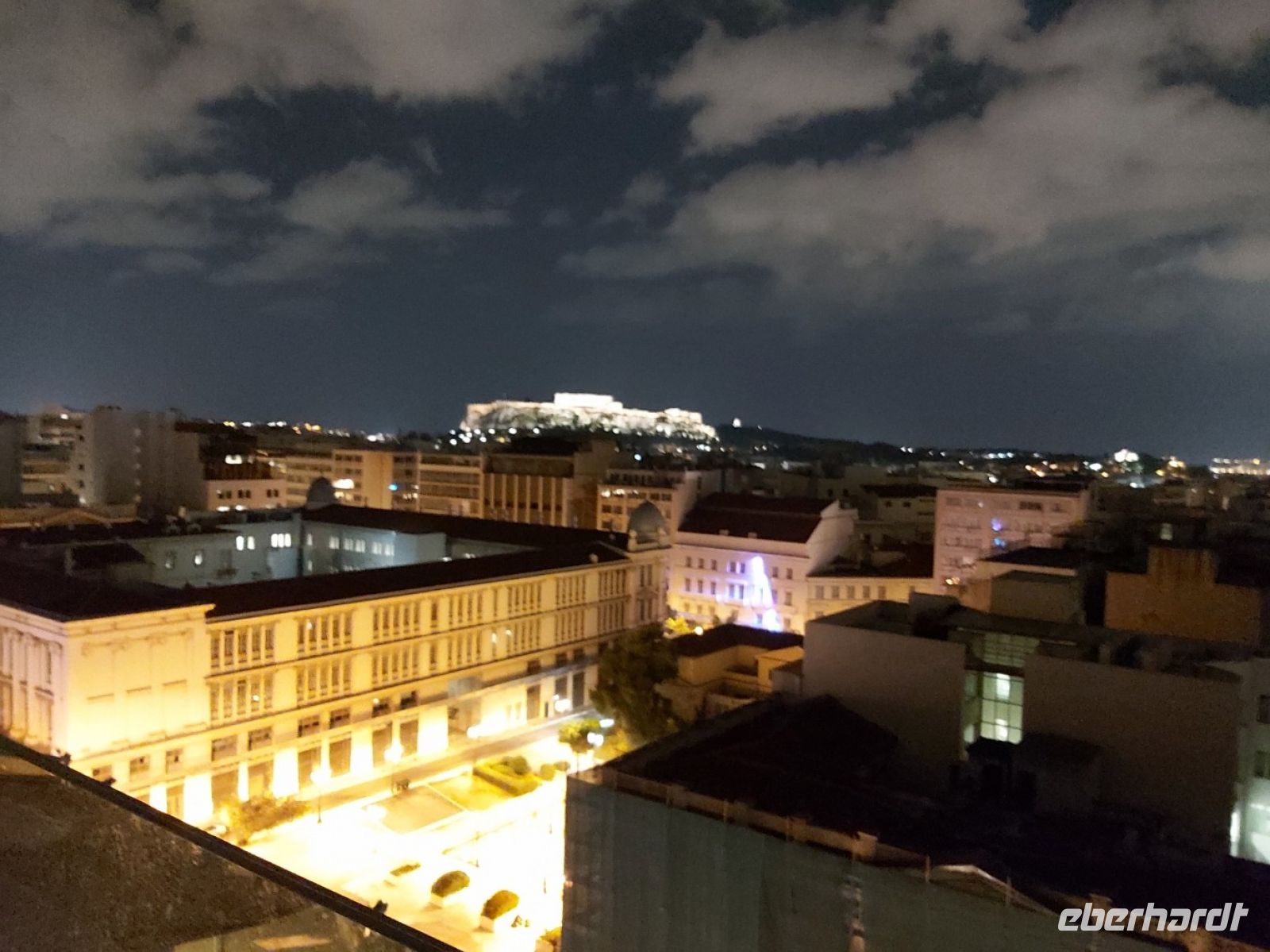 Abendessen an den Folgetagen war im Hotel im Dachrestaurant. Das Essen war gut, jedoch waren die Frische und Abwechslung in der Wahl der Speisen nicht mit der Küche der besuchten Tavernen zu übertreffen. Dafür lag uns die beleuchtete Stadt zu Füßen.