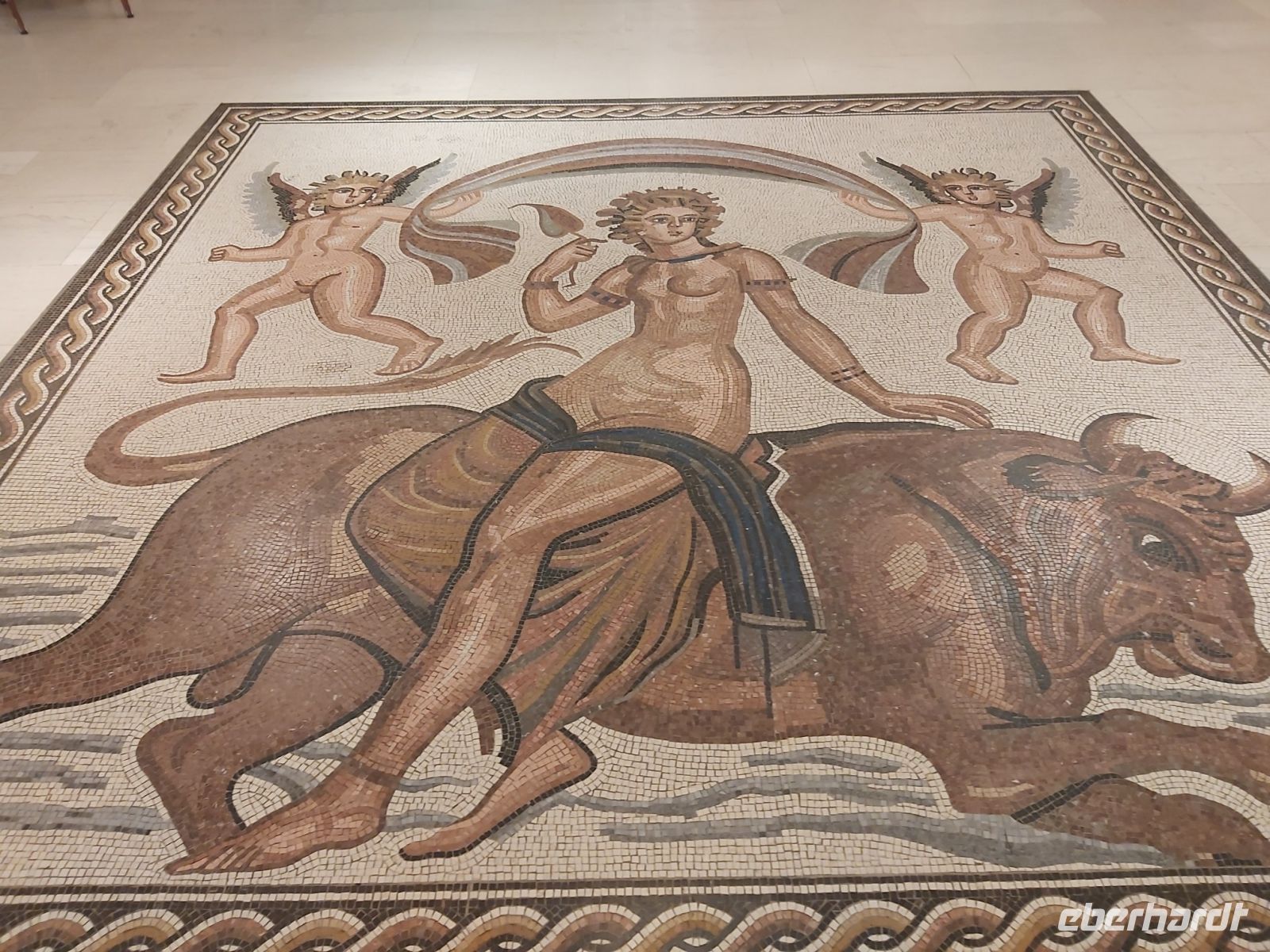 Heute starten wir erst 9:30 Uhr. Zunächst besuchen wir in Eritrea die Ausgrabungsstätte. Wir erfahren, wie sich ein Wohnhaus aufteilt: Eingangsbereich, Innenhof, Empfang und separate Aufenthaltsräume für Frauen und Kinder. Zur Anlage gehört ein Theater. Darbietungen der Akteure zogen sich den ganzen Tag hin. Die Ausgrabungen wurden von französischer Seite gefördert und begleitet. Beeindruckend ist das kleine, aber feine, weil liebevoll, eingerichtete Museum. Nicht verstaubt, sehr modern. Die Erläuterungen neben griechisch auch in französisch. Ein kleines Faltblatt nehmen wir als Erinnerung mit.