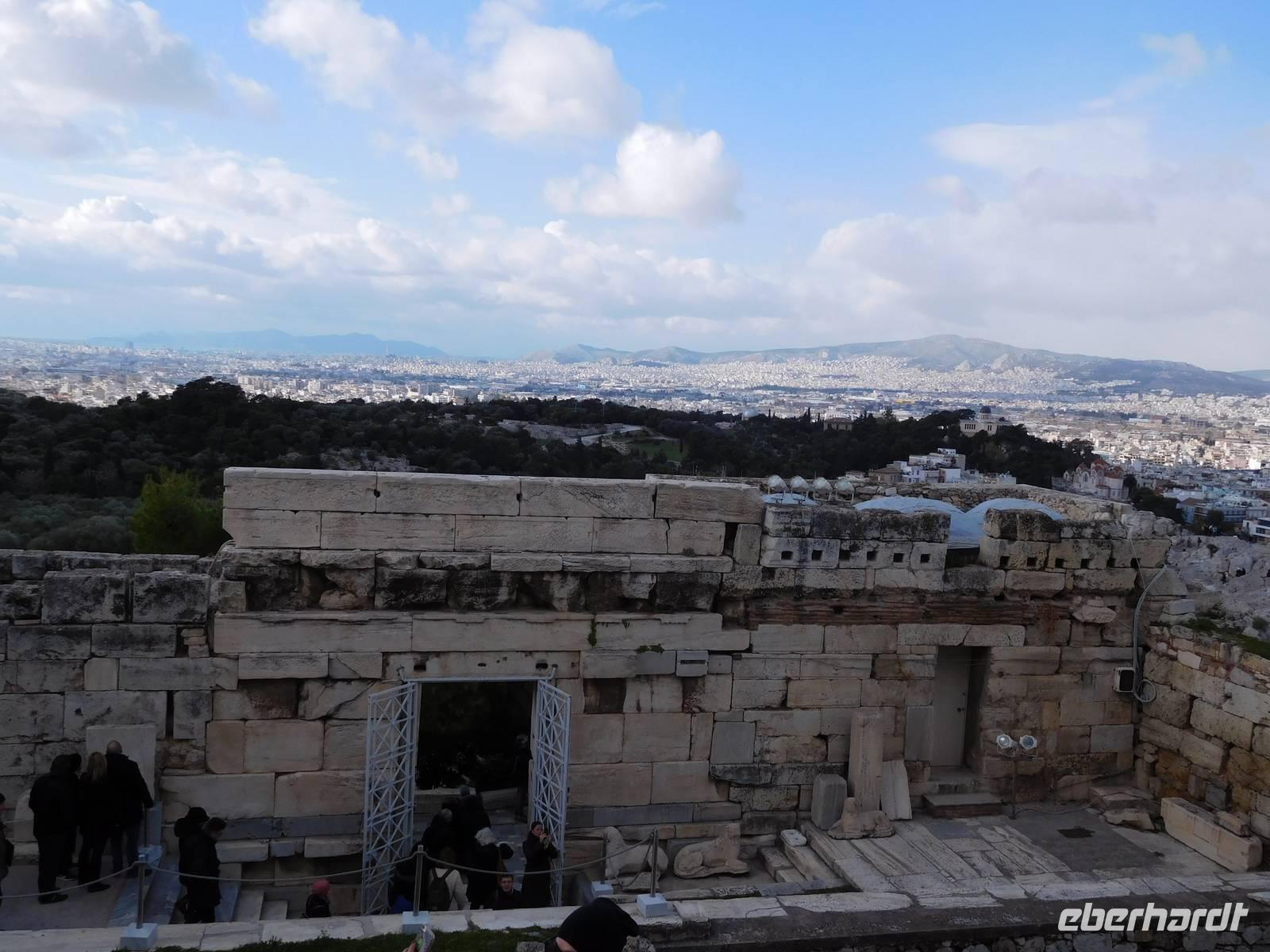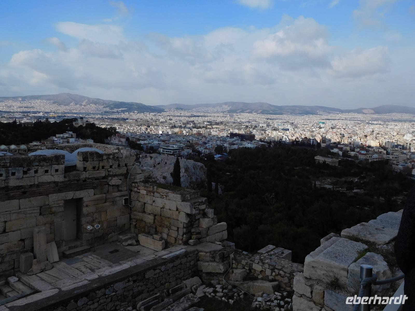 Anschließend steigen wir bei Sonne und leichtem Schneefall auf zur Akropolis, von der aus wir auch wieder einen tollen Blick genießen und den Ausführungen von Lenia zur Geschichte dieses Ortes gespannt lauschen. Nachdem wir die Stadt von hoch oben betrachtet und erkundet haben, geht es für uns mit dem Bus wieder hinab ins Zentrum und wir erkunden diese zu Fuß.