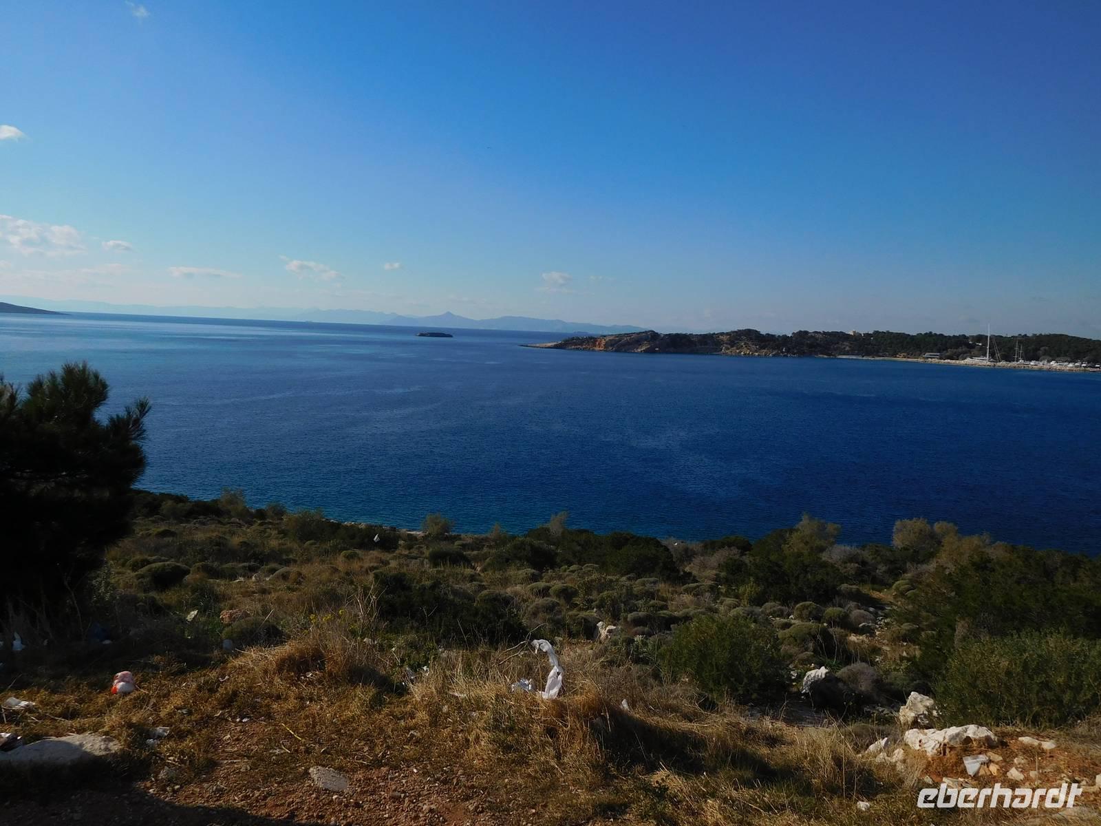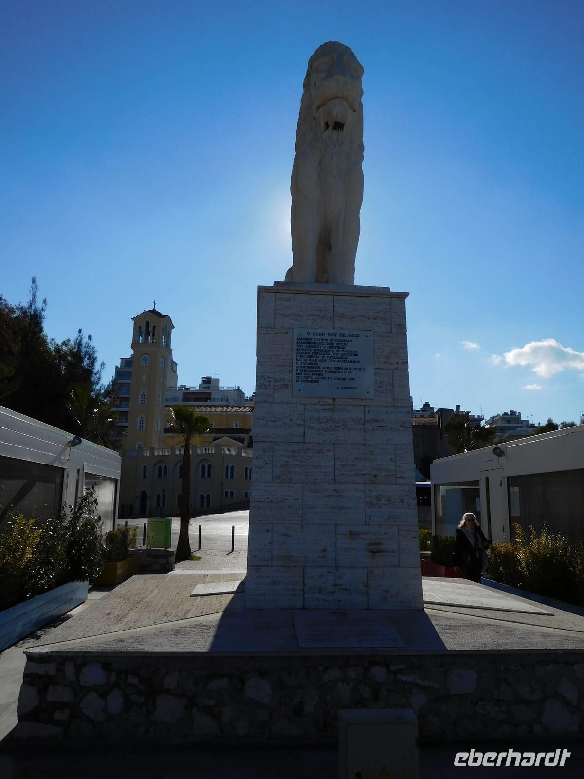 Etwas müde erwache ich und begebe mich zum Frühstück. Heute starten wir erst gegen Vormittag, um 11 Uhr brechen wir mit Lenia auf. Nach dem wir uns erneut das Beste für das neue Jahr gewünscht haben, fahren wir entlang der ägäischen Küste nach Piräus mit Endziel Kap Sounion. An verschiedenen Punkten halten wir zum Fotostopp und genießen die frühlingshaften Temperaturen und die Sonne, die für uns heute so freundlich herab strahlt. Was für ein toller Tag. Am Hafen von Piräus, vor dem eine große Statue eines Löwen steht, machen wir unser erstes Gruppenbild. Der Hafen war in der früheren Zeit ein wichtiger Handelsstandort. Unsere Fahrt führt uns vorbei an weitere Häfen, bis wir am Mittag das Kap Sounion, mit der Tempelanlage auf dem Berg hoch oben, erreichen. Hier legen wir eine Mittagspause mit Ouzo ein und genießen den Ausblick auf das Meer. Entlang der Küste fahren wir zurück nach Athen und Lenia liest uns aus ihrem Buch griechische Mythologien vor, was ich sehr interessant finde.