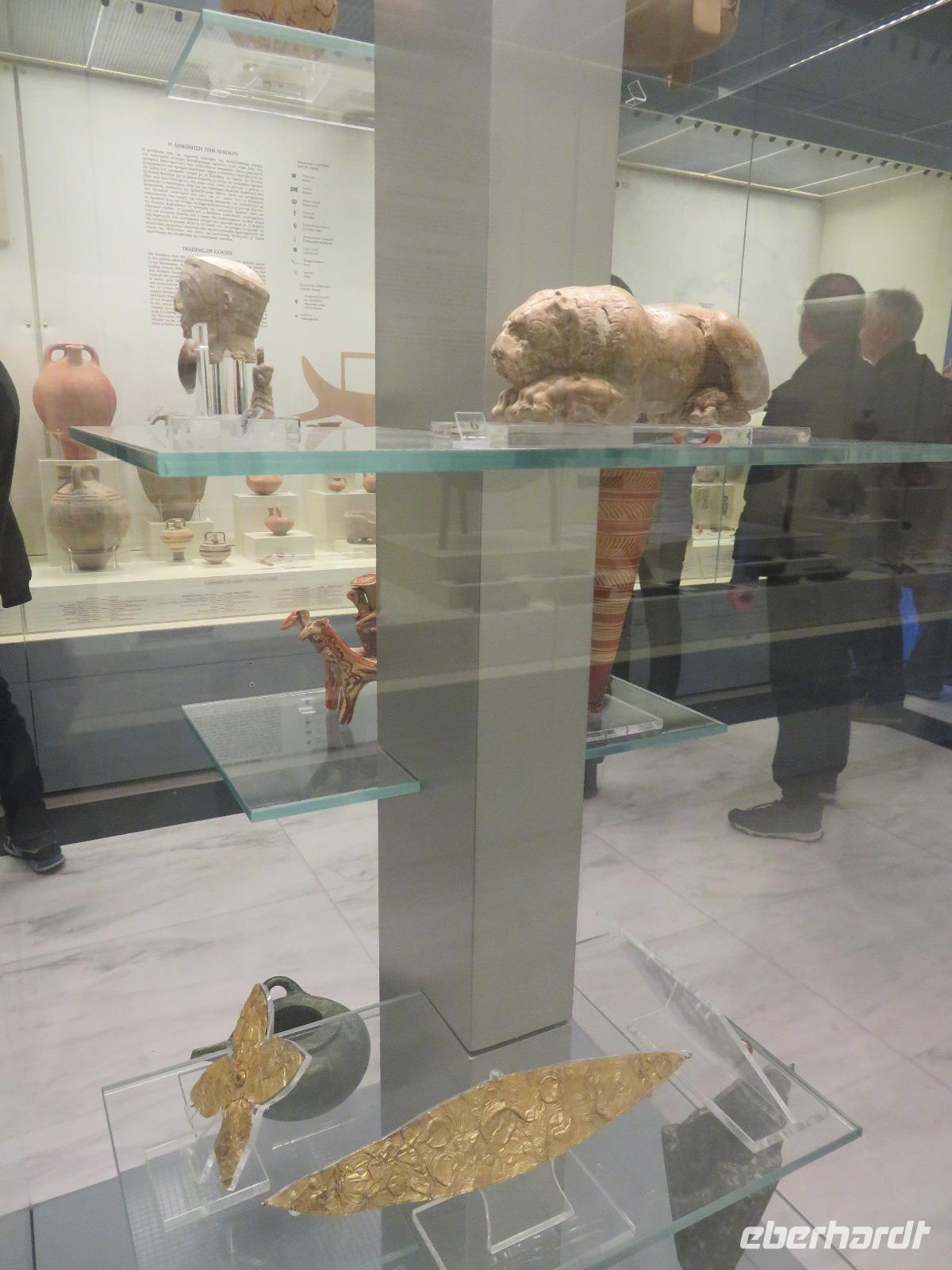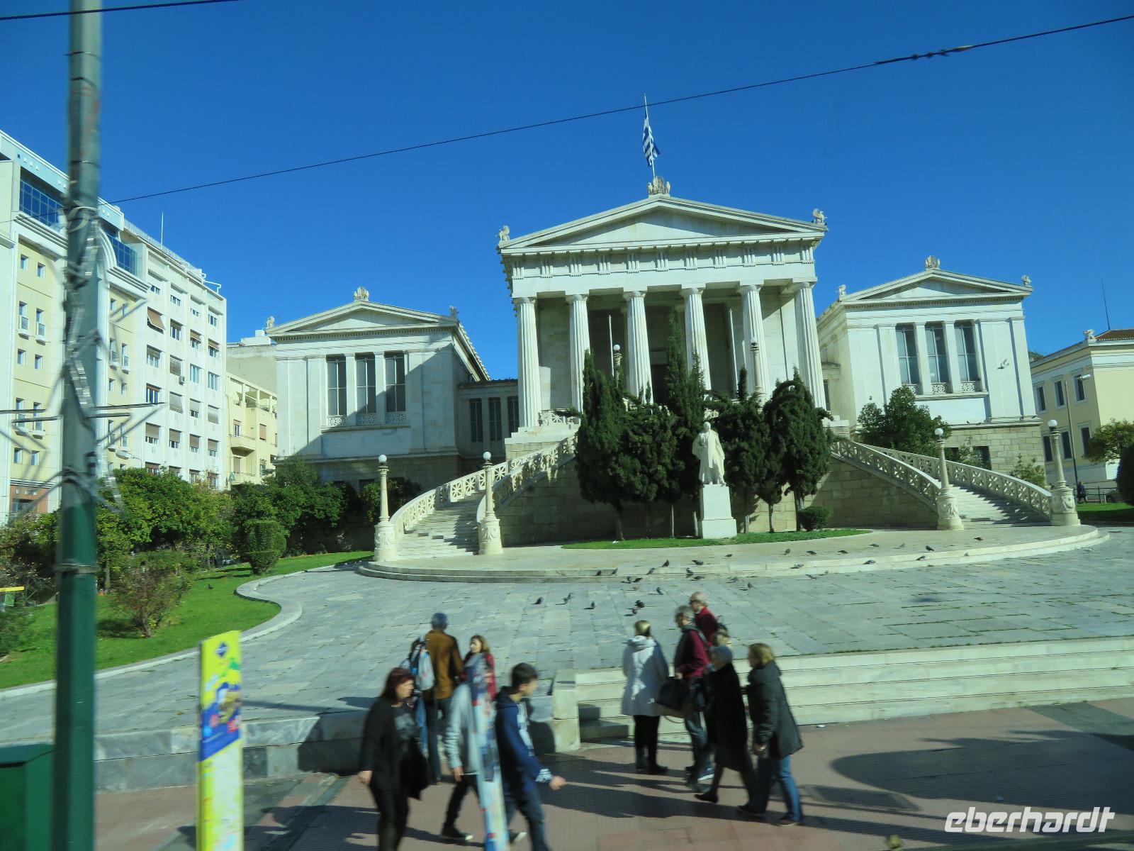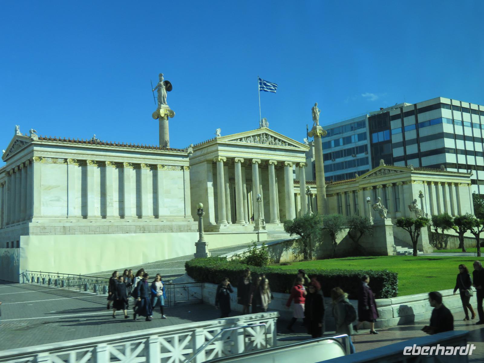 Weiterhin konnten wir die drei Neoklassische Gebäude, was von dem ersten König Griechenlands, Otto, im 18. Jahrhundert gebaut wurde, sehen. Zu diesen drei Gebäuden zählen die aktuelle Akademie, Universität und Nationalbibliothek. Des Weiteren machten wir einen Fotostopp in das Panathinaikos- Stadion und hatten Freizeit zur Entdeckung der Altstadt und auch für Selbsterkundung. Am Nachmittag besuchten wir das Akropolis-Museum mit Rekonstruktionen von verschiedenen Instrumente, Gefäßen und Motiven des Tempels.
