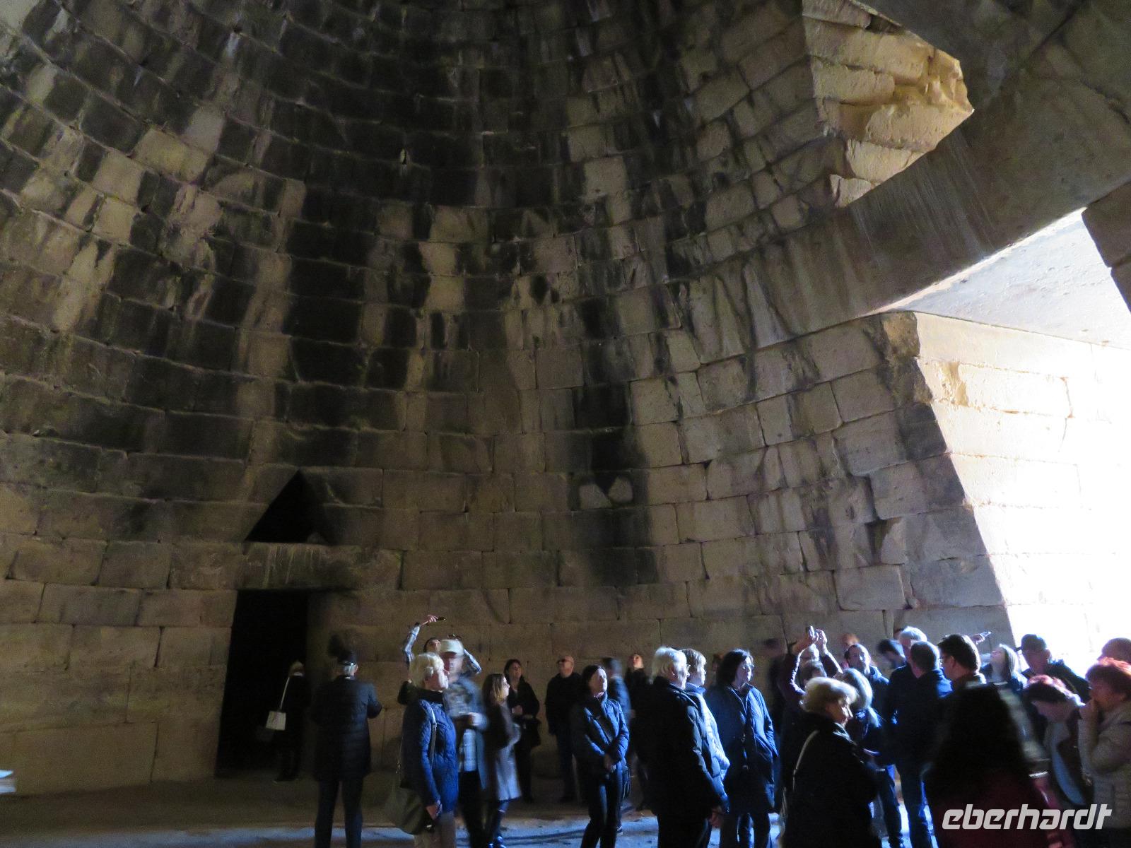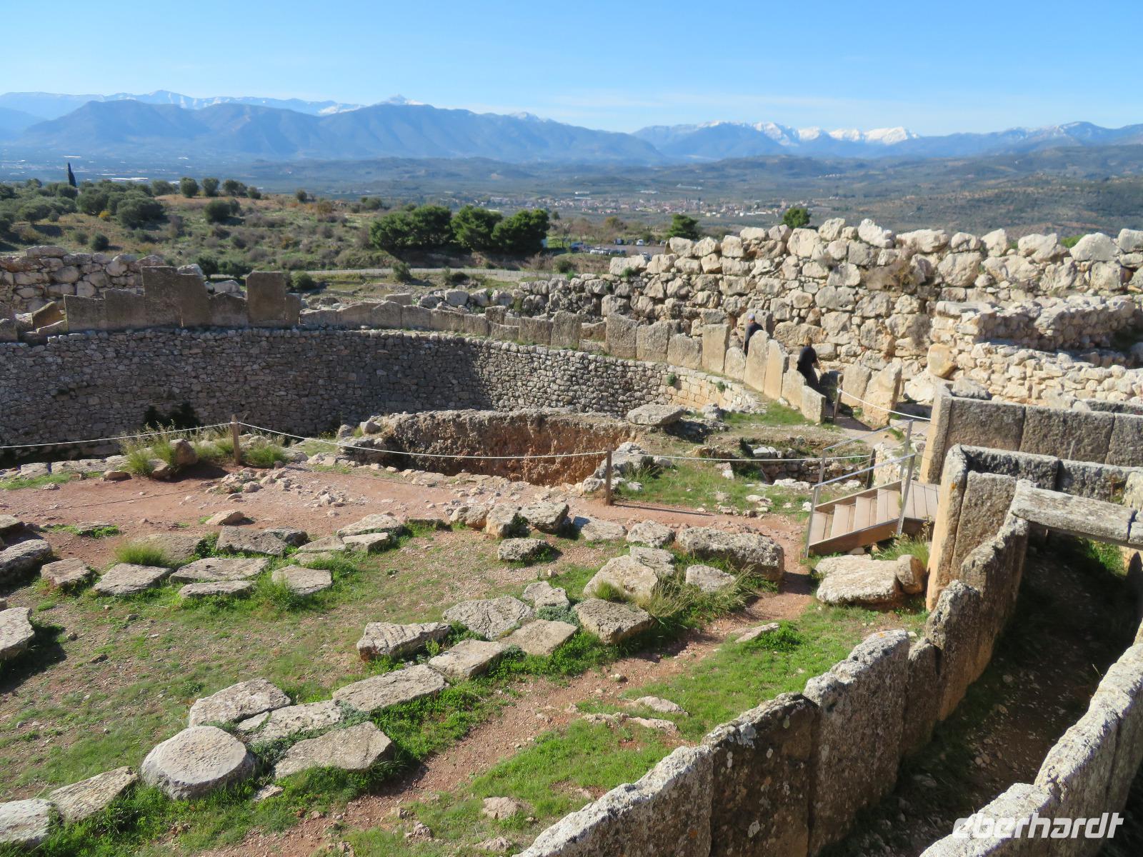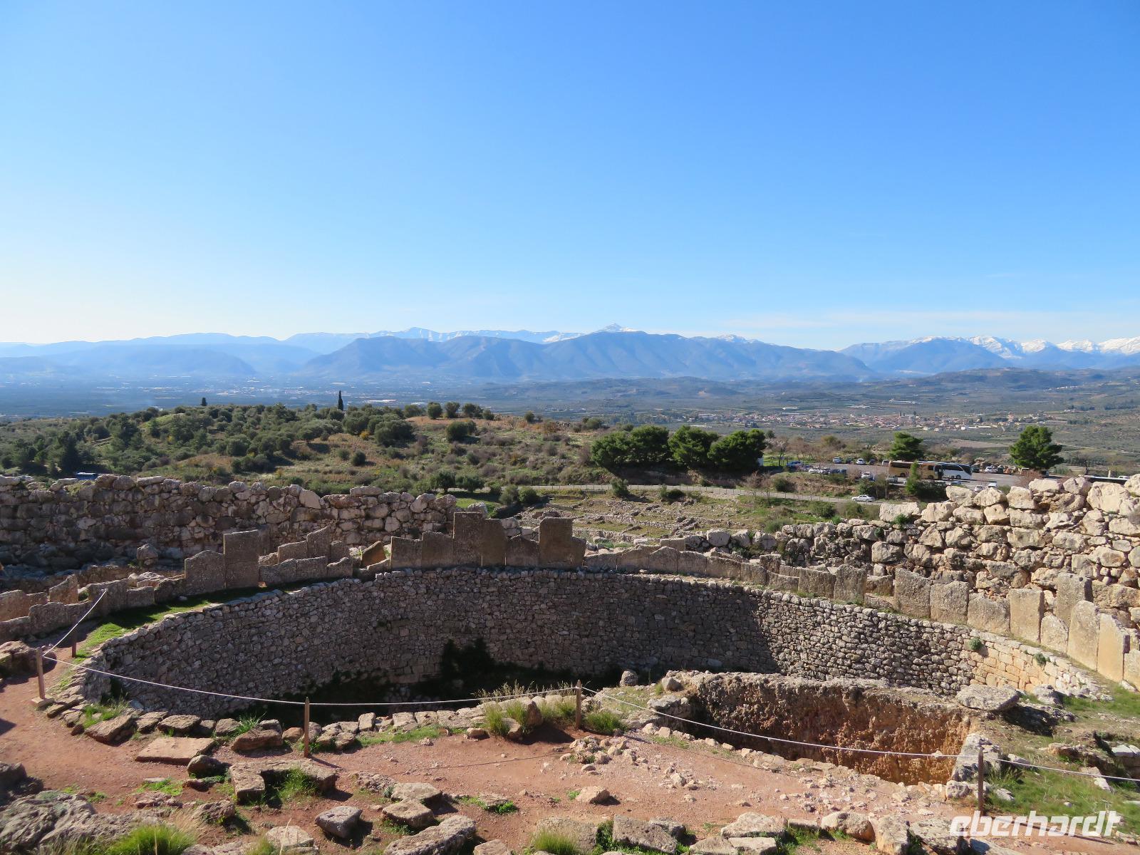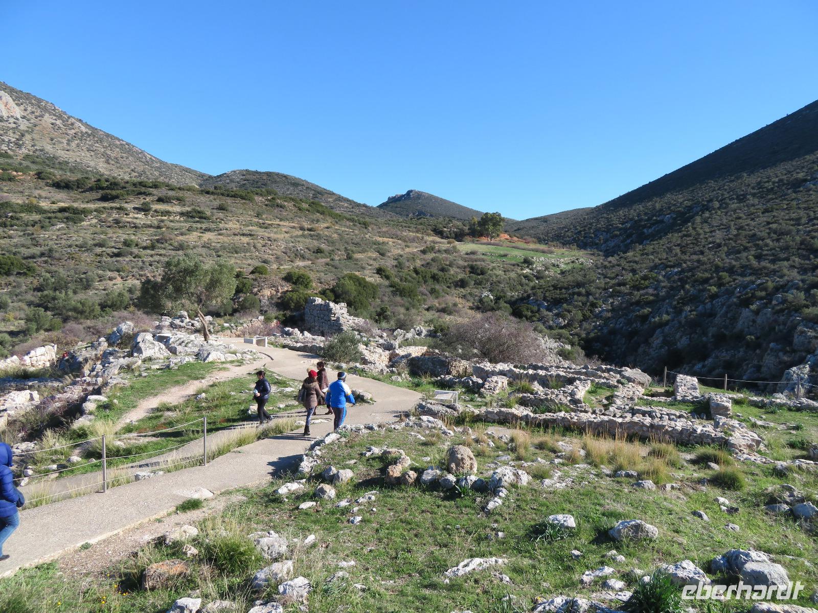 An diesem Tag fuhren wir in Richtung Nord-West zum Isthmus von Korinth, wo wir den spektakulären Kanal überquert haben, der die Halbinsel Peloponnes vom griechischen Festland trennt. Dann fuhren wir ein Stück weiter nach Altkorinth. Da fanden wir den Apolo-Tempel, den ältesten Tempel Griechenlands aus dem 6. Jahrhundert v.C. Bei einem Spaziergang sahen wir auf einem Berg die Reste der alten römischen Stadt von außen, die schöne Akrokorinth oder Akropolis von Korinth genannt. Auf den Berg angekommen, erstreckte sich einem ein hübscher Ausblick auf das Meer, den verschneiten Gebirgen am Ende und dem Schein der Sonne. In diesem Dorf konnte man verschiedene Kinder dabei beobachten wie sie typische Kalenderlieder sangen. Danach fuhren wir vorbei an Apfelsinen- und Olivenbäumen, Plantage und Weinberge von der Region Nemea. Laut Mythologie, hat Heracles in dieser Region den Löwen getötet und bis heute sagen die örtlichen Menschen, dass der Wein die Farbe von dem Blut des Löwen hat. Der Tresor von Atreus war unser nächster Halt. Wir besichtigten das imposante Grab des Königs Agamemnon, den Anführer und Gewinner des trojanischen Krieges. An diesem Ort fanden wir das große Tor und die Kuppel mit ihren großen Steinstücken. Nachdem wir über die historischen Straßen der Stadt Mykene, das Löwen-Tor, über die Reste des alten Grabens des Königs bis hin zum Königspalast auf den höchsten Punkt des Hügels liefen, erstreckte sich uns ein wunderschöner Ausblick auf die Landschaft. Außerdem besuchten wir das Museum mit einigen Überresten der Stadt und Erklärungen der Mykene Zivilisation. Dann fuhren wir ein Stück weiter in die Hafen-Stadt Nauplia. Da hatten wir Freizeit auf dem Hauptplatz, um das Silvester-Ambiente zu genießen und auf der Promenade zu spazieren. Anschließend fuhren wir nach Epidaurus, dem alten griechischen Theater mit einer wunderschönen Akustik, die immer noch im Gedächtnis bleibt. An diesem Ort haben wir auch Kopien der Überreste der Dekoration gesehen und diese Akustik gleich ausprobiert. Dann fuhren wir für eine Erfrischungspause ins Hotel zurück, wo wir auch unsere Silvester-Gala genossen haben. Mit vielen Speisen, Getränken und Musik begrüßten wir das neue Jahr. So kam es, dass wir um Mitternacht mit einem typischen Glas Sekt und typisch griechischen Tänzen, in denen wir uns auch ausprobieren konnten, das Jahr 2018 begangen.