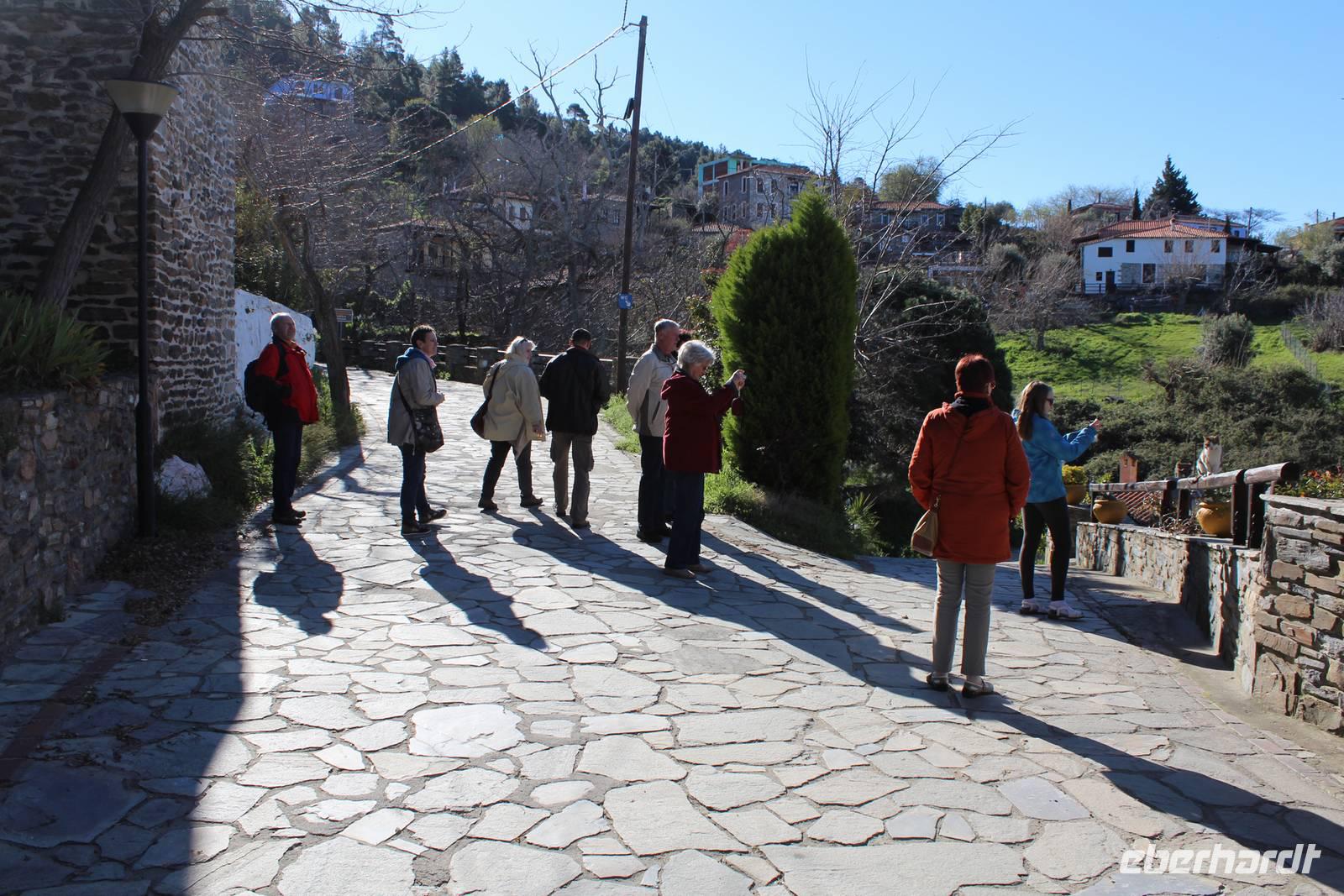 An diesem Tag konnten wir uns einen ersten Eindruck von der Chalkidiki Halbinsel verschaffen. Stella, unsere örtliche Reiseleiterin führte uns als ersten in ein kleines Dorf namens Parthenonas, auf dem zweiten Finger Santonia der Halbinsel, auf welcher sich auch unser Hotel befand! Ein hübsches, ruhiges, kleines Dorf mit wunderschönen Ausblicken auf den Golf, der zwischen dem ersten und zweiten Finger Chalkidikis liegt.
