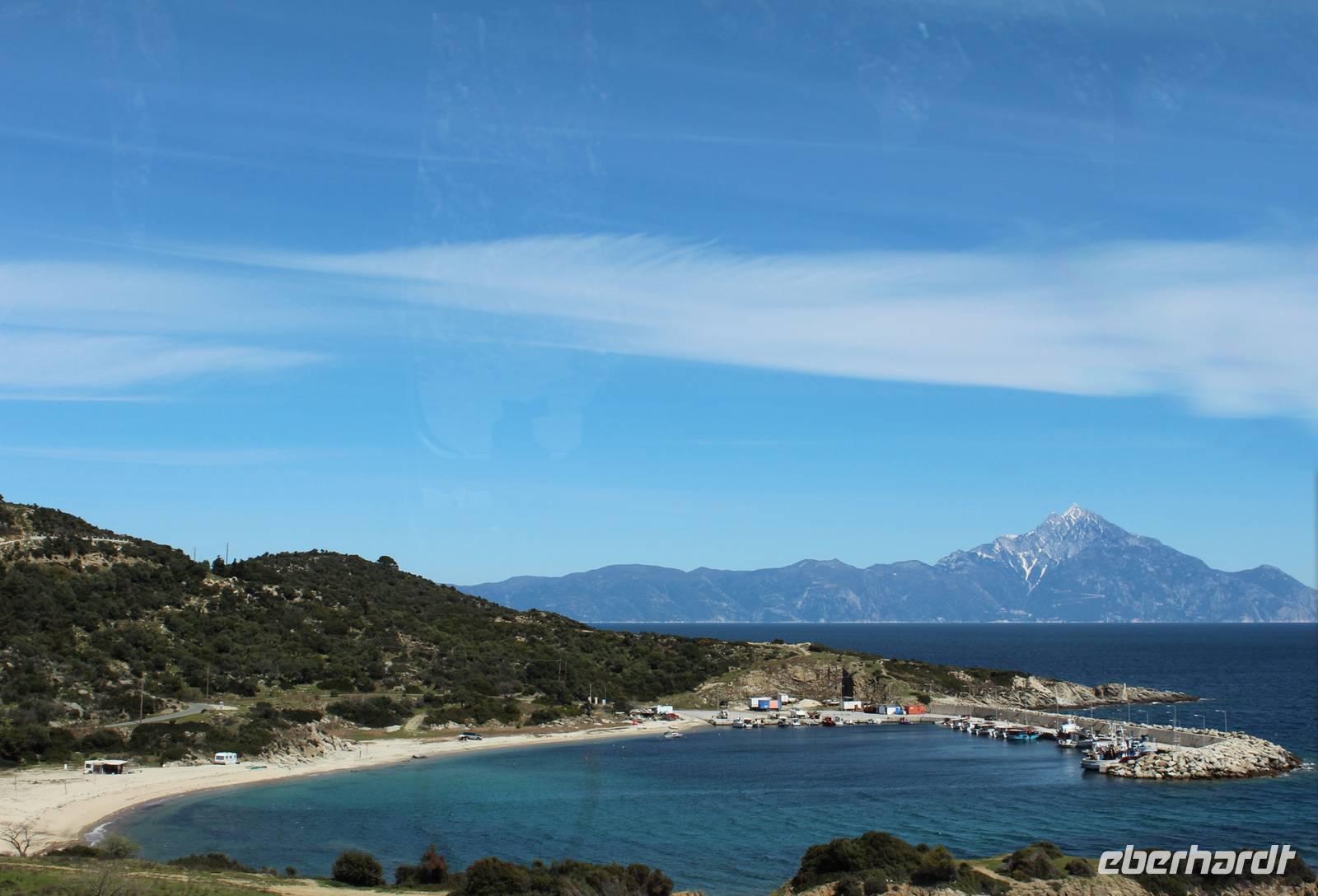 Weiter ging es entlang der Küstenstrasse nach Sarti mit einem weiteren Fotostopp wo sich der schneebedeckte Berg Pathos vor uns erhebte - eine Wahnsinn Aussicht. In Sarti angekommen hatten wir Freizeit um das Dorf selbst zu erkunden und Zeit ein wunderbares Mittagessen in einer familienbetriebenen Taverne zu genießen. Frischer Fisch und typische griechische Vorspeisen frisch zubereitet mit Blick aufs Meer - Was will man mehr?