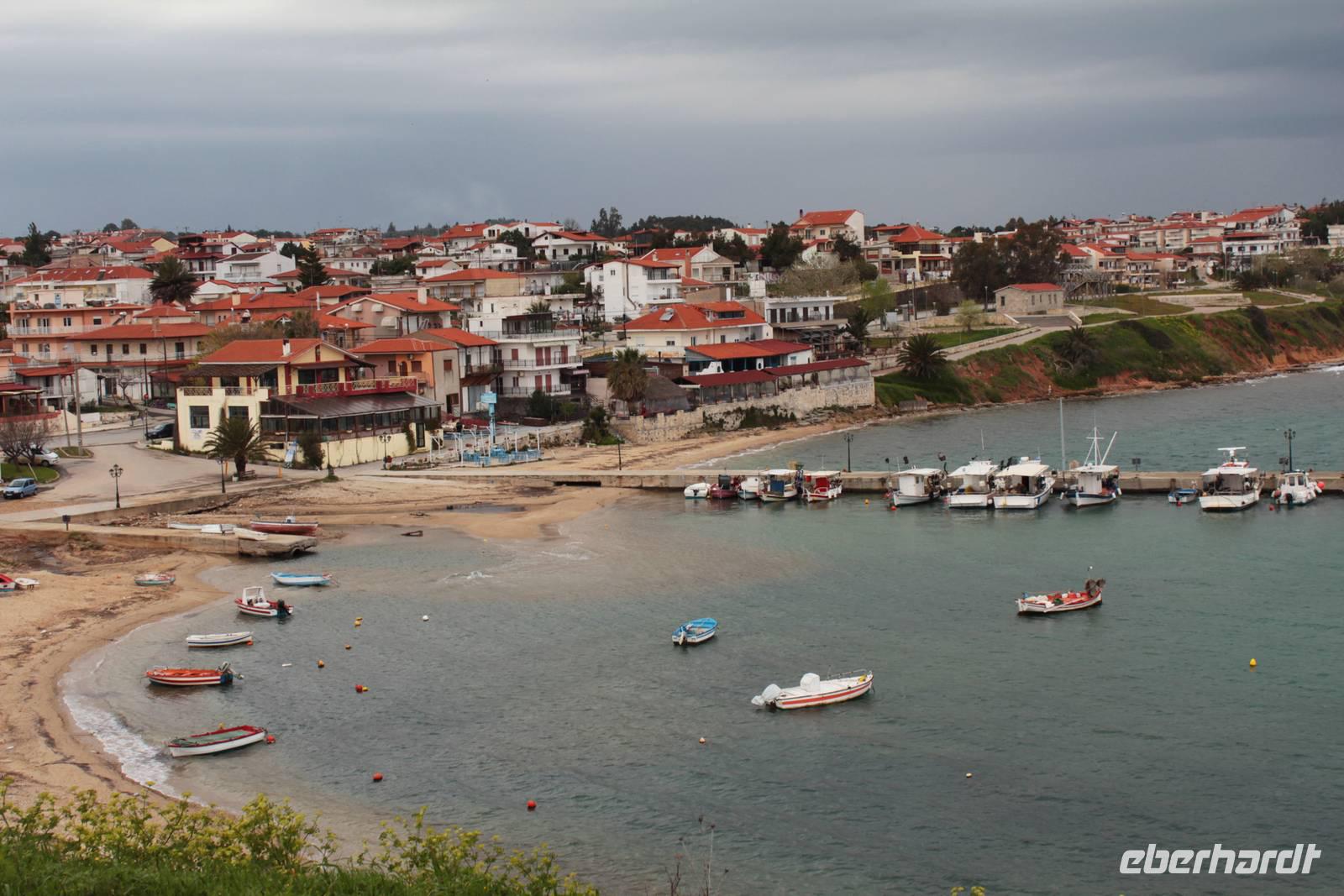 Unser zweiter Stopp war in der kleinen Hafenstadt Neos Marmaras. Wir spazierten vorbei an kleinen Geschäften, Cafés, einer Kirche und beendeten unseren Stopp beim Kaffeetrinken mit Blick auf den kleinen Hafen und dem Meer, während wir die Sonner in unser Gesicht scheinen ließen.
