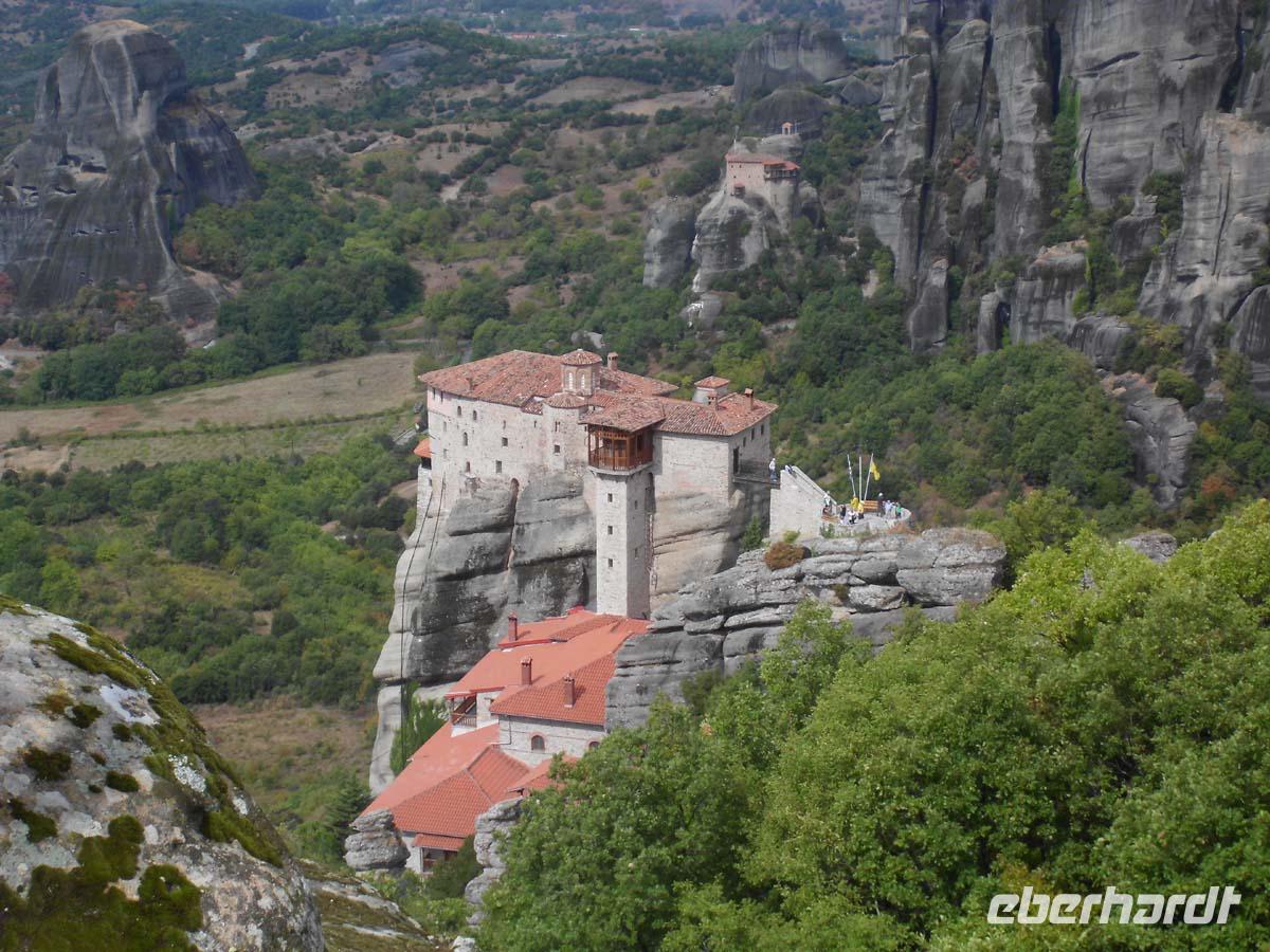 Nach dem Frühstücksbuffet geht es hinauf in schwindelnde Höhen zu den Meteoraklöstern. Ta meteora monastiria - die Klöster in der Luft beeindrucken seit dem 14. Jh. in ihrer heutigen Gestalt. Bis zu 600 m erheben sch die Felsen aus der Piniosebene, auf denen die Klöster wie Schwalbennester kleben. Wir besichtigen die Klöster Varlaam und Roussanou. Wir genießen den überwältigen Ausblick auf die weite Ebene und die Stadt Kalambaka. Die Landschaft ist jedoch so einzigartig, dass wir zwingend einige zusätzliche Photostops einlegen müssen. Die Motive sind einfach zu schön. Der Hunger führt uns in Kalambaka in eine gemütliche Taverne, wo Oma noch selbst am Topf steht. In der Küche sucht sich jeder selber die Gerichte aus den Töpfen aus und die Großmutter packt die Teller übervoll. Es gibt Lamm, Schwein und Huhn, mal in Wein gekocht, oder in Öl mit Auberginen sowie verschiedene Gemüse und Reis oder Kartoffeln zur Auswahl. Die Besichtigung der Königsgräber von Vergina und des dazu gehörigen Museums ist unser nächstes Ziel. Die Anlage beeindruckt allein schon durch ihre Konzeption. Die Fürstengräber, allen voran das ungeplünderte Grab des Makedonierkönigs Phillip II. aus dem 4. Jh. v. Chr. wurden an ihrem ursprünglichen Ort samt Museum unter einem riesigen Tumulus verborgen. Dieser gibt noch heute beredtes Zeugnis davon ab, wie sich die Grabhügel der Mächtigen schon früher in der Landschaft ausnahmen. Die geborgenen Schätze suchen Ihresgleichen. Am späten Abend erreichen wir unser Hotel in Agia Triada gegenüber der Metropole Thessaloniki. Es liegt direkt am Strand mit eigenem Abschnitt. Ein opulentes Abendbüffet schleißt den Tag hervorragend ab.