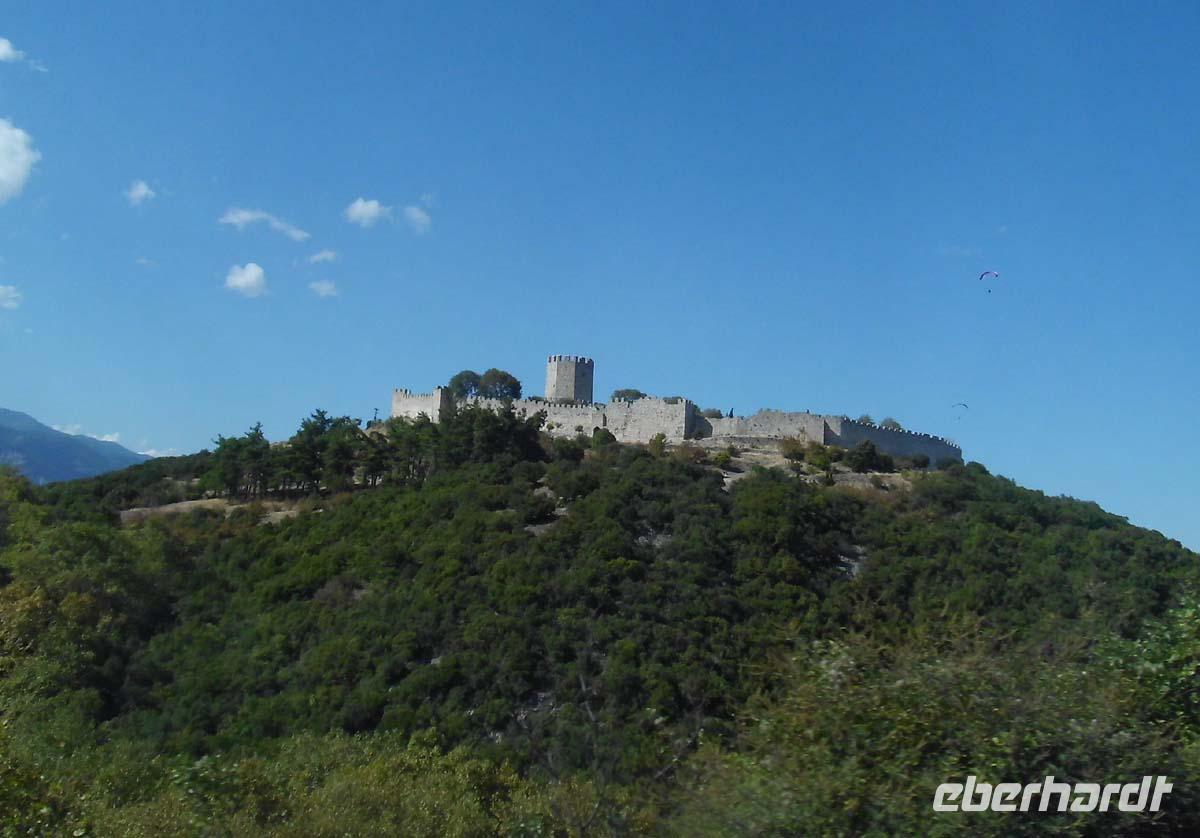 Pünktlich steht der 5 Sterne Reisebus von Eberhardt-Travel am Dresdner Flughafen bereit. Nach und nach treffen die Gäste ein und endlich geht es Richtung Süden. Eine lange Reise liegt vor uns, die uns zu den meisten wichtigen antiken Stätten des griechischen Festlands führen wird. Ab Nürnberg sind wir als Gruppe komplett. Das Wetter ist gut, und die Laune ist prächtig und wegen der vielen Burgen, Städte, die rechts und links der Inntal- und Brennerautobahn zu sehen sind, ist die Fahrt recht kurzweilig. Die Mehrzahl der Gäste ist überaus gut bewandert in der griechischen Geschichte und war mitunter schon öfters in Griechenland. Trotzdem legen wir auch einen Photostop an der Europabrücke vor dem Brenner ein, die sich 190 m hoch über das Tal der Wipp spannt. Am Abend erreichen wir unser Hotel in San Zeno, wo uns ein üppiges italienisches Abendmenü erwartet. Wir genießen noch einmal den Blick auf den Gardasee tief unter uns und schauen den Fledermäusen bei ihrem geschäftigen Geflatter zu, bevor wir die wohlverdiente Ruhe genießen.