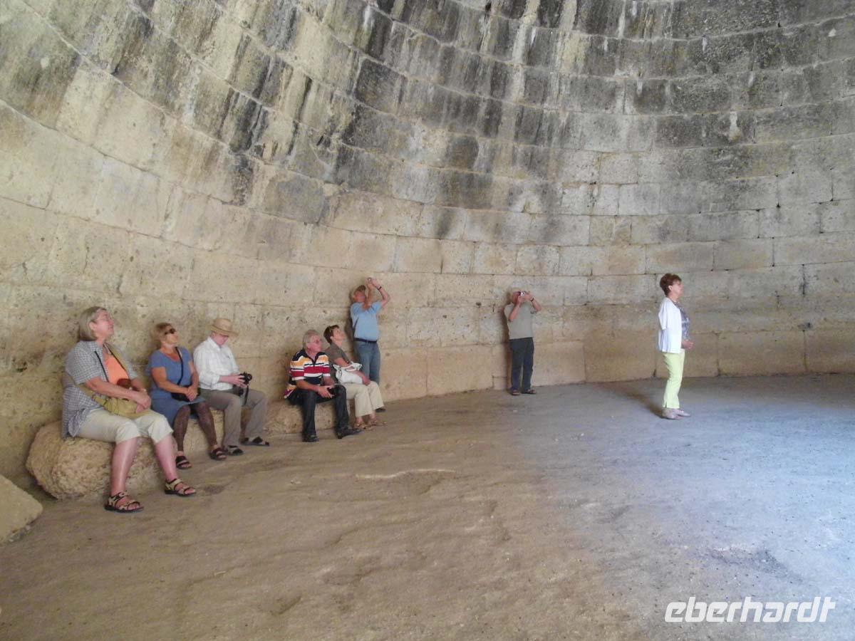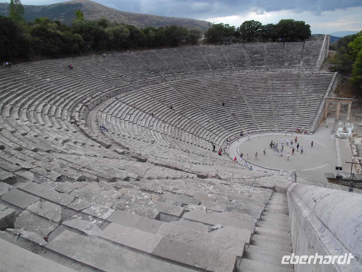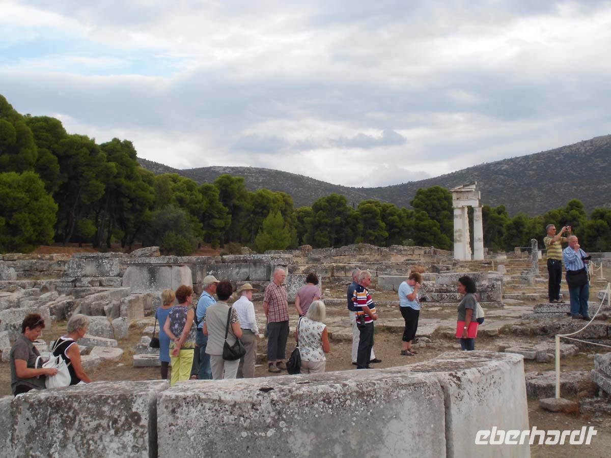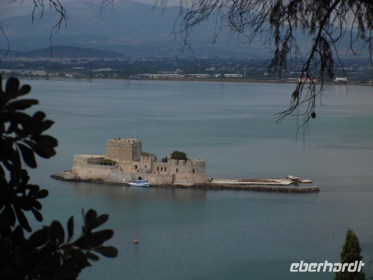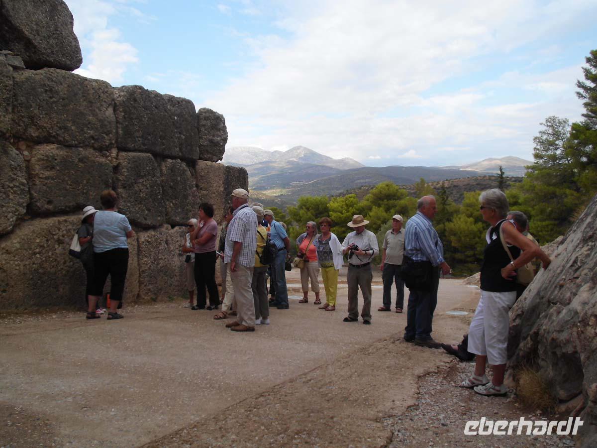 Wir gehen zeitlich bis in die Bronzezeit zurück, als wir die Stadt Mykene besuchen, wie so vieles andere auch Weltkulturerbe. Vor der Stadt liegt das so genannte Schatzhaus des Artreus, welches wir zuerst inspizieren. In Wirklichkeit ist es ein riesiges Fürstengrab, dessen Name ihm vom antiken Reiseberichtschreiber Pausanias gegeben wurde. Der mächtige Tumulus ist beeindruckend. Wir betreten die Stadt durch das weltberühmte Löwentor, und stehen auch gleich vor dem Gräberrund A, den so genannten Königsgräbern aus dem 16 Jh. v. Chr., in denen Heinrich Schliemann u. a. die von ihm so bezeichnete Goldmaske des Agamemnon fand. Weiter geht es hinauf zum Palast, zur ober- und unterirdische Zisterne, sowie am zweiten Stadttor vorbei. Wer Muße hat kann noch einen keinen Abstecher zum Gräberrund B direkt unterhalb des Löwentores machen und auch die Grabtumuli der Klytaimnestra und des Aigistos aus dem 15. Jh. v. Chr. in Augenschein nehmen. Unsere Reise führt uns nun in ein idyllisches Städtchen Namens Nauplia. Es wartet mit engen Gassen, malerischen Plätzen und einer gepflegten Hafenpromenade auf. Nauplios, Sohn des Palamedos war Gründer der Stadt, die schon im 7. Jh. v. Chr. eine wichtige Funktion als Hafen von Argos hatte. Vom Hafen aus grüßen uns die gewaltige osmanische Festung Palamidi aus dem 18. Jh., die über 1000 Stufen zu erklimmen ist, so sagt man, und Akronauplia direkt über der Stadt, eine Festungsanlage in ihrer heutigen Gestalt aus dem 13. Jh. Die Venezianer hinterließen der Stadt 1471 zudem die kleine Festung Burdzi vor der Stadt im argolischen Golf. Danach erkundet man die kleine Stadt auf eigene Faust. Restaurants, Tavernen und Cafes, sowie kleine Läden mit diesem und jenem lenken die Blicke der Besucher auf sich. Sehr großen Anklang finden Läden mit einheimischen Pflegeprodukten, Süßigkeiten, Spezereien, Olivenöl und vor allem die vielen Schmuckgeschäfte, für die Nauplia berühmt ist. Der späte Nachmittag hält für uns Epidaurus mit einer Besichtigung des Asklepiosheiligtums bereit. Nach dem Museumsbesuch begeben wir uns in das besterhaltene Theater der antiken Welt. Das bietet Platz für über 12000 Besucher und weist zudem noch die hervorragendste Akustik von allen Theatern auf. Zum Hotel zurück geht es die Küstenstrasse am Saronischen Golf entlang. Auf der kurvigen Strecke bieten sich nach jeder Kehre neue Eindrücke aufs Meer und in die Landschaft.