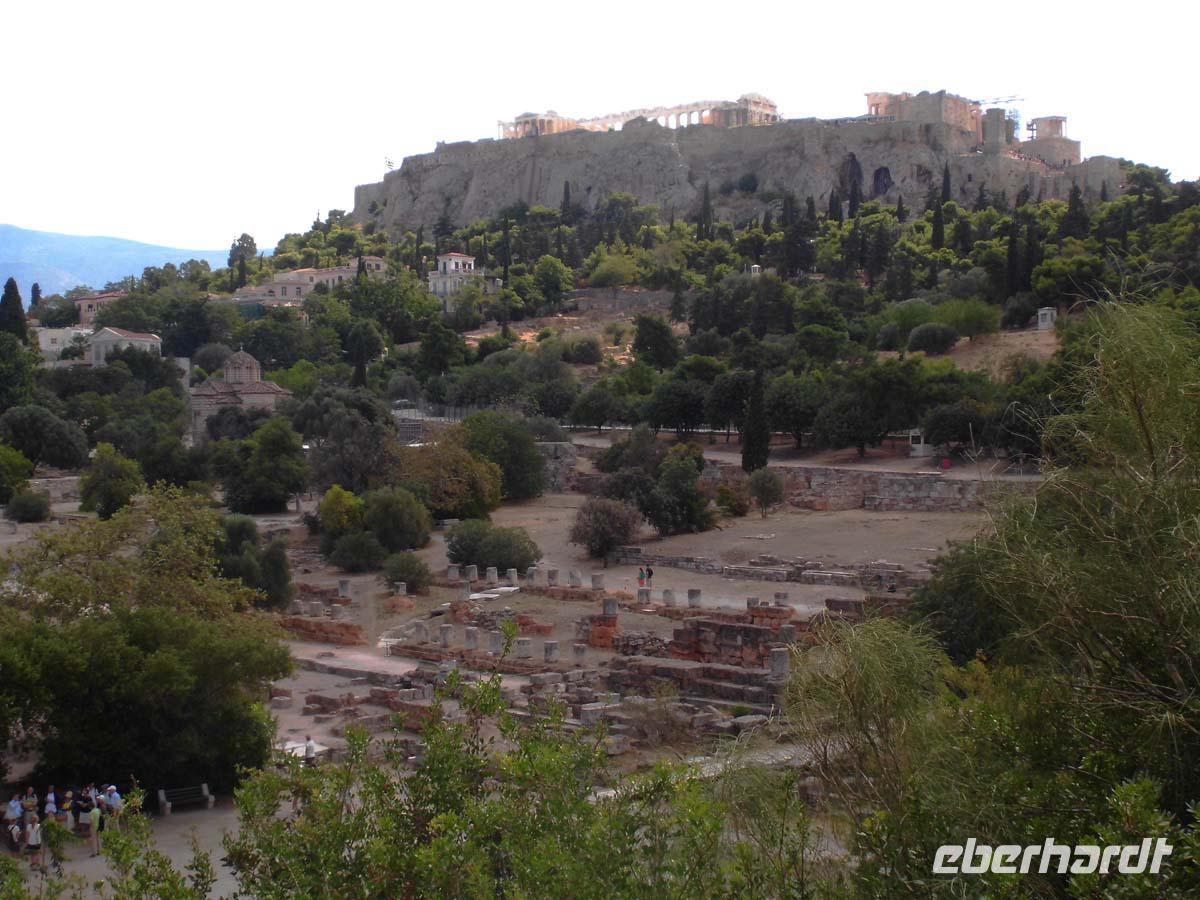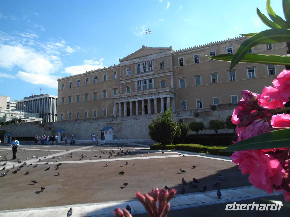 Mit einem griechischen Reisebus und Chauffeur geht es heute in die Hauptstadt Griechenlands. Unser Fahrer hat heute und morgen Lenkzeitruhe. Es ist sinnvoll eine halbe Stunde früher nach Athen zu fahren, weil so die täglichen Staus eher umgangen werden können. Der Großraum Athen mit Piräus hat 4,5 Mio. Einwohner und der Verkehr wird von Minute zu Minute dichter. Ein Highlight stellt die Besichtigung der Akropolis dar. Man hat neben dem Erlebnis der Bauten, von denen der Parthenon wie immer teilweise eingerüstet ist auch einen wunderbaren Blick über die gesamte Stadt einschließlich Piräus. Bis zum Horizont breitet sich das Häusermeer zu unseren Füßen aus. Zwischendrin die Stätten, die wir auch noch auf der Stadtrundfahrt am Nachmittag sehen werden. Das Olympiastadion, das Parlament, das neue Museum, den Turm der Winde, die antike Agora mit dem Hephaistostempel und das römische Forum. Die Sicht reicht bis zum Hafen von Piräus. Freie Zeit ist für die Plakka vorgesehen. In Athens Altstadt kann man gemütlich essen gehen und sich noch das eine oder andere anschauen, wie z. B. die Kathedrale oder die Hadrianbibliothek. Die Plakka ist weitestgehend autofrei und so kann es auch in Athen mitunter abgasarm und ohne Hupkonzert zugehen. Alles in allem ist die Plakka ein schöner recht stiller Stadtteil, wo man prima schlendern und in Ruhe die Schaufenster inspizieren kann, während der verkehr in der Ferne tobt. Am Nachmittag können wir im Nationalmuseum die wertvollsten Dinge bestaunen, welche die Archäologen aus den vielen antiken Stätten geborgen haben. So auch die überreichen Goldfunde aus den Schachtgräbern von Mykene. Neben der Prähistorie geht es nach und nach durch die Mykenische, geometrische, klassische und hellenistische Epoche bis zu den Römern. Man könnte hier einen ganzen Tag und mehr verbringen. Die Ägyptische Abteilung harrt auch noch ihrer Entdeckung. Athen verlassen wir durch die Hafenanlagen von Piräus und haben es von hier aus nicht mehr allzu weit zu unseren schönen Resort Hotel. Hier steht während des Essens eine kleine Weinverkostung an und hernach beginnt eine folkloristische Veranstaltung mit traditionellen Tänzen.