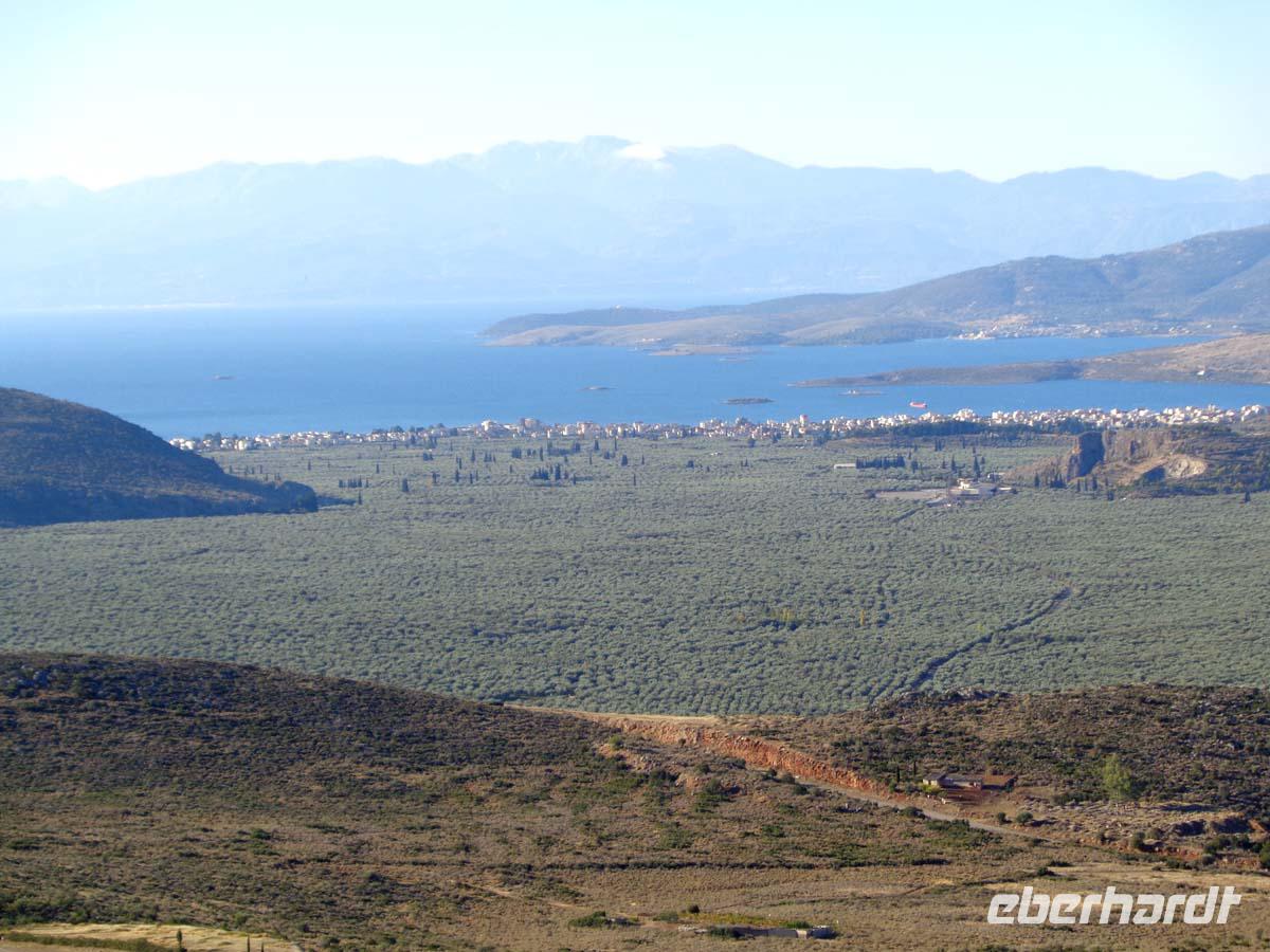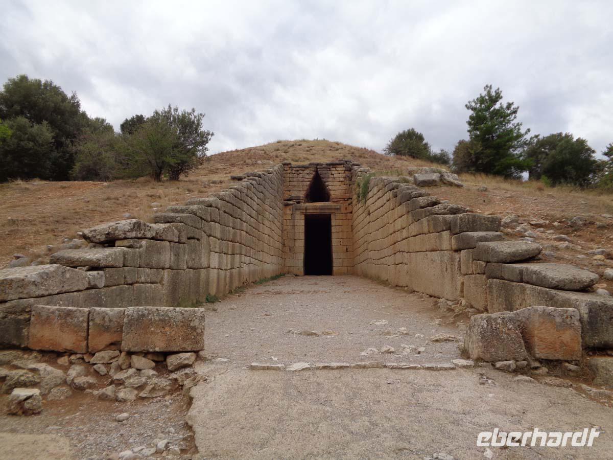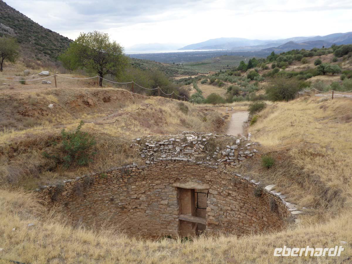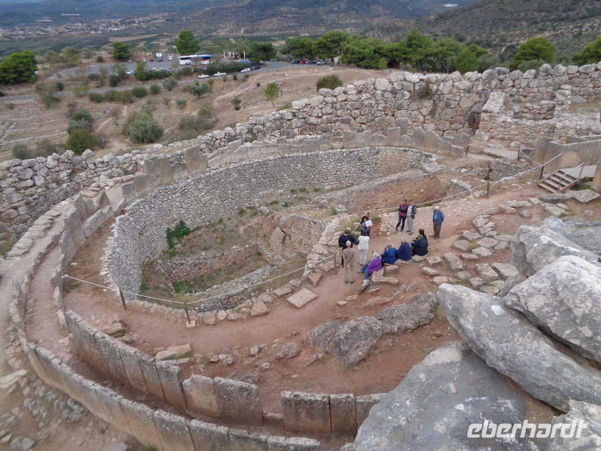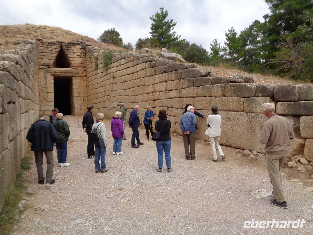 Heute bereisen wir die Argolis, jene Gegend südlich von Athen, deren Hauptort Argos heißt. Wir gehen zeitlich bis in die Bronzezeit zurück, als wir die Stadt Mykene besuchen, deren Blütezeit im 14. Jh. v. Chr. lag, und die wie so vieles andere auch Weltkulturerbe ist. Vor der Stadt liegt das so genannte Schatzhaus des Artreus, welches wir zuerst inspizieren. In Wirklichkeit ist es ein riesiges Fürstengrab, dessen Name ihm vom antiken Reiseberichtschreiber Pausanias gegeben wurde. Der mächtige Tumulus ist beeindruckend. Die Stadt betreten wir durch das weltberühmte Löwentor, und stehen auch gleich vor dem Gräberrund A, den so genannten Königsgräbern aus dem 16 Jh. v. Chr., in denen Heinrich Schliemann u. a. die von ihm so bezeichnete Goldmaske des Agamemnon fand. Weiter geht es hinauf zum Palast, zur ober- und unterirdischen Zisterne, sowie am zweiten Stadttor vorbei. Auch das Gräberrund B, direkt unterhalb des Löwentores nehmen wir in Augenschein und auch die Grabtumuli der Klytaimnestra und des Aigistos aus dem 15. Jh. v. Chr. Wer Muße hat kann noch einen keinen Abstecher zum Museum machen. Unsere Reise führt uns nun in ein idyllisches Städtchen Namens Nauplia. Es wartet mit engen Gassen, malerischen Plätzen und einer gepflegten Hafenpromenade auf. Nauplios, Sohn des Palamedos war Gründer der Stadt, die schon im 7. Jh. v. Chr. eine wichtige Funktion als Hafen von Argos hatte. Vom Hafen aus grüßen uns die gewaltige venezianische Festung Palamidi aus dem 18. Jh., die über 1000 Stufen zu erklimmen ist, so sagt man, und Akronauplia direkt über der Stadt, eine Festungsanlage auf der antiken Akropolis, in ihrer heutigen Gestalt aus dem 13. Jh. Die Venezianer hinterließen der Stadt 1471 zudem die kleine Festung Burdzi vor der Stadt im argolischen Golf. Nach einer Einführung auf dem Verfassungsplatz, der so heißt, weil hier in einer ehemaligen Moschee das erste Parlament Griechenlands nach der Unabhängigkeit tagte, erkundet man die kleine Stadt auf eigene Faust. Restaurants, Tavernen und Cafes, sowie kleine Läden mit diesem und jenem lenken die Blicke der Besucher auf sich. Sehr großen Anklang finden Läden mit einheimischen Pflegeprodukten, Süßigkeiten, Spezereien, Olivenöl und vor allem die vielen Schmuckgeschäfte, für die Nauplia berühmt ist. Der späte Nachmittag hält für uns Epidaurus mit einer Besichtigung des Asklepiosheiligtums bereit. Hierbei begeben wir uns auch in das besterhaltene Theater der antiken Welt. Das bietet Platz für über 12000 Besucher und weist zudem noch die hervorragendste Akustik von allen Theatern auf. Zum Hotel zurück reisen wir die Küstenstraße am saronischen Golf entlang. Auf der kurvigen Strecke bieten sich nach jeder Kehre neue Eindrücke aufs Meer und in die Landschaft.