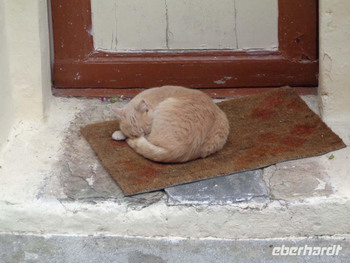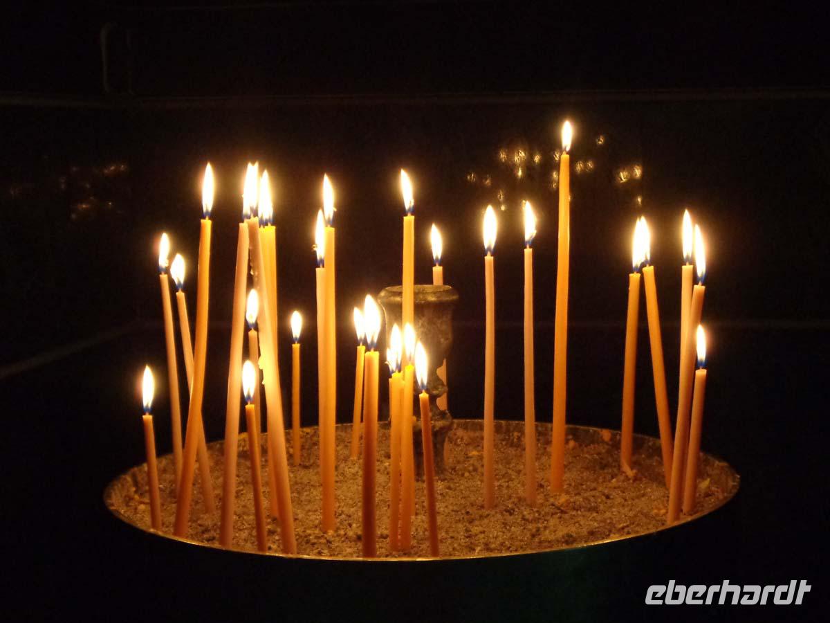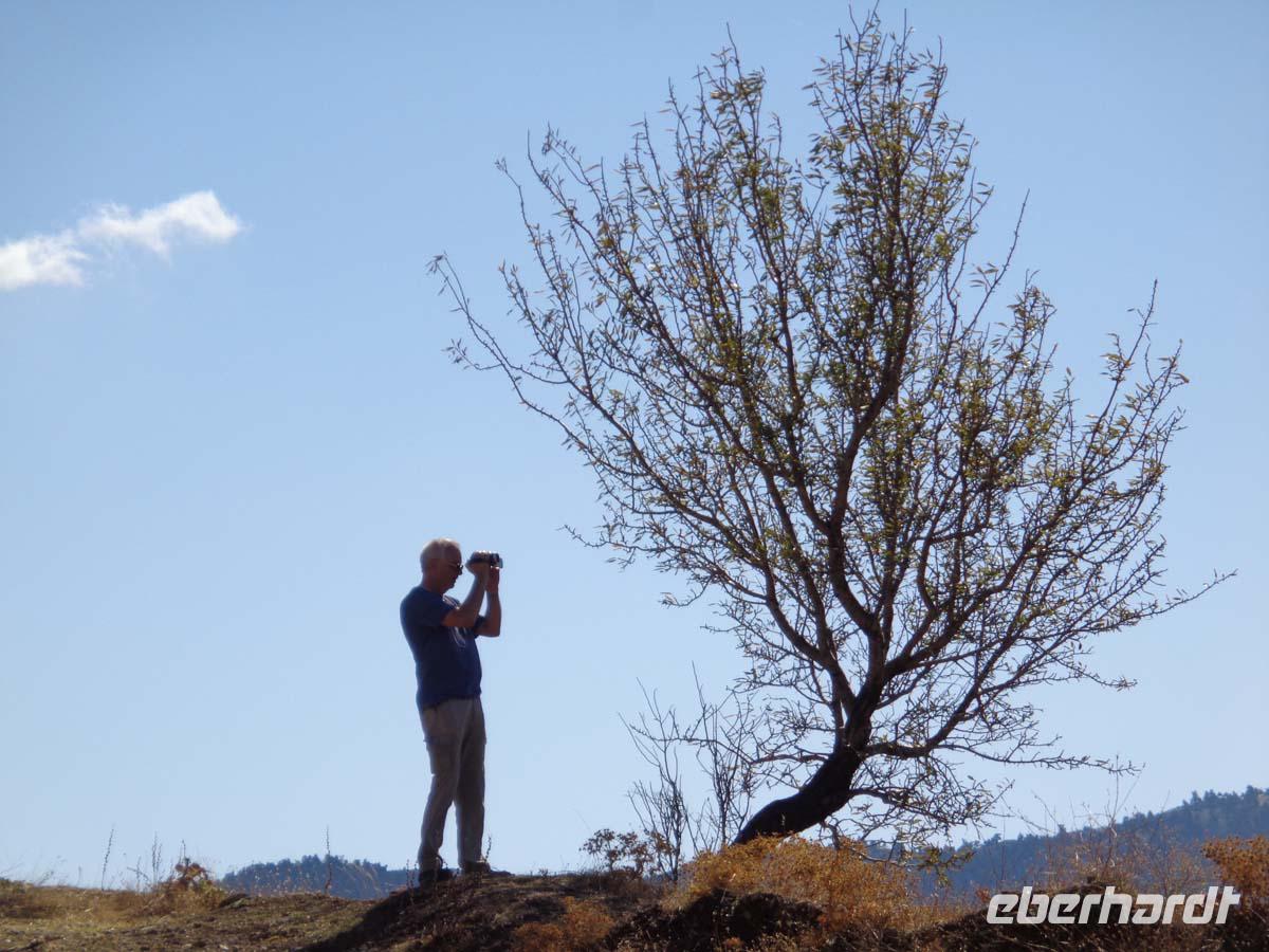 Mit einem griechischen Reisebus und Fahrer erkundet unsere Gruppe heute den Berg Athos, den unser Fahrer hat heute seinen ersten lenkzeitfreien Tag. Es geht durch die hügelige und bergige Landschaft von Chalkidiki mit Olivenbäumen bis zum Horizont und vielen schönen Photomotiven. Schon von weitem grüßt uns der schöne Berg Athos mit seiner fast ebenmäßigen Silhouette. In Ouranopolis besteigen wir unser Boot um an der Küste der Mönchsrepublik entlang zu schippern. An Land darf man allerdings nicht gehen, denn der Zutritt zur autonomen Republik ist Frauen strengstens untersagt, und auch unser Schiff muss einen Mindestabstand von 500 m zum Ufer einhalten. So ziehen die uralten Klöster, Sketen und Eremitagen von See aus am Ufer an uns vorbei und bieten herrliche Impressionen. Nur die Delphine, welche hin und wieder mit dem Boot schwimmen, machen wohl gerade heut um diese Zeit Mittagspause. Höhepunkt ist am südlichen Ende der 2033 m hohe Berg Athos, der sich in erhabenen Gestalt in voller Pracht zeigt, wenn auch hin und wieder Wolken den Gipfel verhüllen. Nach knapp 3 Stunden Schifffahrt landen wir wieder in Ouranopolis. Das kleine Städtchen wartet mit einer schönen Ladenstraße auf, in deren Läden man z. B. verschiedene Sorten Weihrauch, oder den berühmten Thymian-, Kastanien- und Orangenblütenhonig erwerben kann. In einer der vielen Tavernen lassen wir uns das griechische Mittagessen schmecken. Danach begeben wir uns zum Hotel zurück, wo der Tag bei kräftigem Abendrot am Himmel zur Neige geht.