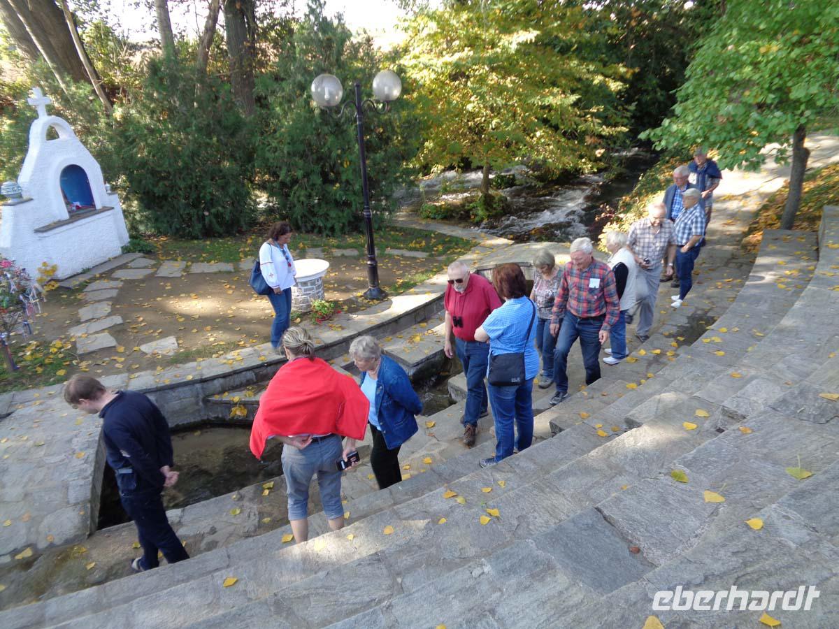 Nach dem Frühstücksbuffet geht es hinauf in schwindelnde Höhen zu den Meteoraklöstern. Ta meteora monastiria - die Klöster in der Luft beeindrucken seit dem 14. Jh. in ihrer heutigen Gestalt. Bis zu 600 m erheben sch die Felsen aus der Piniosebene, auf denen die Klöster wie Schwalbennester kleben. Wir besichtigen die Klöster Varlaam und Stephanou. Wir genießen den überwältigen Ausblick auf die weite Ebene und die Stadt Kalambaka. Die Landschaft ist jedoch so einzigartig, dass wir zwingend einige zusätzliche Photostops einlegen müssen. Die Motive sind einfach zu schön. Der Hunger führt uns in Kalambaka in eine gemütliche Taverne, wo Oma noch selbst am Topf steht. In der Küche sucht sich jeder selber die Gerichte aus den Töpfen aus und die Mutter packt die Teller übervoll. Es gibt Lamm, Schwein und Huhn, mal in Wein gekocht, oder in Öl mit Auberginen sowie verschiedene Gemüse und Reis oder Kartoffeln zur Auswahl. Das mächtige Essen verlangt geradezu nach ein paar Schritten. Diese unternehmen wir bei einer kleinen Wanderung am Fuße des Olymp. Ab der kleinen Sommerfrische Litochoro gehen wir in eine enge Schlucht auf deren Grund das Flüsschen Enippeas fließt. Unser Weg führt uns bis zu mehreren großen Strudeltöpfen, die allgemein unter der Bezeichnung „Die Badewanne des Zeus" bekannt sind, und sich schon im Nationalpark befinden. Den 2925m hohen Gipfel des Berges bekommen wir witterungsbedingt allerding heute nicht zu Gesicht. Am späten Abend erreichen wir unser Hotel in Agia Triada, einem südöstlichen Vorort der Metropole Thessaloniki. Es liegt direkt am Strand mit eigenem Abschnitt und jedes Zimmer hat einen Balkon mit Blick auf den thermeischen Golf. Bei einem opulenten Abendbüffet beschließen wir den ereignisreichen Tag