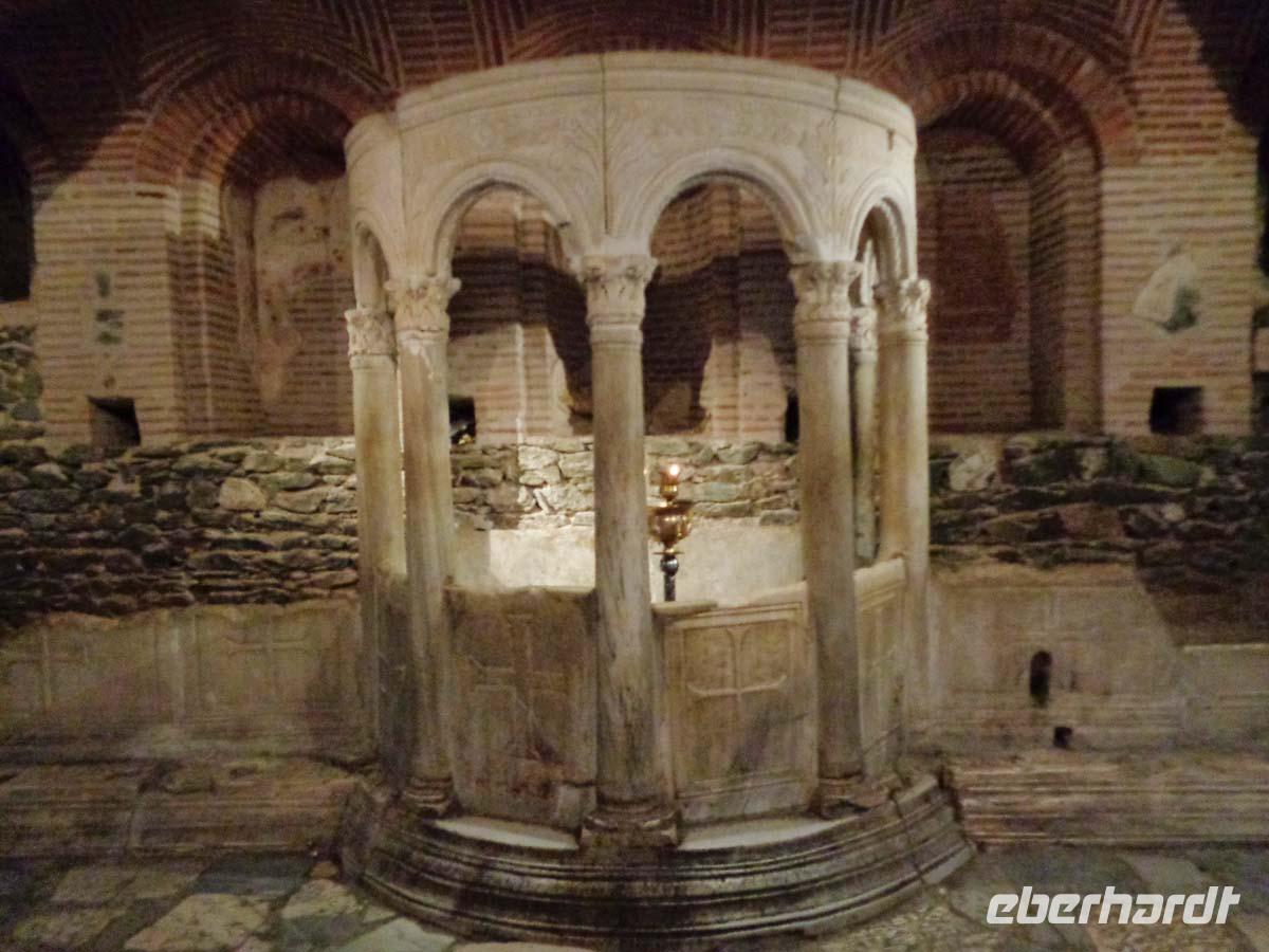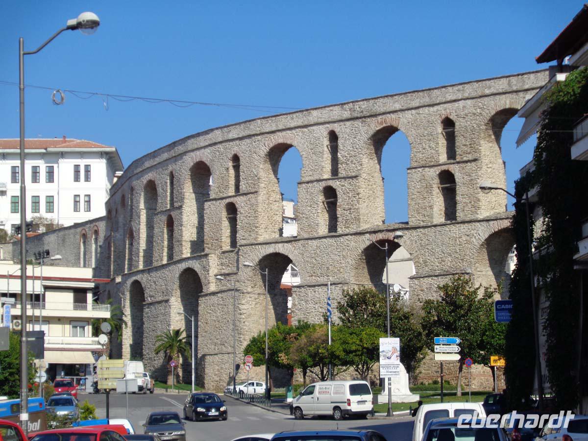 Der heutige Tag steht zunächst im Zeichen des frühen Christentums auf dem europäischen Kontinent. Wir reisen zur antiken Stätte von Philippi. Phillip II. gab der Stadt seinen Namen, die vor allem durch die reichen Goldvorkommen im nahen Pangaiongebirge reich und mächtig wurde. Hier gründete der Apostel Paulus im Jahre 49 n. Chr. die erste christliche Gemeinde. An kaum einem anderen Ort wird die Überprägung griechisch-römischer Anlagen durch christliche Großbauten visuell so deutlich. Der zweieinstündige Rundgang geht nach dem Theater über Basilika A und das Gefängnis des Apostel Paulus zum Forum zur Bischofskirche mit schönen Mosaiken. Längst ist noch nicht alles ausgegraben. Nur eine kurze Strecke ist zu überwinden, dann haben wir das Taufbecken der Lydia erreicht, des ersten Menschen, der in Europa getauft wurde. Hernach kann auch noch ein Blick in das neuzeitliche Baptisterium geworfen werden. Am frühen Nachmittag treffen wir am alten Hafen von Kavala ein. Es ist freie Zeit um die Stadt selbst zu erkunden und/oder in eine der zahlreichen Tavernen zu gehen um etwas zu Mittag zu essen. Am besten verbindet man beides miteinander. Wahrzeichen der Stadt ist ein mächtiges Aquädukt aus der Zeit Suleiman des Prächtigen (16. Jh.). Über der Altstadt thront die Zitadelle, eine 1425 erbaute byzantinische Burg. Nach einem Rundgang sind vor allen die zahlreichen Restaurants an der Hafenpromenade mit guten griechischen Essen zu empfehlen. Der fangfrische Fisch, der hier auf die Teller kommt, wird auf der gegenüberliegenden Straßenseite am Kai angelandet. Bei der Rückkehr zum Hotel statten wir dem Löwen von Amphipolis einen Besuch ab. Die bombastische Plastik ist der Rest eines gewaltigen Grabmonuments aus hellenistischer Zeit, das sich etwas außerhalb der eigentlichen antiken Stadt befindet. Bei einem üppigen Abendbüffet in unserem Hotel lassen wir den Tag ausklingen.