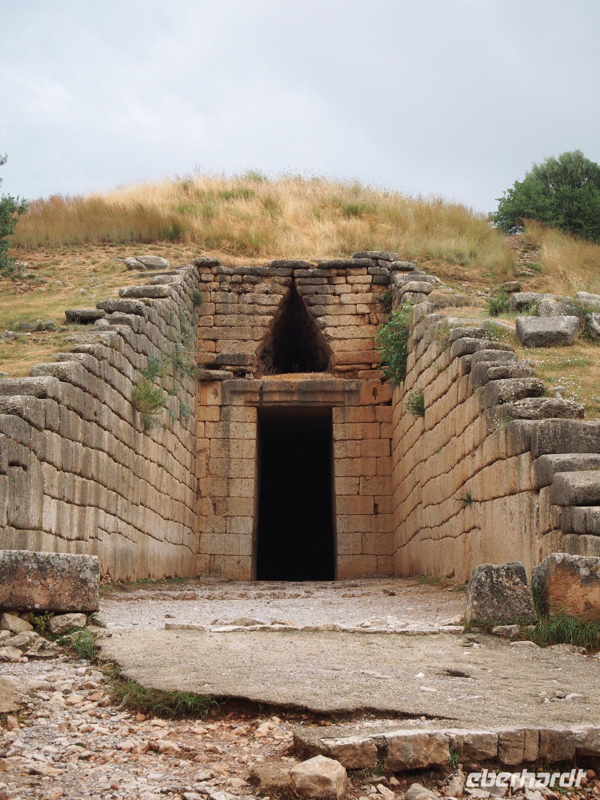 Auf den Spuren Heinrich Schliemanns wandeln wir heute, denn unser Weg führt uns durch die Agrolis, die Gegend südlich von Athen, zunächst nach Mykene. Noch vor den Toren der Stadt, die im 14. Jahrhundert v. Chr. ihre Blütezeit erlebte, befindet sich das sogenannte Schatzhaus des Artreus. In Wirklichkeit ist der riesige Tumulus jedoch eine Grabanlage. Wenig später betreten wir durch das berühmte Löwentor die antike Stadt Mykene und stehen auch gleich schon vor den sogenannten Königsgräbern, wo Schliemann die berühmte Goldmaske des Agamemnon fand. Weiter geht es hinauf zum Palast, zur ober- und unterirdischen Zisterne, sowie am zweiten Stadttor vorbei und wer noch Ausdauer hat, wirft noch einen Blick in das benachbarte Museum.