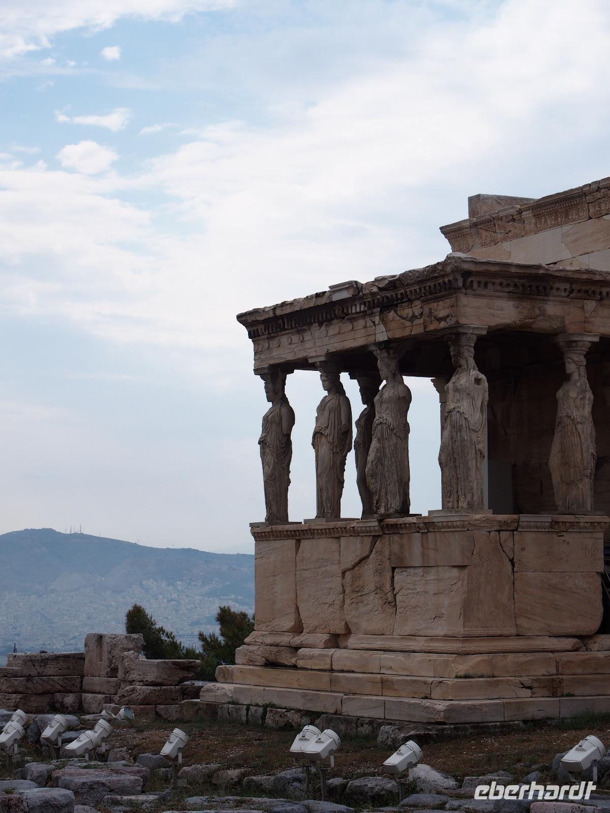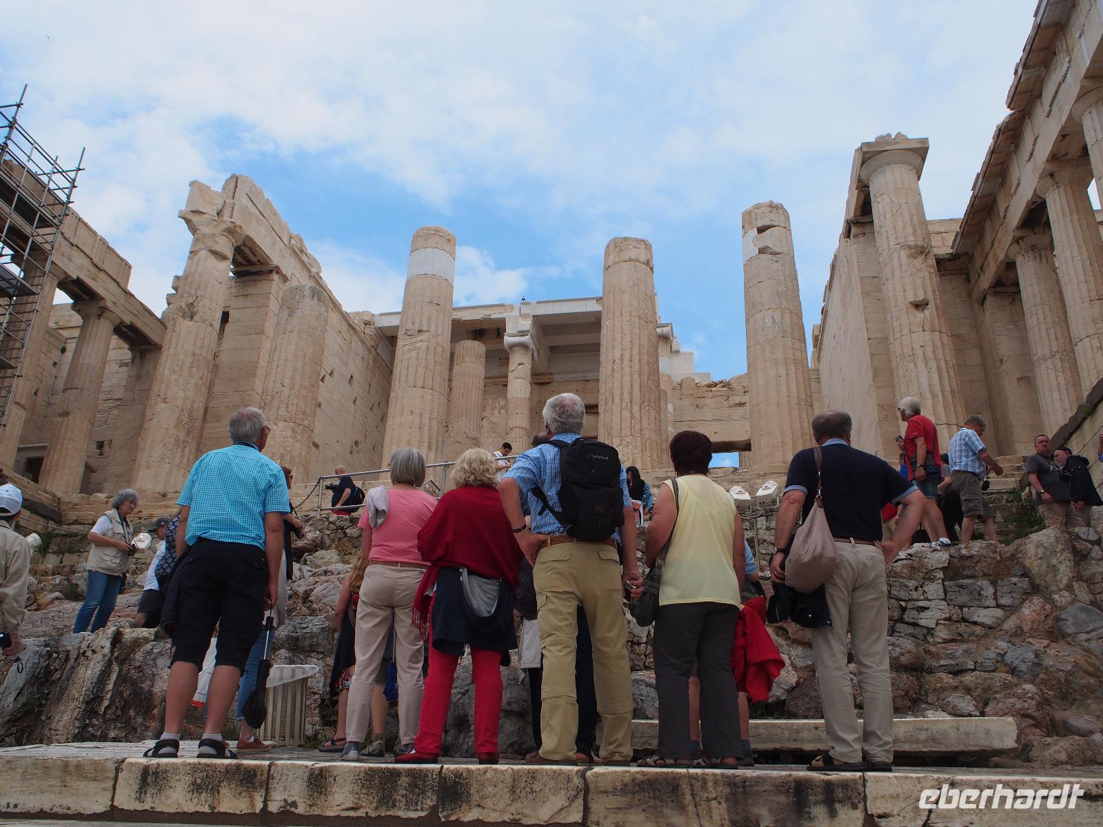 Nach der Mittagspause folgt für viele das absolute Highlight der Reise: der Besuch der Akropolis. Neben den Ruinen der antiken Tempelanlagen des Parthenon und des Erechtheion beeindruckt vor allem auch die herrliche Aussicht über die ganze Stadt bis zum Hafen von Piräus. Von hier können wir alles am Vormittag Gesehene wiederentdecken und dazu einen Eindruck von der antiken Agora mit dem Hephaistostempel und dem römische Forum erlangen. Mit vielen neuen und spannenden Eindrücken machen wir uns gegen Abend auf den Weg zurück Richtung Hotel. Unterwegs bekommen wir noch die Gelegenheit einen Kreuzer der MSC Flotte, sowie einige der großen Mittelmeerfähren im Hafen von Piräus liegen zu sehen und schon entstehen ein paar Tagträume darüber, auch noch ein paar der griechischen Inseln erkunden zu wollen.