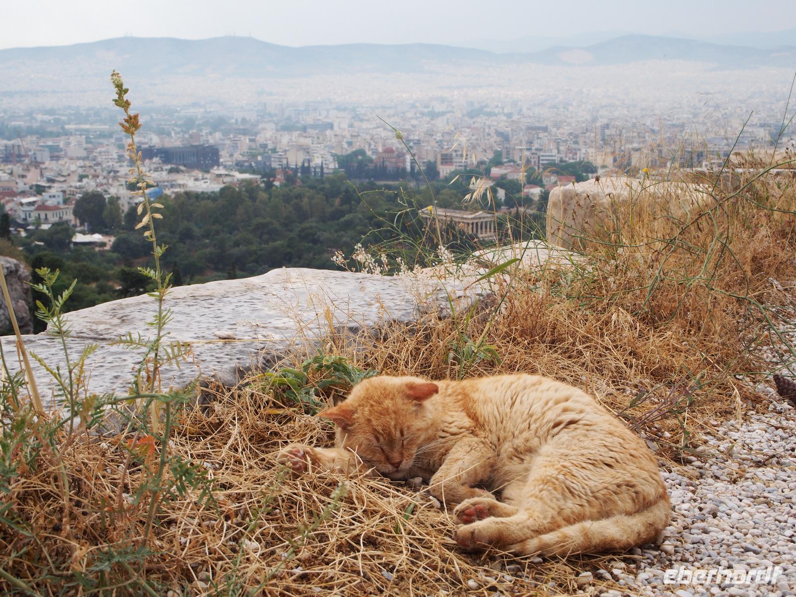 Unsere Mittagspause vertreiben wir uns in der Plaka, der Altstadt Athens, mit griechischen Leckereien und Souvenir-Shopping. Auf dem Weg dorthin fahren wir vorbei am Syntagma-Platz mit dem Parlamentsgebäude, wo die berühmten Evzonen das Grabmal des unbekannten Soldaten bewachen. Weiter geht es vorbei an der klassizistischen Athener Trilogie (Akademie, Bibliothek und Universität), an der katholischen Bischofskirche und der alten Augenklinik bis zum alten Olympiastadion von 1896, wo wir einen kurzen Stopp einlegen.