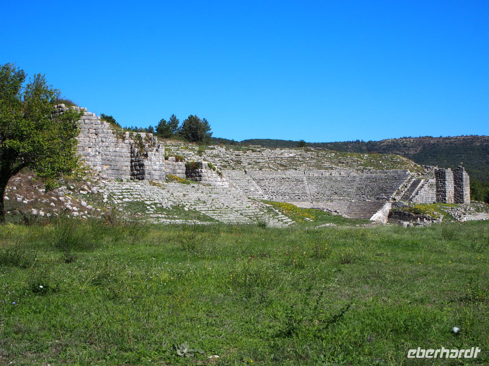 Nach dem Frühstück an Board erreichen wir am Vormittag den Hafen von Igoumenitsa, wo wir auf unsere örtliche Reiseleitung Anastasia treffen. Durch die bergige Landschaft von Epirus machen wir uns auf den Weg zu unserem ersten Ziel, der Ausgrabungsstätte Dodona. Die wenigsten Leute wissen, dass Griechenland zu fast 80% aus Gebirge besteht und sind recht überrascht über die Geografie Nordgriechenlands. Dodona war, zusammen mit Delphi, einst das bedeutendste Orakel der griechischen Welt und gilt gleichzeitig als das älteste seiner Art. Durch das Rauschen der Blätter einer heiligen Eiche vernahmen die Priester hier die Stimme des Göttervaters Zeus, um ihre Weissagungen zu treffen. An diesem wichtigen Ort gab es neben dem Heiligtum natürlich auch eine florierende Stadt mit einem großen Theater und auch wenn die Ausgrabungen hier noch lange nicht abgeschlossen sind, gibt es hier doch eine Menge zu sehen.