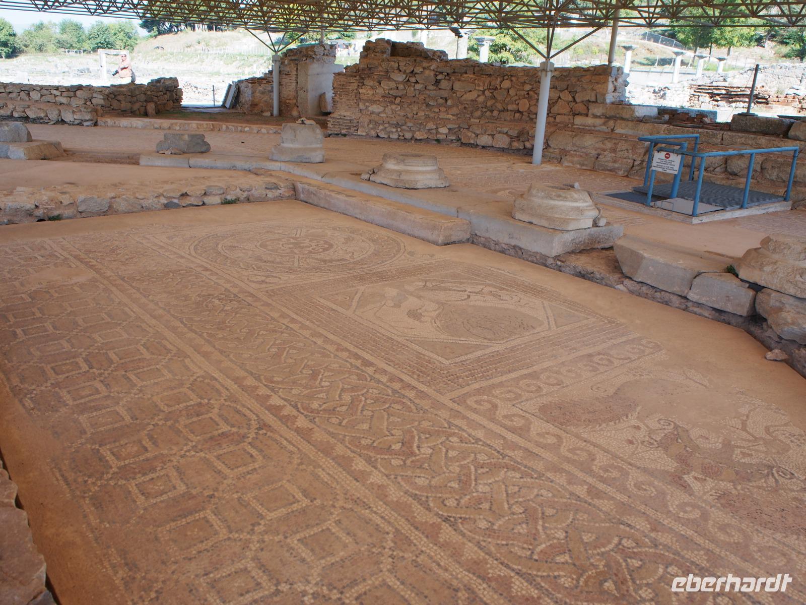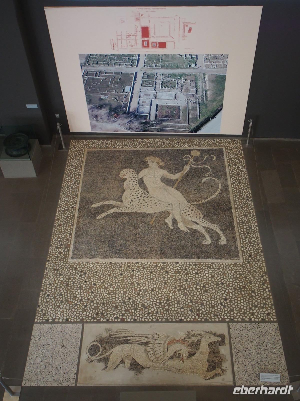Angekommen in Pella stellen wir fest, dass die um 410 v. Chr. von König Archelaos gegründete Geburtsstadt von Phillip II. und seinem berühmten Sohn Alexander dem Großen, heute nur noch ein kleines Bauerndorf ist. 196 v. Chr. wurde die glanzvolle Stadt durch die Römer zerstört und die wertvollen Überreste gerieten bis in die Neuzeit in Vergessenheit. Wir besuchen das 2009 neu eröffnete archäologische Museum, wo die Funde der Ausgrabungen, die seit Mitte der 1950er Jahre auf dem Gebiet der antiken Stadt vorangetrieben werden, ausgestellt und didaktisch sehr schön aufgearbeitet sind. Den Höhepunkt bilden die beeindruckenden Kieselsteinmosaike, die schon zur Hälfte in das Museum überführt wurden, sowie kunstvolle Goldfunde und Grabbeigaben.
