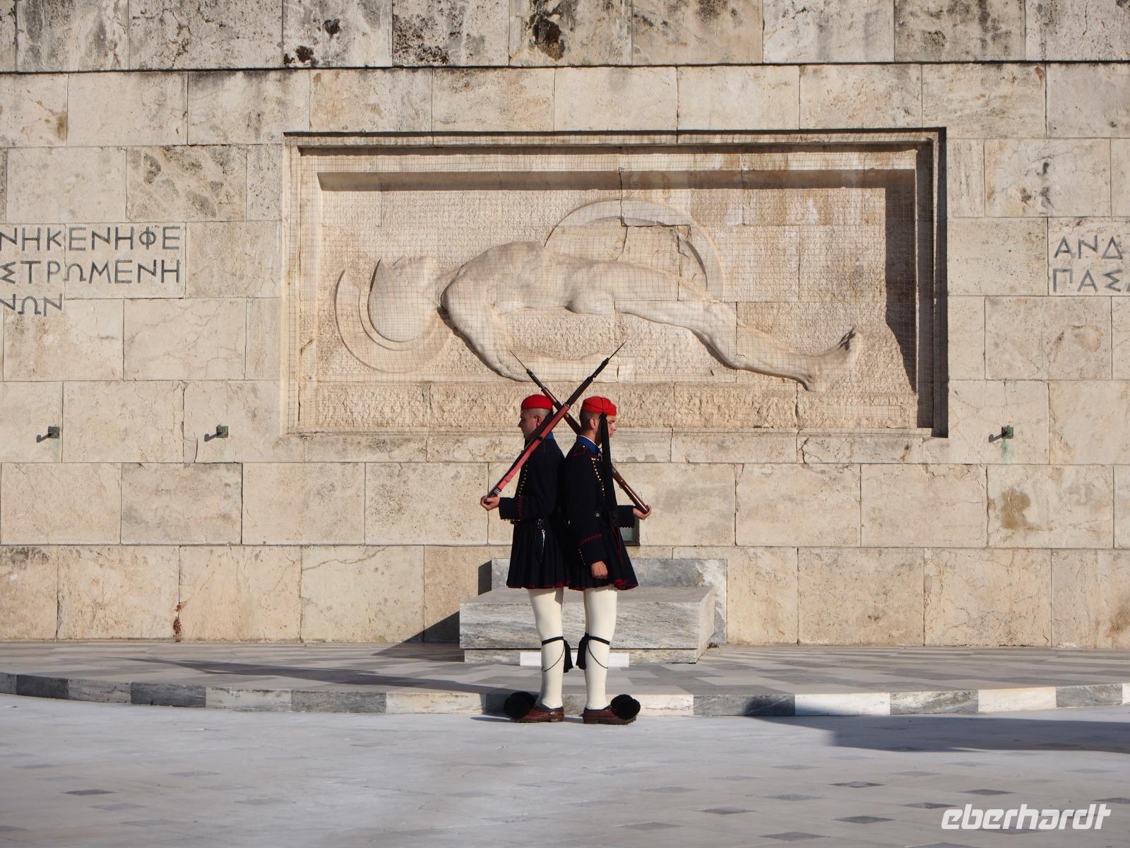 Keine Griechenlandreise ist komplett ohne den Besuch der Hauptstadt Athen. Schon seit der Jungsteinzeit kontinuierlich besiedelt, gilt die Heimatstadt der Demokratie als eine der ältesten Städte Europas, allerdings erlebte Athen viele Aufschwünge und Niedergänge bis sie 1834 zur Hauptstadt des unabhängigen Königreichs Griechenland wurde. Heute ist sie kulturelles, historisches und wirtschaftliches Zentrum des Landes. Um dem Berufsverkehr auszuweichen holt uns Fahrer Georg schon früh mit einem griechischen Bus im Hotel ab. Nach knapp zwei Stunden Fahrt steht als Erstes der Besuch des Archäologischen Nationalmuseums auf dem Plan, dort besichtigen wir die wertvollen Goldfunde aus den zuvor gesehenen Ausgrabungsstätten von Mykene. Da bis ins frühe 20. Jahrhundert alle archäologischen Funde hier untergebracht wurden, findet man antike Exponate aus jeder Epoche und allen Regionen Griechenlands. Alleine in diesem Museum mit seinen rund 11.000 Ausstellungsstücken könnte man den ganzen Tag verbringen, es stehen jedoch noch weitere Dinge auf unserem Plan.