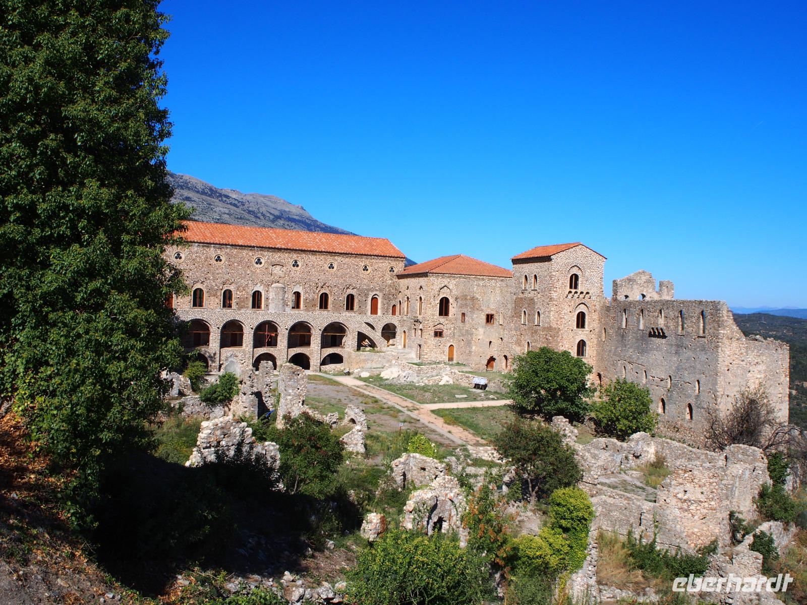 Wir verlassen unser Resort Hotel in Vrachati um noch ein wenig weiter in den Süden der Peloponnes vorzudringen. Wir durchfahren die berühmten Landschaften Arkadiens, die vor allem im 18. und 19. Jahrhundert viele Künstler anlockten und so zum Inbegriff des gelobten paradiesischen Sehnsuchtsziels avancierten. Am späten Vormittag erreichen wir die sagenumwobende Stadt Sparta, allerdings zeugt in der neuzeitlichen Hauptstadt Lakoniens kaum noch etwas von der großartigen antiken Vergangenheit. So führt uns unser Weg schnell weiter in die mittelalterliche Nachfolgesiedlung Spartas, nach Mystras. Strategisch besser, am Hang des Taigetos-Gebirges gelegen, wurde diese Stadt 1249 unter dem fränkischen Grafen William II. von Villehardouin erbaut. Wir besichtigen die byzantinische Ruinenstadt vom oberen Burgtor aus und steigen langsam den steilen Treppenpfad hinab. Dabei besichtigen wir die Kirchen Agia Sophia und Agios Nikolaos sowie den Despotenpalast. Anschließend besuchen wir das Pantanassas Kloster, das heute von sechs Nonnen bewohnt wird, welche seit der Neugründung Spartas in den 30er Jahren die einzigen Bewohnerinnen der verlassenen Stadt sind.Die Mittagspause verbringen wir im schattigen Garten einer authentischen Taverne bevor wir aufbrechen um das Taigetos-Gebirge auf unserem Weg nach Kalamata zu überqueren. Die engen Serpentinen und steilen Hänge sind nicht jedermanns Sache, bieten jedoch die Gelegenheit für herrliche Aussichten. Am späten Nachmittag erreichen wir unser Hotel nahe Kalamata, das nur durch eine Straße vom Strand getrennt ist.