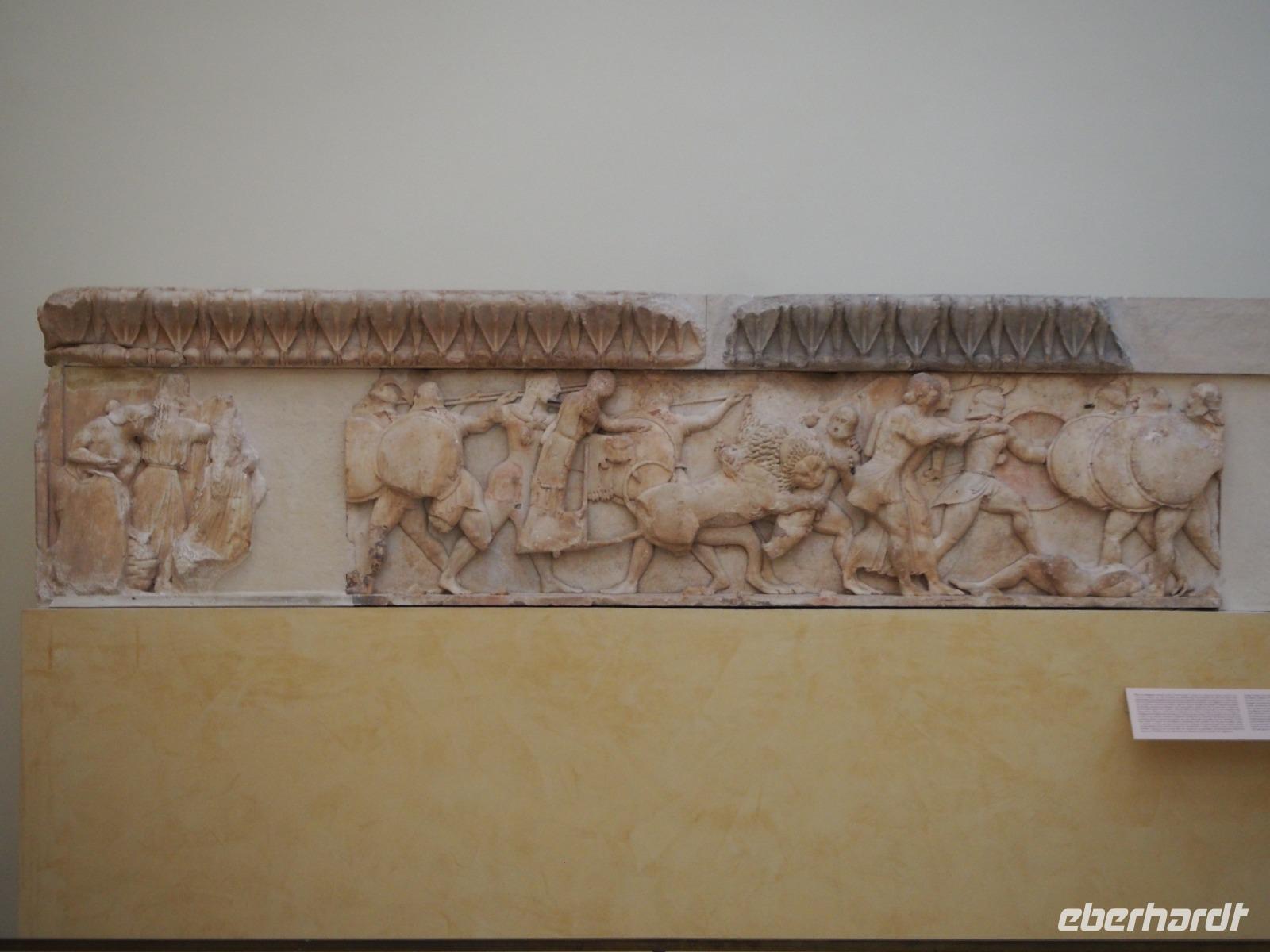 Auf dem Rückweg nach Westen machen wir noch einmal Halt bei Amphipolis, um uns das berühmte Löwendenkmal anzusehen. Einst war der über vier Meter hohe Löwe aus dem 4. Jh. v. Chr. Teil eines monumentalen Grabmales, dessen Ausmaße sich heute nur erahnen lassen.