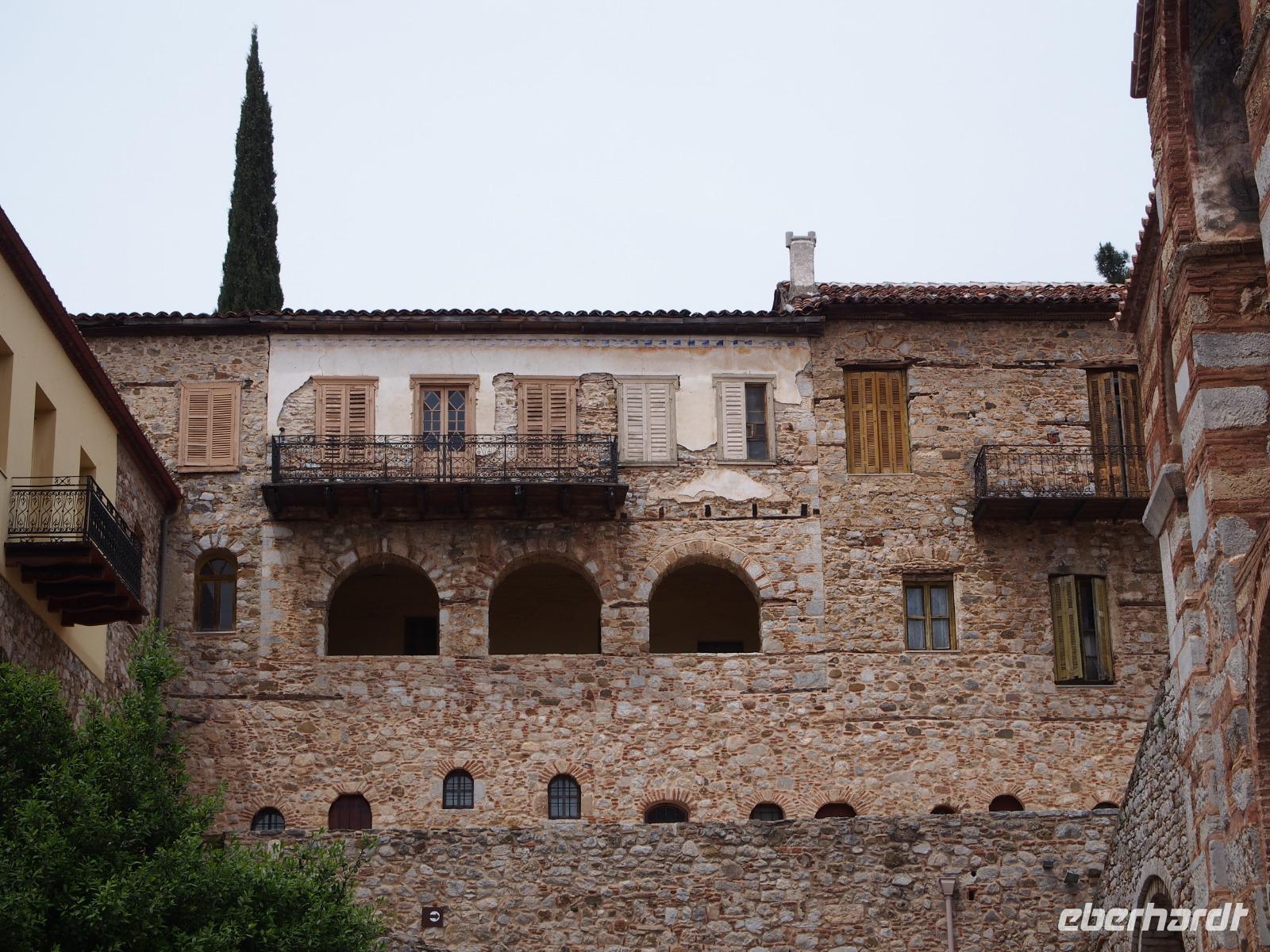 Der Besuch in unserem zweiten Kloster, dem Megalo Meteoron, größten und ältesten der erhaltenen Klöster, erinnert uns schon ein wenig mehr daran, wie beschwerlich der Weg für die Mönche früher gewesen sein muss: trotz der modernen Straße müssen wir ca. 300 Stufen überwinden um die Klosterfestung zu erreichen. Es lohnt sich allerdings, denn hier können wir nicht nur die prachtvolle Kirche bestaunen, sondern auch Profanes entdecken. Unter anderem können wir Werkstätten, Wein- und Vorratskeller sowie die Küche des Klosters besichtigen und so einiges über das Leben der Mönche, früher und heute, erfahren.
