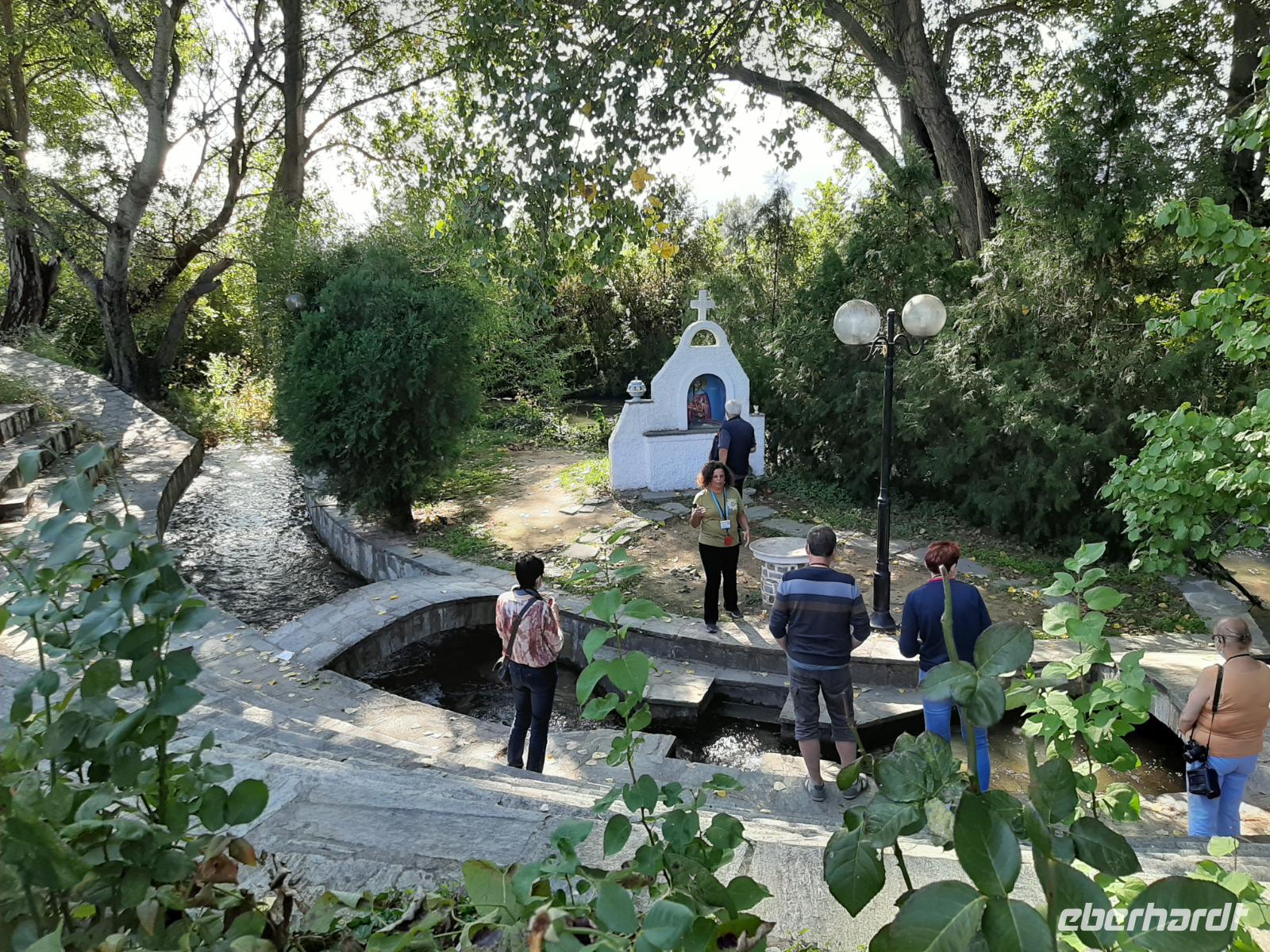 Heute ging es gen Osten über die Kleine Makedonische Ebene und vorbei am Kleinen und Großen See. Philipp II. sollte auch an diesem Tag erneut unser Begleiter sein...! Auf dem Weg erklärte uns Anastasia sehr anschaulich die Problematiken, die heute aufgrund der historischen Region Makedoniens zwischen den politischen Staaten Griechenland, Bulgarien, Albanien und der ehemaligen jugoslawischen Republik Mazedonien bestehen. Unterwegs machten wir einen ersten kurzen Halt an einer Konditorei mit Verkostungsmöglichkeit. Es war unglaublich schwierig, den verschiedenen süßen Versuchungen zu widerstehen und so manch eine griechische Gebäck-Spezialität musste einfach mit... Als besonders lecker erwiesen sich die Kourabiedes, ein traditionelles "weihnachtliches" Mandelgebäck. Unser nächstes Ziel waren die Ausgrabungen der römisch-griechischen Stadt Philippi. Bereits im 4. Jh. v. Chr. gegründet, bekam die Stadt ihren heutigen Namen nach der Eroberung durch den makedonischen König Philipp II. Die einstige Handelsstadt gilt nach wie vor als eine der bedeutendsten römischen Ausgrabungsstätten und als erste christliche Gemeindegründung in Europa durch den Apostel Paulus. Auf den Spuren der frühen Christen ging es dann weiter zum sogenannten Taufbecken der Lydia, der ersten Christin, die auf dem europäischen Kontinent getauft wurde. Am frühen Nachmittag fuhren wir dann in die Hafenstadt Kavala, um dort unsere Mittagspause zu verbringen und uns in einem der zahlreichen Tavernen kulinarisch zu stärken. Der Ort wurde von griechischen Siedlern der Insel Thasos als Neapolis gegründet und während byzantinischer Zeit in Christoupolis umbenannt. Ihren heutigen Namen verdankt sie ihrer Rolle als wichtige Poststation auf der Handelsroute "Via Ignatia", da hier der Wechsel der Pferde stattfand (ital. cavallo). Von der bewegten Geschichte zeugen auch die verschiedenen architektonischen Höhepunkte der Stadt, allen voran ein beeindruckendes osmanisches Aquädukt aus dem 16. Jahrhundert sowie die Zitadelle aus der venezianischen Besatzungszeit im 15. Jahrhundert. Auf unserem Rückweg legten wir noch einen kurzen Halt bei Amphipolis ein, um uns das berühmte Löwendenkmal anzusehen. Einst war der über vier Meter hohe Löwe aus dem 4. Jh. v. Chr. Teil eines monumentalen Grabmales, dessen Ausmaße sich allerdings heute nur noch erahnen lassen.