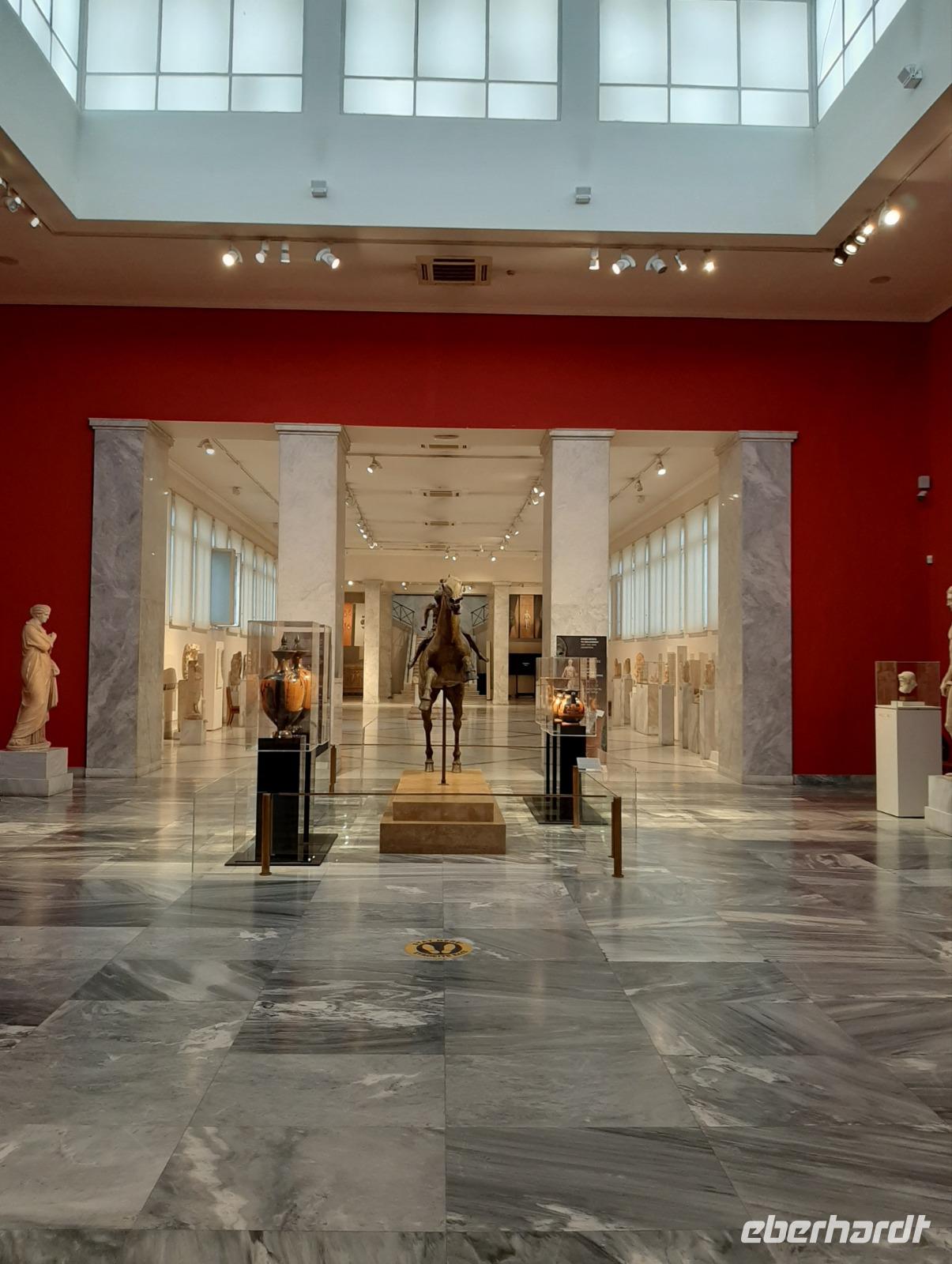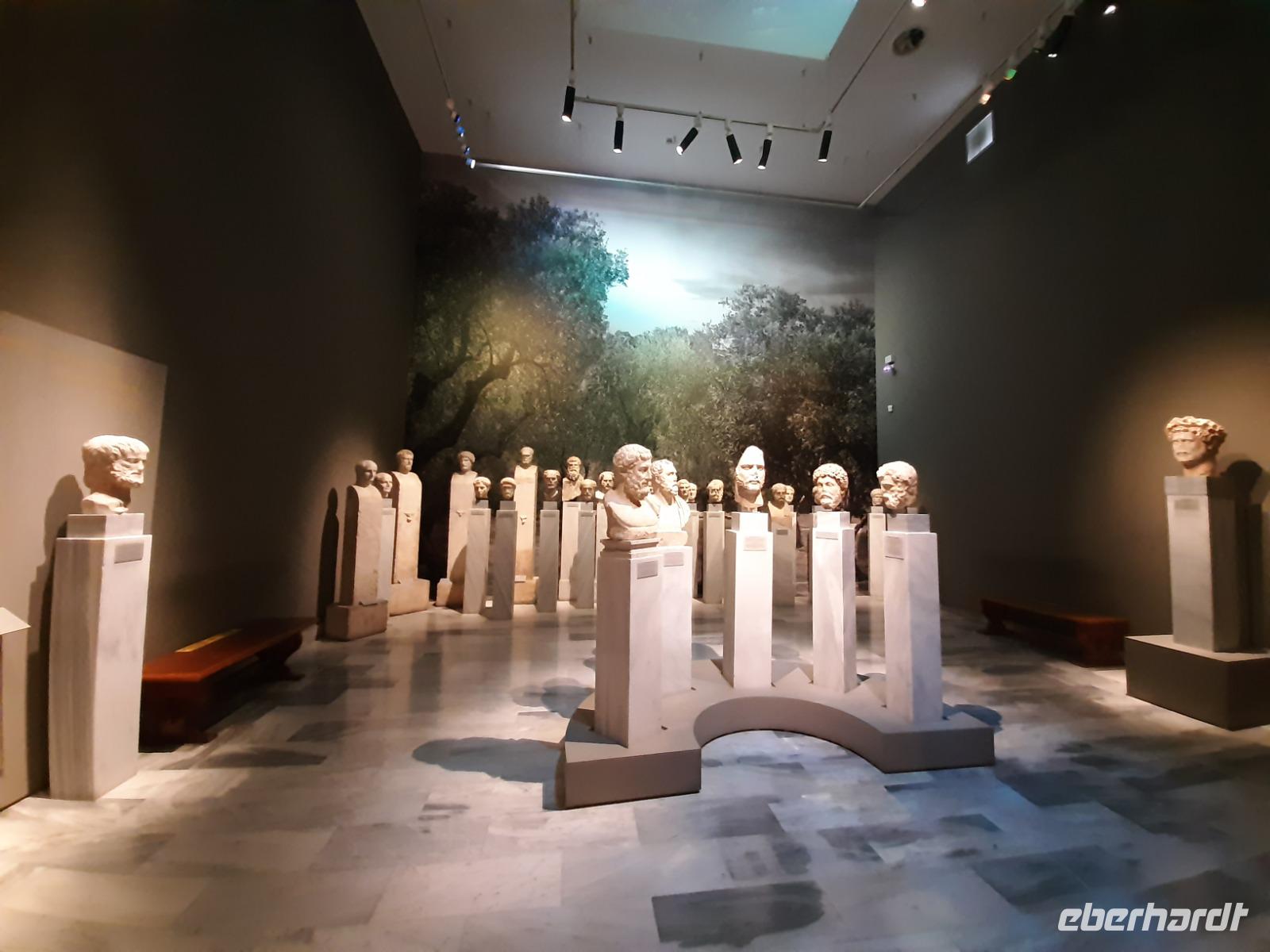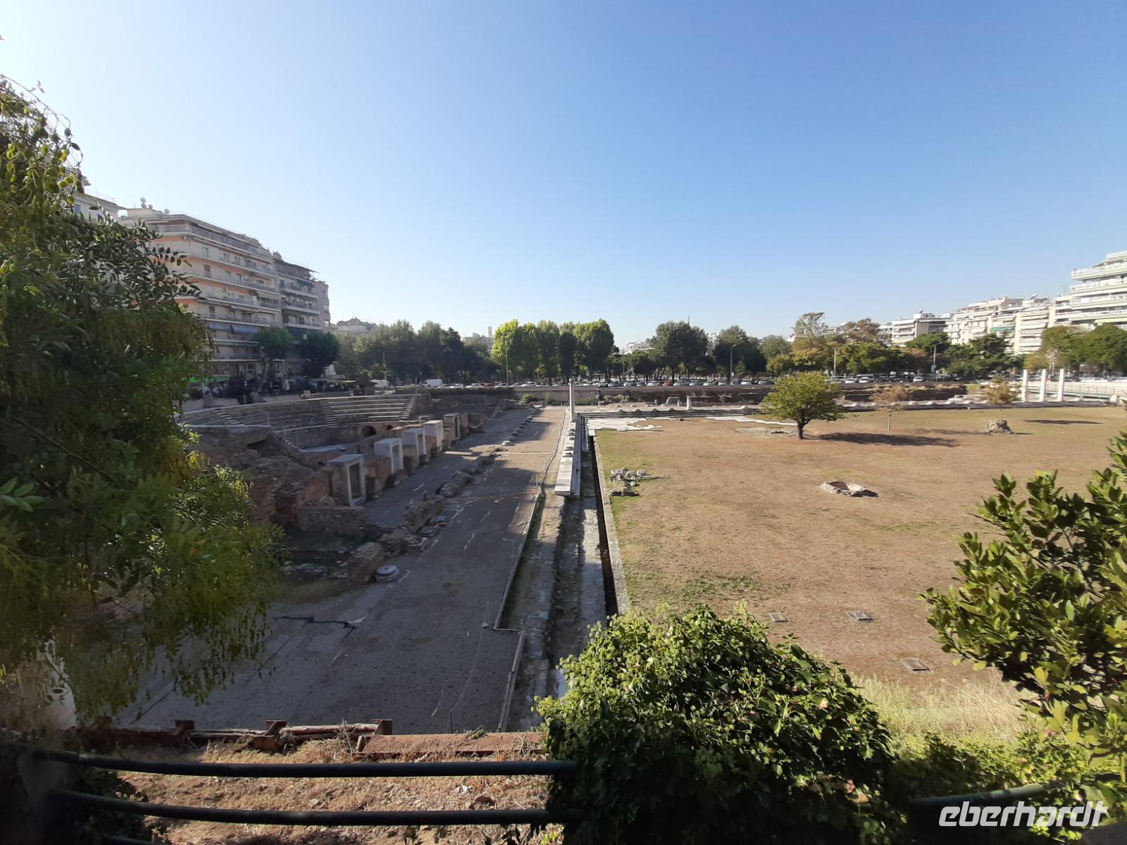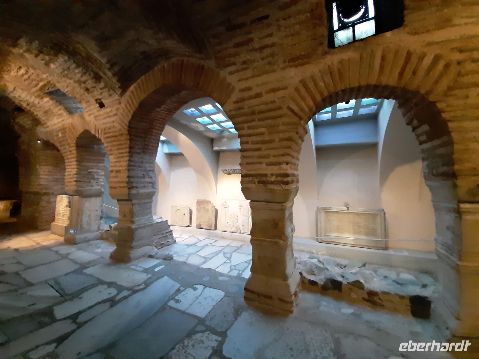 Zunächst begrüßten wir unsere 7 Fluggäste, die am Vortag aus Deutschland angereist waren und unsere Reisefamilie komplettierten. Der heutige Weg stand ganz im Zeichen der großen makedonischen Könige. Zunächst ging durch die makedonische Ebene und vorbei an unzähligen Baumwollfeldern bis nach Pella, der ehemaligen Hauptstadt des Königreiches. Sie war immerhin der Geburtsort von Phillip II. und seinem berühmten Sohn Alexander dem Großen. Diese glanzvolle Stadt wurde später durch die Römer zerstört und die wertvollen Überreste gerieten dann leider bis in die Neuzeit in Vergessenheit. Wir besuchten auch das archäologische Museum, wo die Funde der Ausgrabungen auf dem Gebiet der antiken Stadt ausgestellt sind. Den Höhepunkt bildeten die beeindruckenden Kieselsteinmosaike sowie kunstvolle Goldfunde und Grabbeigaben - wirklich faszinierend! Tief beeindruckt verließen wir Pella und erreichten wenig später Vergina, die frühere Hauptstadt Makedoniens. Hier befinden sich die berühmtesten archäologischen Funde Nordgriechenlands, denn dieser Ort diente über Jahrhunderte als Begräbnisstätte für die makedonischen Könige. Man fand immerhin neun dieser Gräber in der Umgebung von Vergina, darunter auch das ungeplünderte Grab des Makedonierkönigs Phillip II. aus dem 4. Jh. v. Chr. Heute sind diese Gräber an ihrem ursprünglichen Ort samt Museum für die Öffentlichkeit zugänglich und wie zu antiken Zeiten unter einem riesigen Grabhügel verborgen. In der authentischen Dunkelheit des Museums sind wir geblendet von den beeindruckenden Gold- und Silberschätzen! Am Nachmittag fuhren wir nach Thessaloniki zurück und hatten heute vor dem Abendessen noch die Möglichkeit einen individuellen Spaziergang in der Innenstadt zu unternehmen.