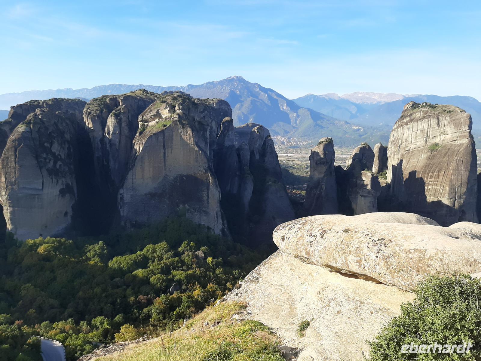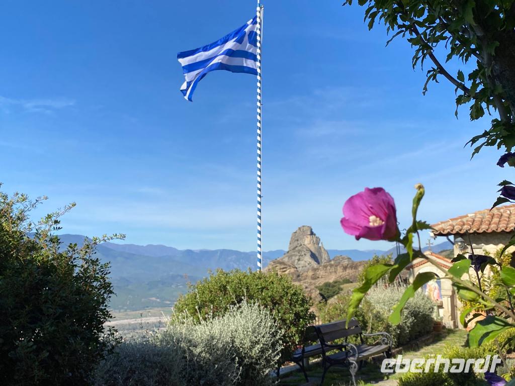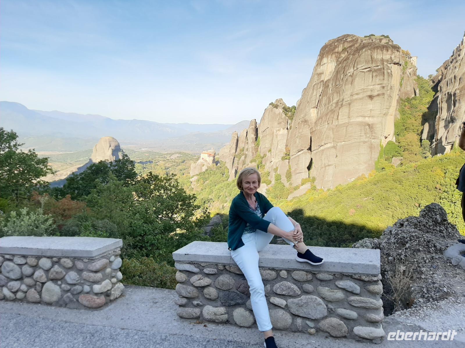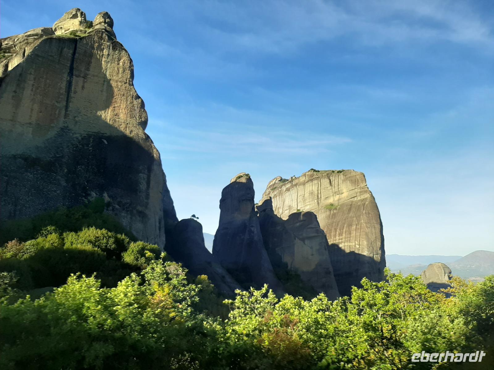 Heute hieß es zwar Koffer packen, aber wir wollten der zweitgrößten Stadt Griechenlands nicht den Rücken kehren, ohne eine Stadtrundfahrt durch Thessaloniki unternommen zu haben. Außerdem handelte es sich um Anastasias Heimatstadt und diese wollte sie uns doch unbedingt noch zeigen! Unsere Fahrt führte uns zunächst entlang der kilometerlangen Hafenpromenade. Am berühmten weißen Turm, einem letzten Zeugnis der alten osmanischen Stadtmauer, machen wir Halt und flanierten zum nur wenige Meter weiter entfernten imposanten Denkmal Alexanders des Großen, der auch heute noch in Makedonien allgegenwärtig zu sein scheint. Anschließend durchfuhren wir die Stadt bis hin zur alten Zitadelle oberhalb der Altstadt. Von hier aus lag uns die Stadt zu Füßen und wir hatten eine wunderbare Aussicht über Saloniki, wie die Einwohner ihre Stadt auch nennen. Auf dem Weg zurück ins Zentrum besuchten wir die Hauptkirche Agios Dimitrios, eine der größten Kirchen Griechenlands. Von hier aus erkundeten wir im Anschluss den Rest der Altstadt zu Fuß. Nur wenige Meter weiter sahen wir das römische Forum und spazierten schließlich zur Kirche Agia Sophia, die durch ihre beindruckenden Wandmalereien besticht. Im Anschluss blieb noch etwas Zeit, um die Stadt auf eigene Faust weiter zu erkunden oder auch in eine der gemütlichen Tavernen einzukehren. Am frühen Nachmittag brachen wir in Richtung Süden auf und bereits nach etwa einer knappen Stunde Fahrt konnten wir am Horizont den mit reichlich 2.900 Meter hohen Gipfel des Olymps und den damit höchsten Berg Griechenlands erkennen. Mit kurzweiligen Geschichten über die Götter und ihre allzu menschlichen Eskapaden verkürzte Anastasia uns die Zeit und machte uns neugierig auf die kleine gemütliche Wanderung am Fuße des sagenumwobenen Gebirges. Ausgangspunkt war das kleine Bergdorf Litochoro am Fuße der Bergkette, von wo es zur Enipea-Schlucht ging. Man könnte es schlichtweg mit einer Levada-Wanderung vergleichen! Wir erlebten eine tolle Landschaft und es war einfach ein Genuss, diese unberührte Natur zu erleben! Auf der anschließenden Weiterfahrt durch die Thessalische Ebene bis nach Kalambaka lauschten wir weiterhin gespannt den mythologischen Geschichten Griechenlands, deren Hauptakteure natürlich immer wieder allesamt "wunderwunderschön" waren und von denen sich auffallend viele auf "grünen Wiesen" mit "wunderschönen Blümelein" abgespielt haben. Es war einfach nur köstlich, diesen Erzählungen Anastasias zuzuhören! Am Abend wurden wir im stilvollen Hotel "Grand Meteora" in Kalambaka erwartet und mit einem geschmackvollen Abendessen verwöhnt.