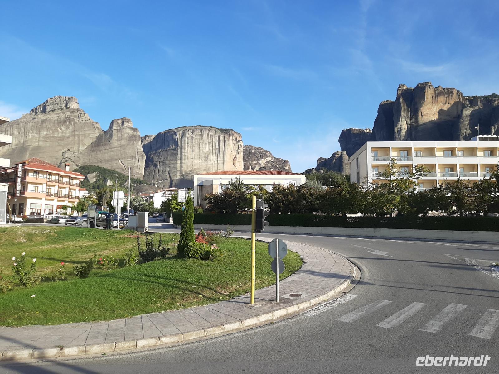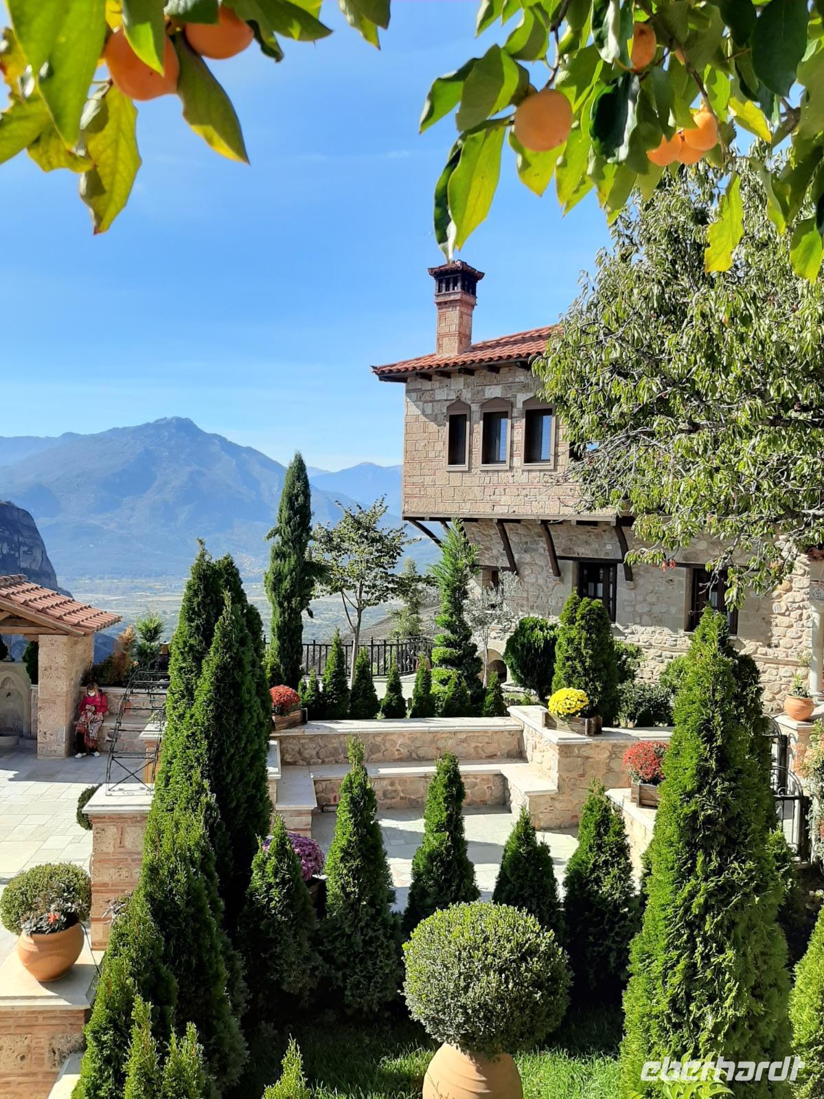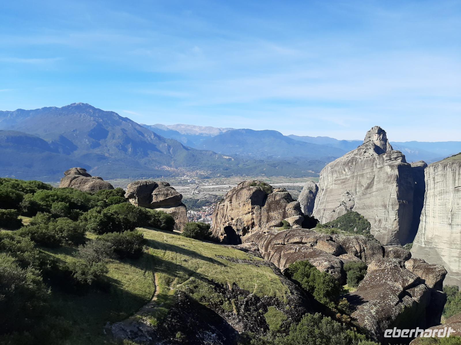 Heute hieß es zwar Koffer packen, aber wir wollten der zweitgrößten Stadt Griechenlands nicht den Rücken kehren, ohne eine Stadtrundfahrt durch Thessaloniki unternommen zu haben. Außerdem handelte es sich um Anastasias Heimatstadt und diese wollte sie uns doch unbedingt noch zeigen! Unsere Fahrt führte uns zunächst entlang der kilometerlangen Hafenpromenade. Am berühmten weißen Turm, einem letzten Zeugnis der alten osmanischen Stadtmauer, machen wir Halt und flanierten zum nur wenige Meter weiter entfernten imposanten Denkmal Alexanders des Großen, der auch heute noch in Makedonien allgegenwärtig zu sein scheint. Anschließend durchfuhren wir die Stadt bis hin zur alten Zitadelle oberhalb der Altstadt. Von hier aus lag uns die Stadt zu Füßen und wir hatten eine wunderbare Aussicht über Saloniki, wie die Einwohner ihre Stadt auch nennen. Auf dem Weg zurück ins Zentrum besuchten wir die Hauptkirche Agios Dimitrios, eine der größten Kirchen Griechenlands. Von hier aus erkundeten wir im Anschluss den Rest der Altstadt zu Fuß. Nur wenige Meter weiter sahen wir das römische Forum und spazierten schließlich zur Kirche Agia Sophia, die durch ihre beindruckenden Wandmalereien besticht. Im Anschluss blieb noch etwas Zeit, um die Stadt auf eigene Faust weiter zu erkunden oder auch in eine der gemütlichen Tavernen einzukehren. Am frühen Nachmittag brachen wir in Richtung Süden auf und bereits nach etwa einer knappen Stunde Fahrt konnten wir am Horizont den mit reichlich 2.900 Meter hohen Gipfel des Olymps und den damit höchsten Berg Griechenlands erkennen. Mit kurzweiligen Geschichten über die Götter und ihre allzu menschlichen Eskapaden verkürzte Anastasia uns die Zeit und machte uns neugierig auf die kleine gemütliche Wanderung am Fuße des sagenumwobenen Gebirges. Ausgangspunkt war das kleine Bergdorf Litochoro am Fuße der Bergkette, von wo es zur Enipea-Schlucht ging. Man könnte es schlichtweg mit einer Levada-Wanderung vergleichen! Wir erlebten eine tolle Landschaft und es war einfach ein Genuss, diese unberührte Natur zu erleben! Auf der anschließenden Weiterfahrt durch die Thessalische Ebene bis nach Kalambaka lauschten wir weiterhin gespannt den mythologischen Geschichten Griechenlands, deren Hauptakteure natürlich immer wieder allesamt "wunderwunderschön" waren und von denen sich auffallend viele auf "grünen Wiesen" mit "wunderschönen Blümelein" abgespielt haben. Es war einfach nur köstlich, diesen Erzählungen Anastasias zuzuhören! Am Abend wurden wir im stilvollen Hotel "Grand Meteora" in Kalambaka erwartet und mit einem geschmackvollen Abendessen verwöhnt.