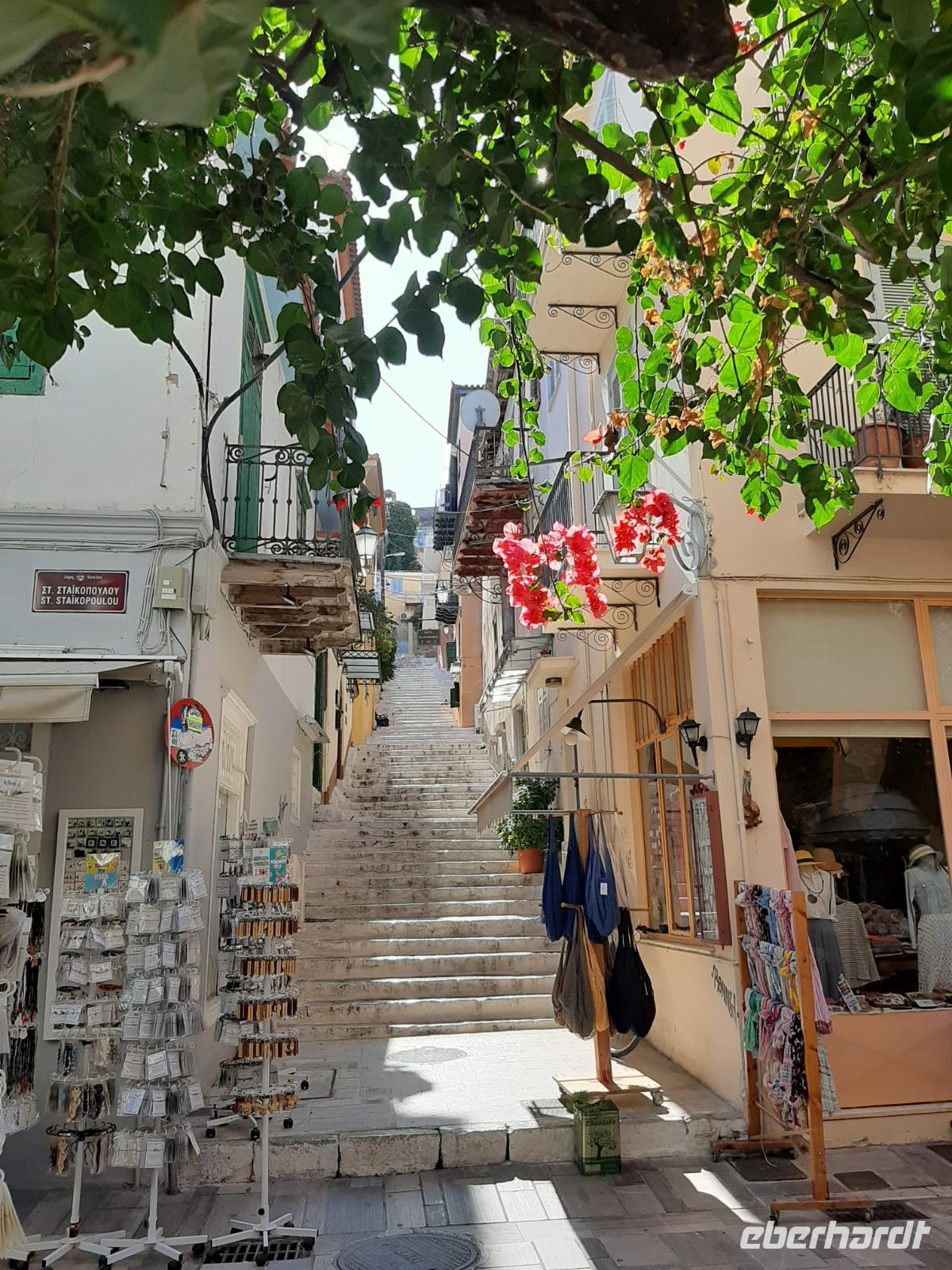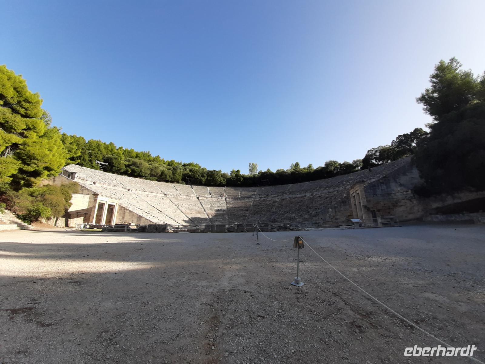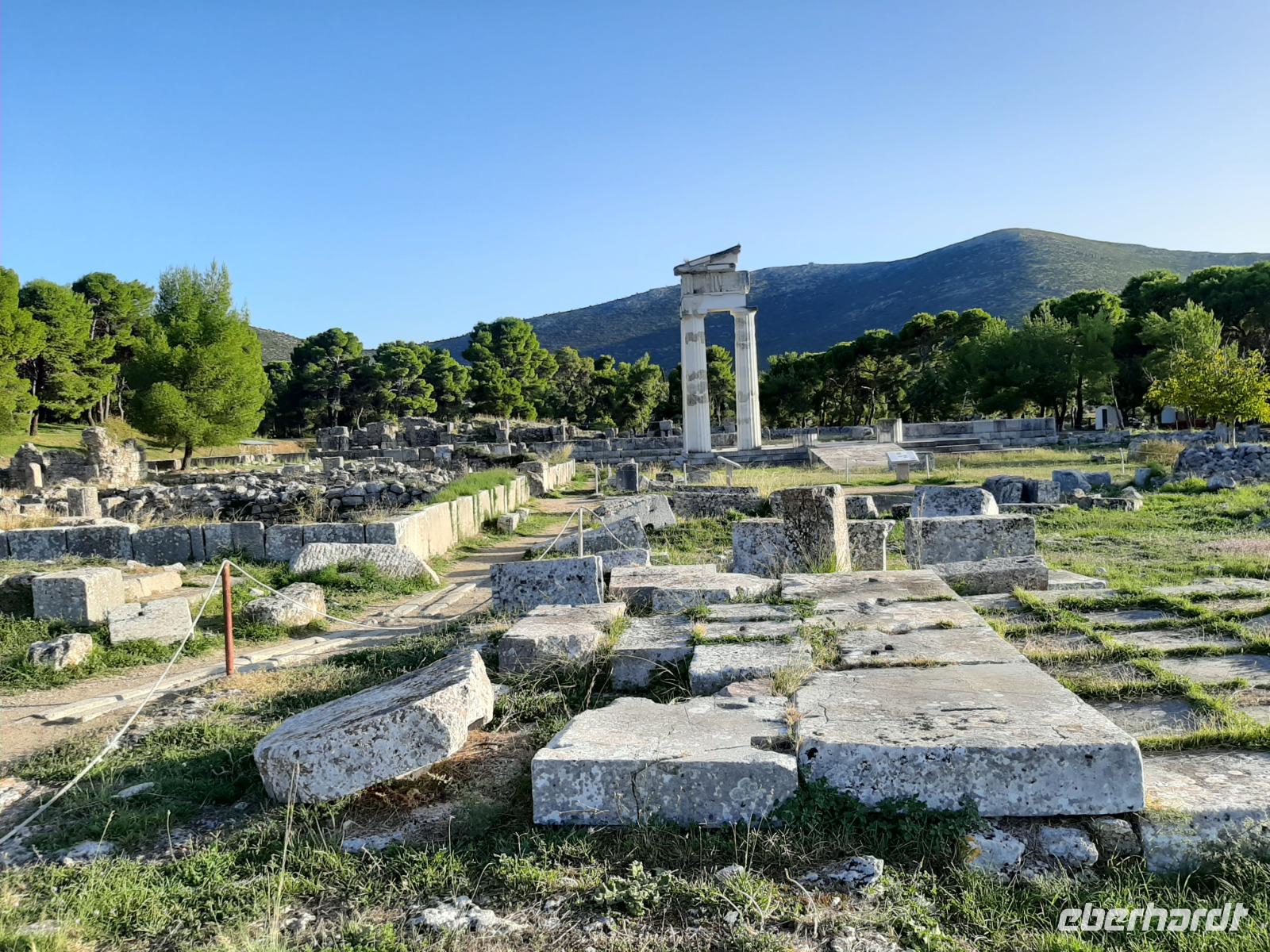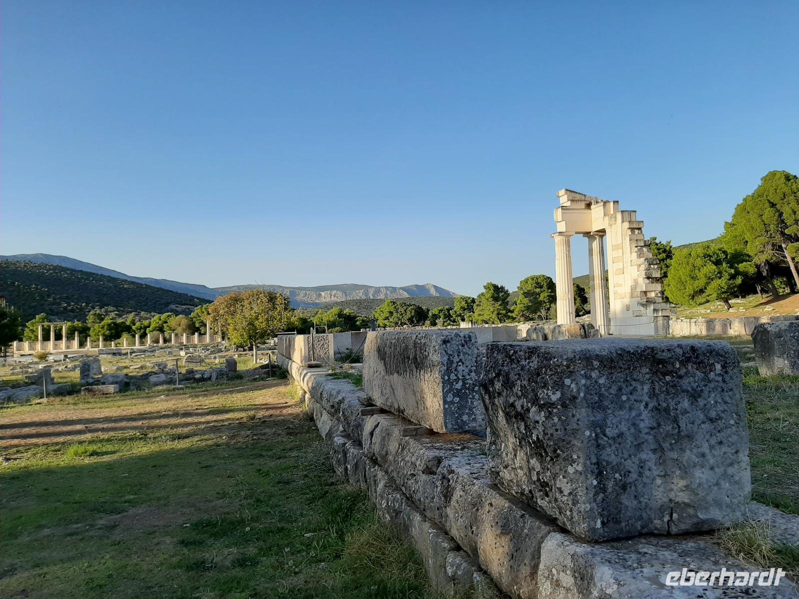 Auch heute erwarteten uns wieder wichtige antike Ausgrabungsstätten. Die Fahrt führte uns in südliche Richtung und vorbei am Weingebiet Nemea, wo überwiegend trockene Rotweine aus der Agiorgitiko-Traube gekeltert werden. Nach einer kurzweiligen Fahrt erreichten wir Mykene, die berühmte Heimatstadt des sagenumwobenen Königs Agamemnon. Sogar der bekannte deutsche Archäologe Heinrich Schliemann weilte auf der Suche der Grablege des antiken Herrschers Ende des 19. Jh.´s hier. Noch vor den Toren der Stadt besuchten wir zuerst das sogenannte "Schatzhaus des Atreus", doch in Wirklichkeit ist der riesige Tumulus eine Grabanlage. Wenig später betraten wir durch das berühmte "Löwentor" die antike Stadt Mykene und standen auch schon direkt vor den sogenannten Königsgräbern, wo Schliemann die berühmte Goldmaske des Agamemnon fand. Heute weiß man allerdings, dass die Maske, die sich heute im Nationalarchäologischen Museum in Athen befindet, aus einer früheren Ära stammt. Wer noch Ausdauer hatte, ging anschließend individuell hinauf zum Palast, zur ober- und unterirdischen Zisterne, sowie am zweiten Stadttor vorbei. Auch für einen Besuch des hiesigen kleinen Museums bot sich die Zeit und wer wollte, konnte so weitere interessante Informationen zur Geschichte der Gegend erhalten. Gegen Mittag erreichten wir Nauplia, die einstige Hauptstadt Griechenlands. Die Stadt liegt direkt am Argolischen Golf und besticht mit einem besonderen Charme. Wir flanierten durch die engen Gassen der Altstadt und über malerische Plätze. Schnell bemerkten wir die italienisch anmutende Atmosphäre, was sich besonders in der Architektur der Häuser widerspiegelte. Die mehrmalige venezianische Besatzung hatte eben deutliche Spuren hinterlassen...! Hier verbrachten wir auch unsere heutige Mittagspause in einer der zahlreichen Tavernen. Gut erholt machten wir uns schließlich weiter in Richtung Epidaurus auf, um dort die Ausgrabungsstätte des Asklepios-Heiligtums zu besichtigen. Besonders beeindruckte uns dort allerdings das sehr gut erhaltene antike Theater, welches für etwa 12.000 Besucher Platz bietet und zudem eine hervorragende Akustik aufweist. Voller schöner Eindrücke ging es über die Küstenstraße nach Vrachati zurück. Aufgrund der Tatsache, dass die Akropolis in Athen am Folgetag wegen der Erneuerung der Gehwege nicht zu besichtigen gewesen wäre, hatten wir uns kurzfristig entschieden, die Programme des 11. mit dem 12. Reisetages zu tauschen!