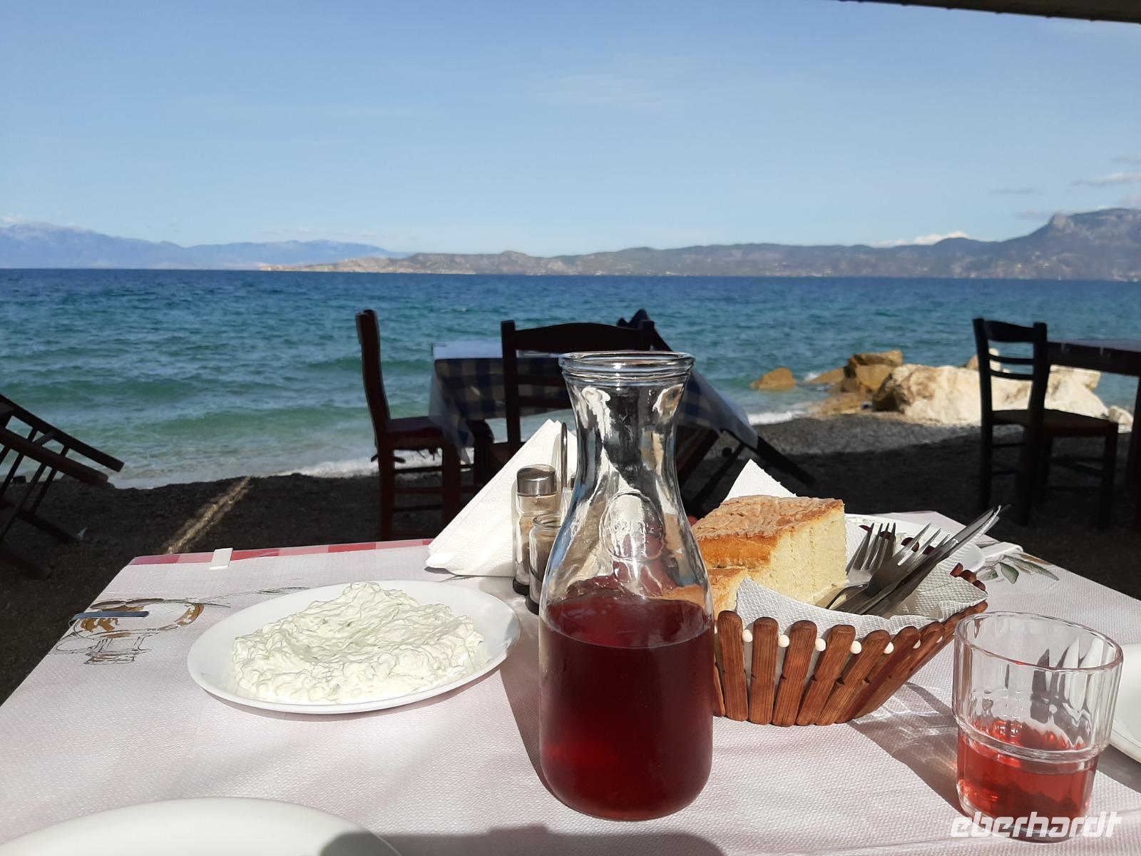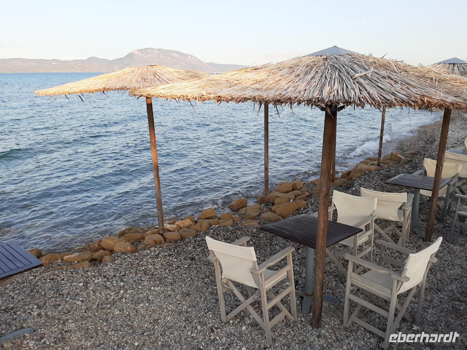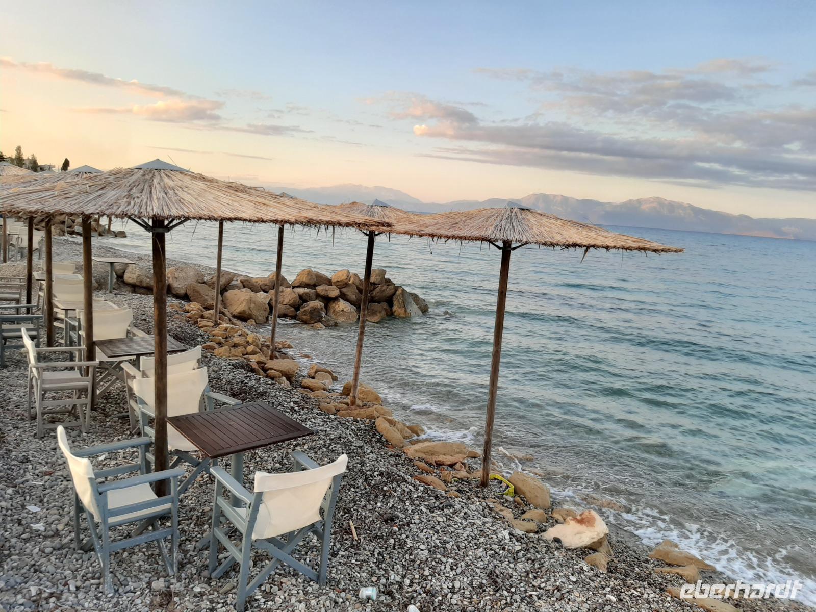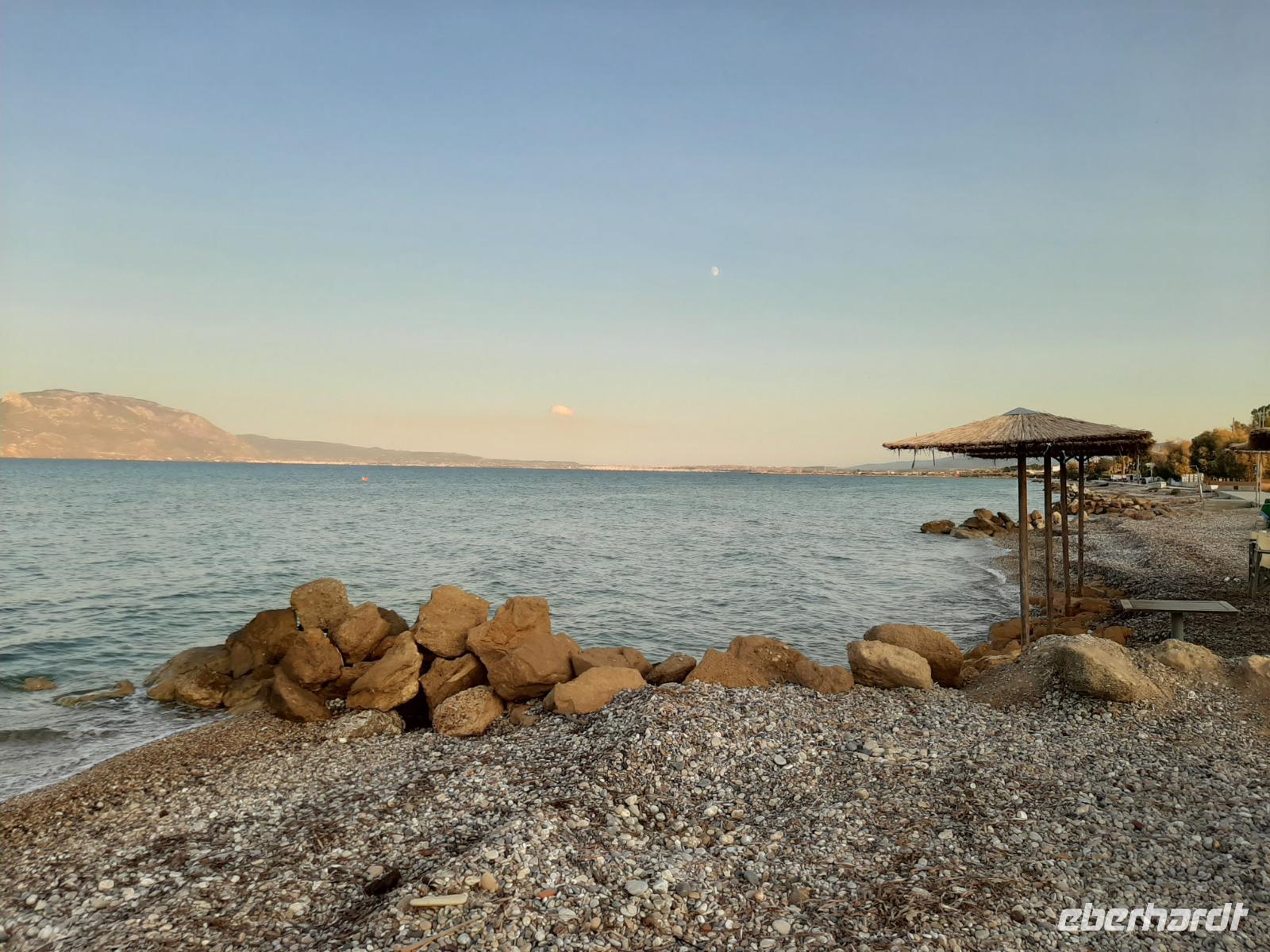 Leider konnte der für heute geplante fakultative Ausflug nach Altkorinth aufgrund zu weniger Reiseteilnehmer nicht stattfinden. Einige Gäste nutzten die günstigen Taxi-Tarife Griechenlands und schlossen sich zusammen, um Altkorinth ganz individuell in kleinen Grüppchen zu besichtigen. Wiederum andere Gäste genossen die freie Zeit für einen Bummel durch den Ort bzw. zum Ausspannen am nahegelegenen Strand. Außerdem stand auch ein gepflegter Hotel-Pool zur Verfügung. Heute konnte wirklich jeder das tun, auf was er gerade Lust hatte.