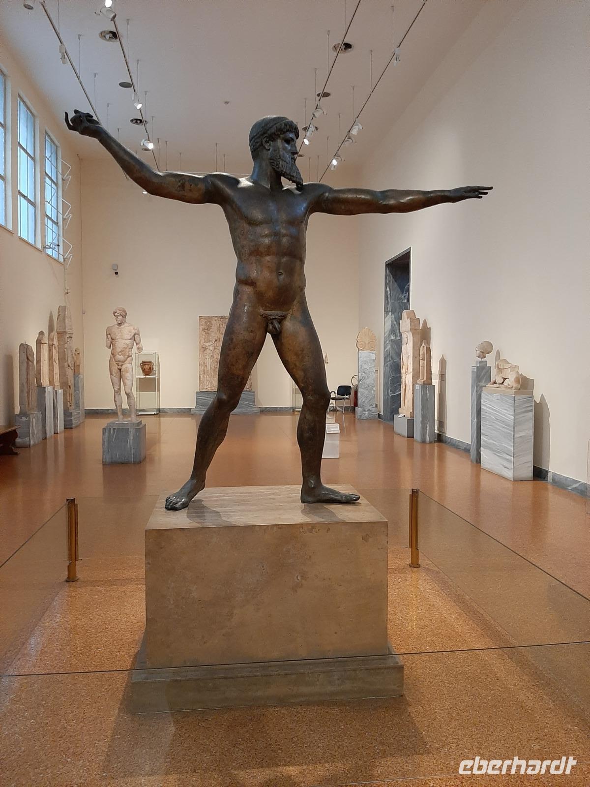 Keine Griechenland-Reise wäre ohne den Besuch der Hauptstadt Athen komplett und so starteten wir auch heute wieder voller Vorfreude in den Tag. Auch das morgendliche Regenwetter konnte uns nichts anhaben und außerdem war dieser Tausch der Tage noch in einer anderen Hinsicht sehr effektiv - heute war nämlich der griechische Nationalfeiertag! Das bedeutete zum einen leere Straßen bzw. kein Berufsverkehr und zum anderen freie Eintritte für das Archäologische Nationalmuseum und die Akropolis! Wir waren sehr überrascht und absolut erfreut darüber... Unser Buschauffeur Jörg hatte heute nochmals einen freien Tag und so holte uns ein griechischer Bus mitsamt Chauffeur im Hotel ab und in weniger als anderthalb Stunden erreichten wir Athen, das kulturelle, historische und wirtschaftliches Zentrum des Landes. Normalerweise benötigt man mehr als zwei Stunden für diese Fahrt!!! Naja, jetzt kam noch ein weiterer Vorteil hinzu - wir waren die ersten Besucher im Archäologischen Nationalmuseum, noch bevor sich lange Warteschlangen bildeten. Wir sahen unter anderem viele wertvolle Goldfunde aus den gestern gesehenen Ausgrabungsstätten von Mykene. Da bis ins frühe 20. Jahrhundert alle archäologischen Funde hier im Museum untergebracht wurden, konnte man antike Exponate aus jeder Epoche und allen Regionen Griechenlands bestaunen. Wir waren uns einig - allein in diesem Museum mit seinen rund 11.000 Ausstellungsstücken könnte man den ganzen Tag verbringen! Es standen jedoch noch viele weitere Dinge auf unserem Plan und wir konnten uns lediglich einen kleinen Eindruck verschaffen. Kurz darauf ging es zum Wahrzeichen Athens, zur berühmten Akropolis und der Wettergott hatte wahrhaft ein Einsehen mit uns, denn es regnete nicht mehr. Somit konnten wir den Aufstieg zum Hügel der Akropolis trockenen Fußes in Angriff nehmen. Diese weltbekannte Stadtfestung aus der Antike mit monumentalen Tempelanlagen diente ursprünglich als Wehranlage. Heutzutage genießt man von oben atemberaubende Blicke auf das moderne Athen. Den Nachmittag verbrachten wir in der Altstadt/Plaka, die wir schließlich auf eigene Faust erkundeten. Diese besticht vor allem mit allerhand griechischen Leckereien und Souvenir-Shopping-Möglichkeiten. Eine kleine Stadtrundfahrt rundete unseren Besuch in Athen ab. So sahen wir das alte Olympiastadion von 1896, fahren anschließend über den Syntagma-Platz mit dem Parlamentsgebäude und vorbei an der klassizistischen "Athener Trilogie" (Akademie, Bibliothek und Universität). Über den Omonia-Platz verlassen wir langsam die Innenstadt und machen uns auf den Weg nach Vrachati zurück.