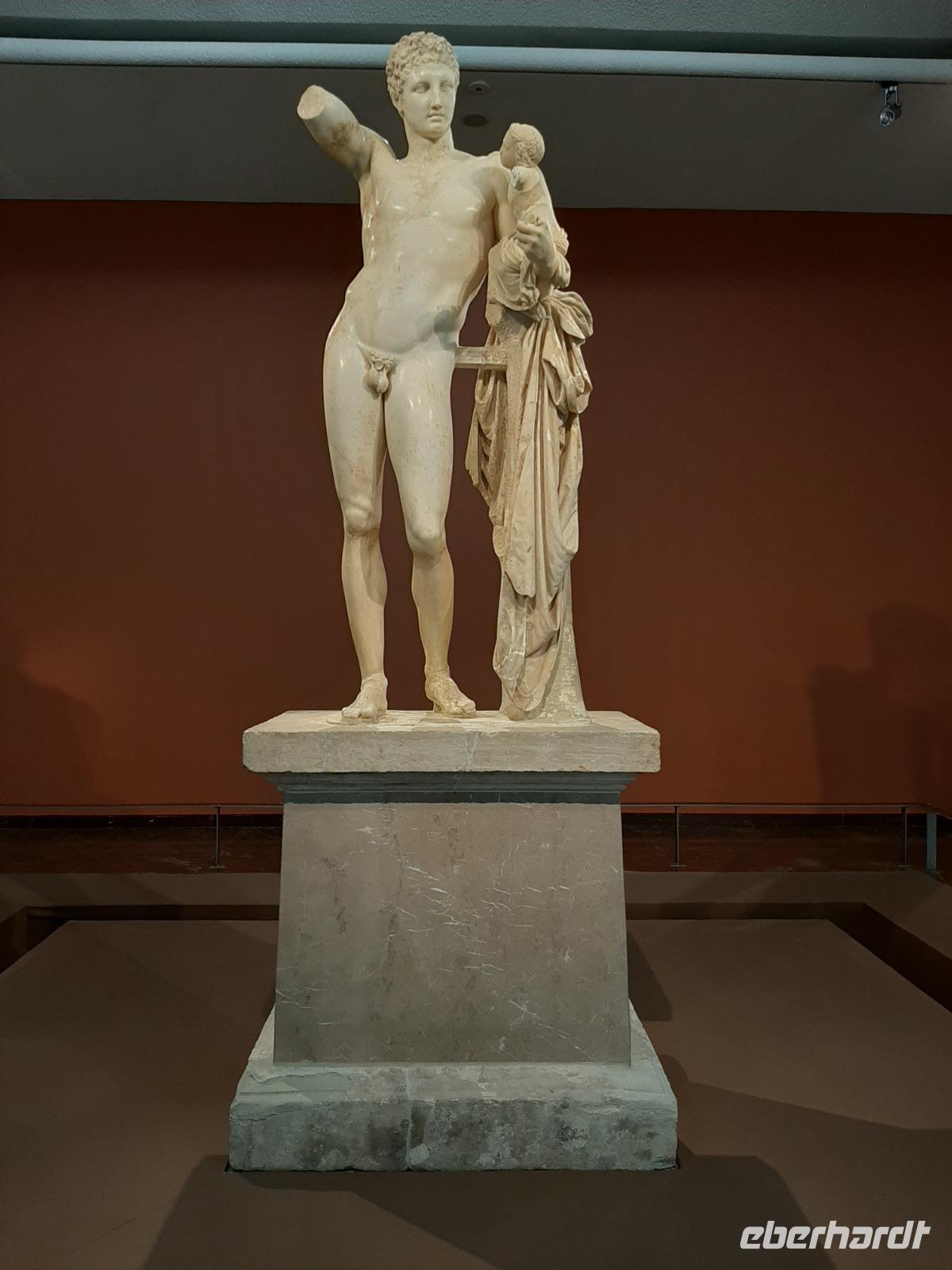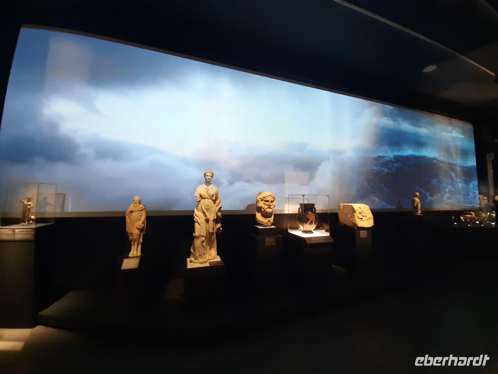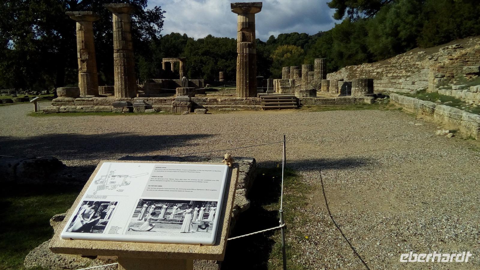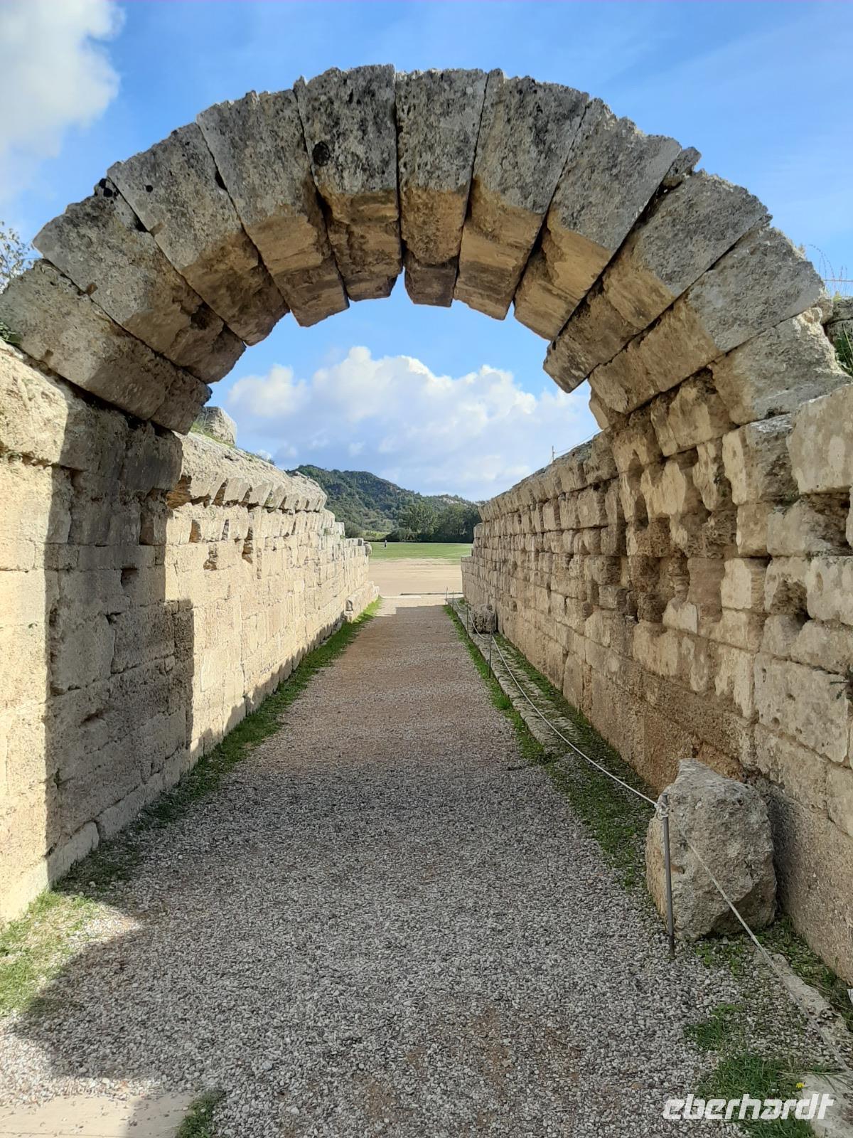 Die Zeit verging wie im Fluge und schon begann unser letzter Tag auf griechischem Boden. Wir fuhren nordwärts entlang der Westküste der Peloponnes-Halbinsel und erreichten schließlich Olympia, das sich im Nordwesten der Halbinsel Peloponnes befindet. Dort angekommen führte uns Anastasia durch die Ausgrabungsstätte, wo wir interessante Details über den einstige Austragungsort der Olympischen Spiele erfuhren. Wo einst die Olympischen Spiele zu Ehren des Zeus geboren wurden, wird die Geschichte nämlich auch heute noch lebendig und davon konnten wir uns wahrhaftig überzeugen. Noch heute wird auf dem Hera-Altar das olympische Feuer entzündet und beim Besuch des olympischen Stadions mussten wir feststellen, dass dieses noch um einiges spartanischer ausgestattet war als die heutigen Stadien. Abschließend führte uns Anastasia durch das benachbarte archäologische Museum. Eine Modelrekonstruktion der antiken Stätte ließ uns zunächst einen Eindruck bekommen, wie Olympia zu früheren Zeiten einmal ausgesehen hatte. Einige besonders interessante Funde sahen wir uns danach genauer an, vor allem beindruckten die Statuen der Giebelfelder des Zeus-Tempels sowie eine römisch-griechische Statue des Hermes. Nach diesem letzten Programmpunkt war es nun an der Zeit, sich offiziell und in einer angemessenen Form voneinander zu verabschieden und so wurde ein Sekt-Empfang mit Gebäck und kleinen Snacks vorbereitet. Ein großes Dankeschön ging hier vor allem an unsere sympathische und stets gut gelaunte Reiseleiterin Anastasia, die uns mit ihrem unglaublichen Wissen sowie ihren Geschichten der griechischen Mythologie begeisterte und der Reise einen zusätzlichen Mehrwert bescherte! Am frühen Nachmittag ging es schließlich weiter in die Hafenstadt Patras, wo wir uns nun auch von unseren Fluggästen verabschiedeten, die gemeinsam mit Anastasia in einem griechischen Minivan nach Athen zurück fuhren. Diese Gäste übernachteten heute in einem zentral gelegenen Hotel und flogen am Folgetag nach Deutschland zurück. Die anderen Gäste checkten an Bord der "Cruise Olympia" ein und diesmal legte das Schiff sogar recht pünktlich ab! Ein toller Sonnenuntergang und ein gutes Abendessen im Restaurant "Dionysus" auf Deck 10 rundeten diesen letzten Tag in Griechenland ab. Kurz vor Mitternacht legte das Schiff noch in Igoumenitsa an, um weitere unzählige Lastwagen für die Überfahrt nach Italien aufzunehmen.