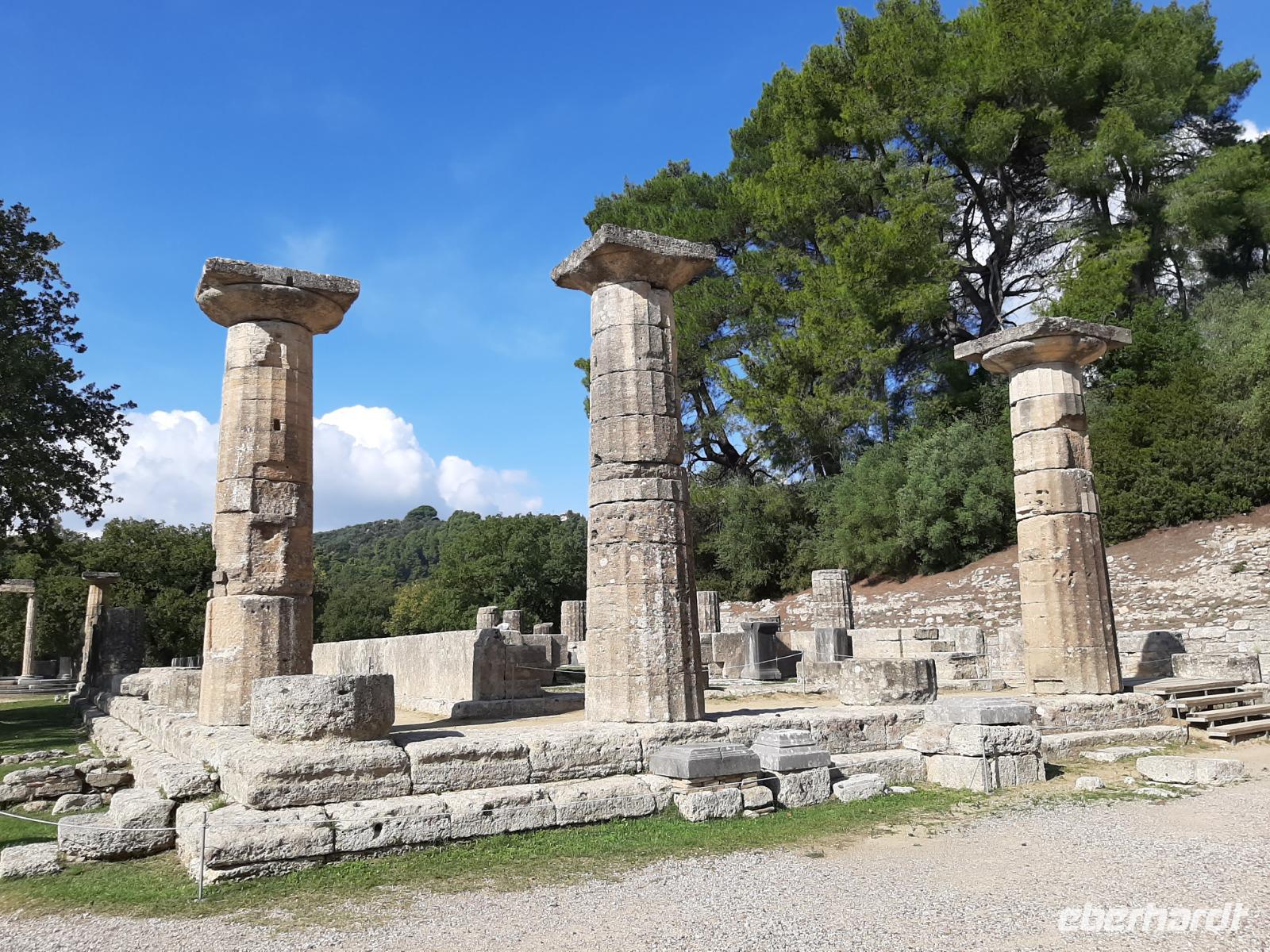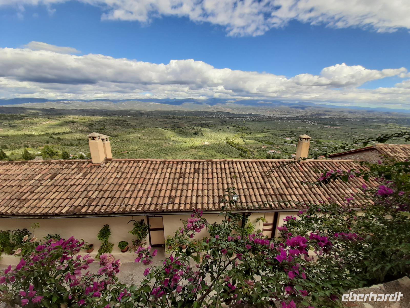 Bis zuletzt hatten wir Zweifel, können wir diese 16-tägige Busreise nach Griechenland überhaupt durchführen oder macht uns eine kurzfristige Reisewarnung des Auswärtigen Amtes einen Strich durch die Rechnung? Zu oft hatten wir dies in den letzten Wochen und Monaten aufgrund der Corona-Pandemie erlebt. Voller Vorfreude traf sich allerdings dann an diesem leider verregneten Morgen der erste Teil unserer kleinen Gruppe in Kesselsdorf, dem Firmensitz von Eberhardt TRAVEL. Erst jetzt glaubten wir fest daran, für die nächsten zwei Wochen in den sonnigen Süden zu entfliehen! Nachdem sich unser Reisebus nach und nach füllte und unsere Reisegruppe mit 12 Gästen vorerst komplett war, führte uns die Fahrt vorbei an Nürnberg, Ingolstadt und München in Richtung Inntal. Bereits gegen Mittag passierten wir die Innbrücke zwischen Kiefersfelden und Kufstein und damit auch die deutsch-österreichische Grenze. Die Route führte uns weiter entlang des Inns und vorbei an Innsbruck. Hier verließen wir das Inntal und es ging hinauf zum Brennerpass, den mit reichlich 1.300 Metern niedrigsten Übergang über die Hauptkette der Alpen und gleichzeitig österreichisch-italienische Grenzpass. Von nun an fuhren folgten wir dem Lauf des Eisack-Flusses hinunter bis zur Südtiroler Landeshauptstadt Bozen und weiter durch das reizvolle Etschtal in Richtung Süden. Später fuhren wir noch an Trient und Rovereto vorbei, bevor wir dann einen kompletten Landschaftswechsel erlebten und bei Verona in die weitläufige Po-Ebene eintraten. Etwa 15 Kilometer südlich von Verona inmitten der Ebene bezogen wir unsere gemütlichen Zimmer im familiengeführten Landhotel "Corte Castelletto" in Nogarole Rocca/Pradelle. Zum Abendessen ließen wir uns ein leckeres 3-Gang-Menü schmecken und natürlich durfte hier die typische italienische Pasta nicht fehlen! Dazu ein Glas Hauswein und die nötige Bettschwere trat allmählich ein.