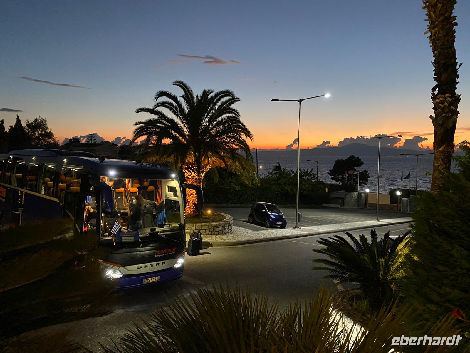 Aufbruchsstimmung lag in der Luft... Der letzte Tag unserer Traumreise brach an, wie schnell doch die letzten zwei Wochen vergingen... Wir erlebten sehr schöne Herbsttage mit viel Sonnenschein und angenehmen Temperaturen um die 20 Grad! Am Brennerpass erreichten wir übrigens heute den Kälterekord der gesamten Reise - unglaubliche 8 Grad! Daran mussten wir uns erstmal gewöhnen... Ohne jegliche Verzögerungen erreichten wir pünktlich gegen 19.30 Uhr den Eberhardt-Betriebshof, den Ausgangspunkt unserer Reise. Hier ging nunmehr eine tolle Reise mit phantastischen Eindrücken zu Ende und es gab trotz Corona keinerlei Einschränkungen für unseren Reiseablauf und dessen Umsetzung. Im Gegenteil, denn wir genossen den Vorteil fast überall fast allein bzw. ohne touristischer Massenansammlungen zu sein! Wir haben viel Neues gesehen und gehört und aufgrund amüsanter Gedächtnisstützen wird sicherlich noch einiges lange präsent bleiben. Neben all den interessanten kulturellen Stätten haben wir zudem Griechenland und seine Einwohner kennengelernt. Wir haben erfahren, was die Bevölkerung auch heutzutage beschäftigt, hervorragendes Essen probiert und vor allen Dingen einen wunderschönen Spätsommer genossen... und pünktlich zum nächsten Lockdown sind wir in Deutschland zurück - demzufolge alles richtig gemacht!