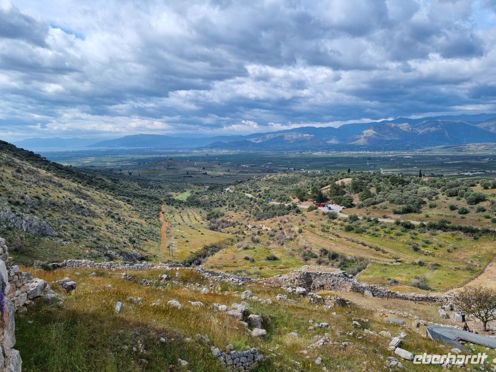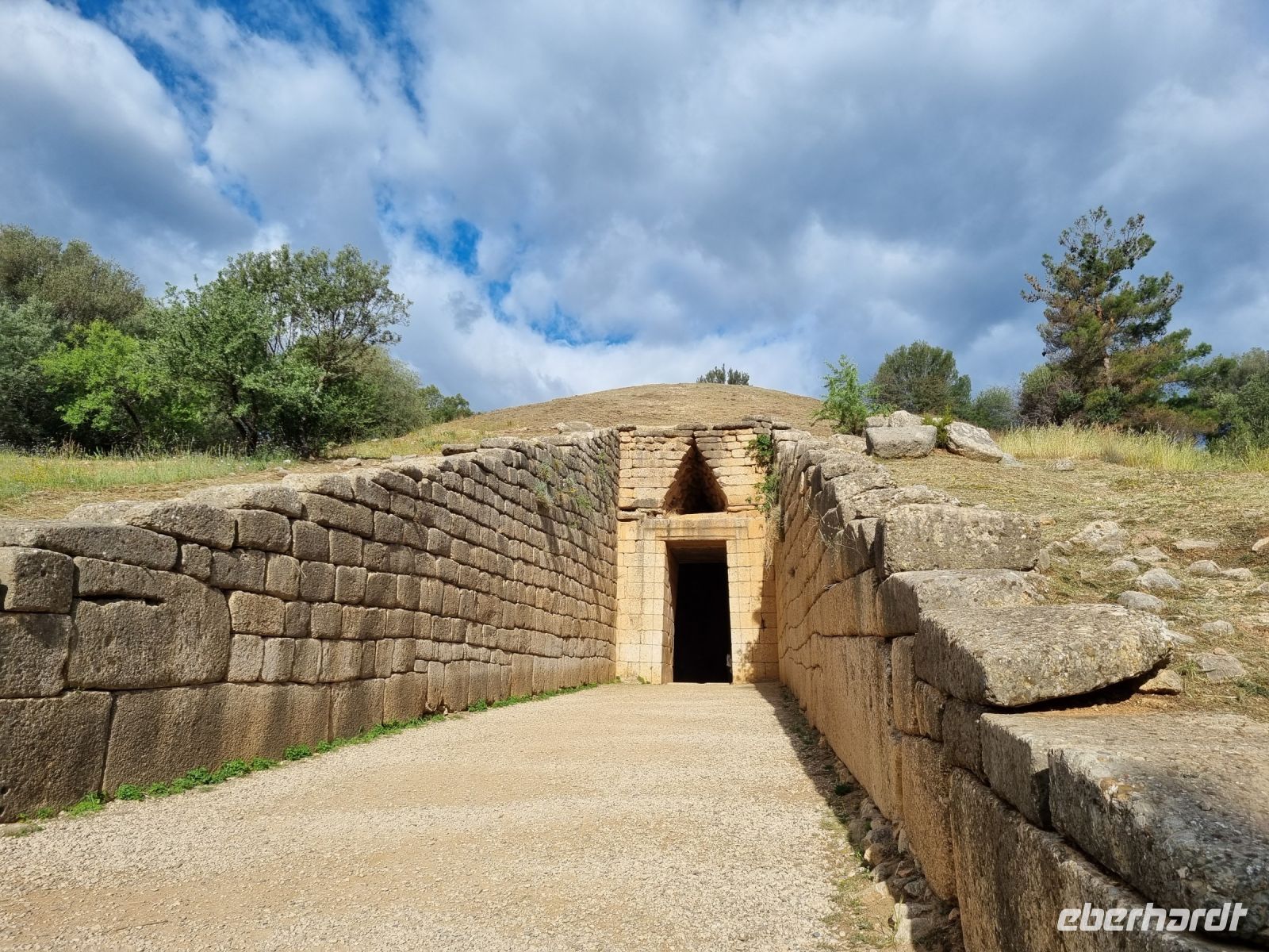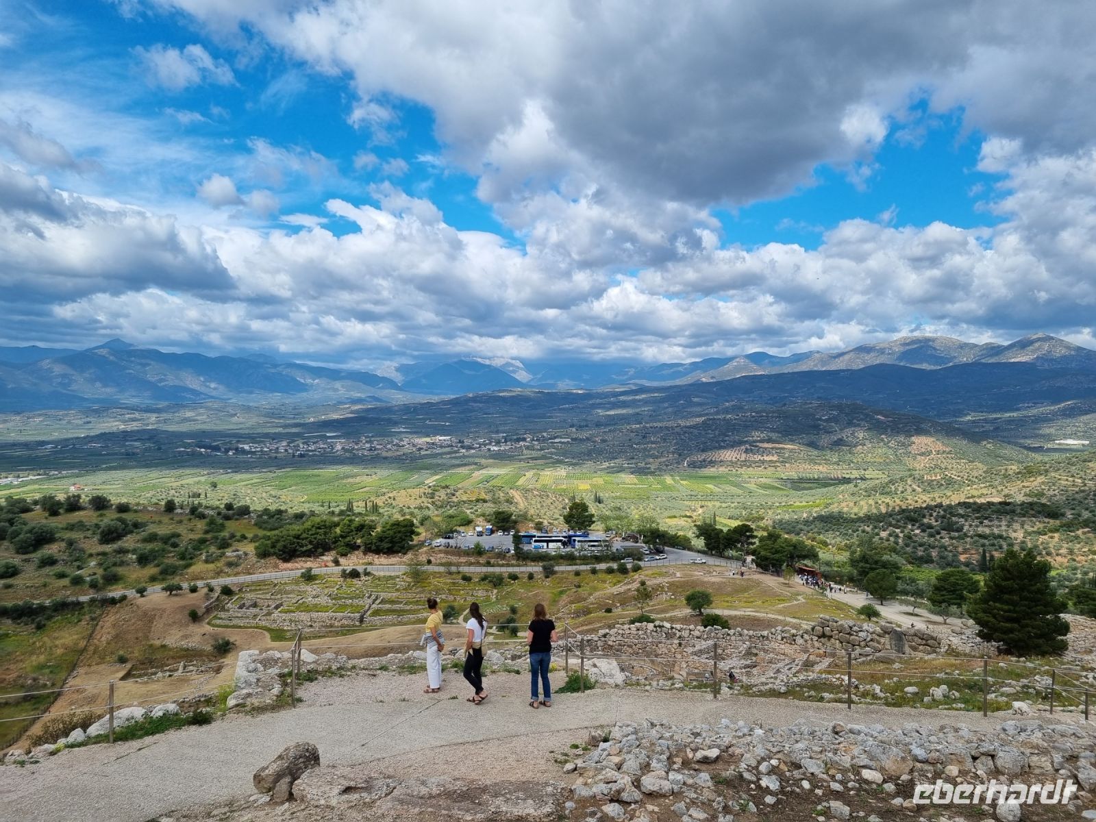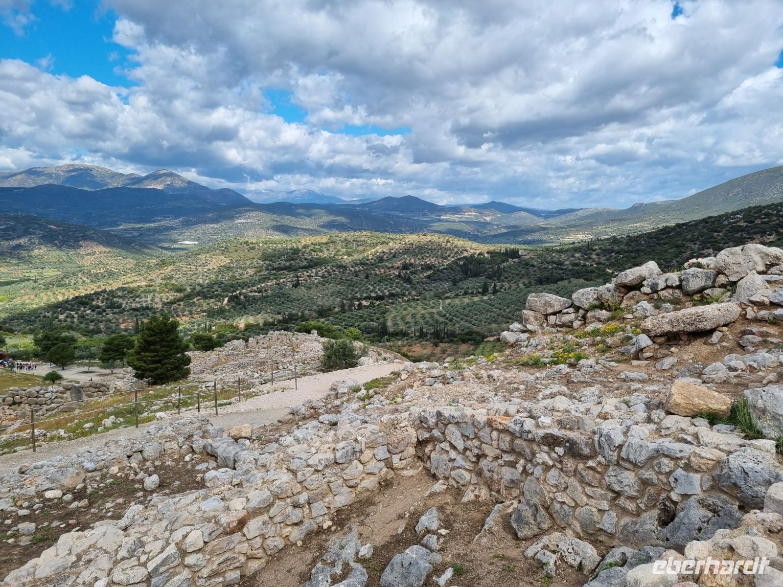 Auch heute erwarteten uns wieder wichtige antike Ausgrabungsstätten. Die Fahrt führte uns in südliche Richtung und vorbei am Weingebiet Nemea, wo überwiegend trockene Rotweine aus der Agiorgitiko-Traube gekeltert werden. Nach einer kurzweiligen Fahrt erreichten wir Mykene, die berühmte Heimatstadt des sagenumwobenen Königs Agamemnon. Sogar der bekannte deutsche Archäologe Heinrich Schliemann weilte auf der Suche der Grablege des antiken Herrschers Ende des 19. Jh.´s hier. Noch vor den Toren der Stadt besuchten wir zuerst das sogenannte "Schatzhaus des Atreus", doch in Wirklichkeit ist der riesige Tumulus eine Grabanlage. Wenig später betraten wir durch das berühmte "Löwentor" die antike Stadt Mykene und standen auch schon direkt vor den sogenannten Königsgräbern, wo Schliemann die berühmte Goldmaske des Agamemnon fand. Heute weiß man allerdings, dass die Maske, die sich heute im Nationalarchäologischen Museum in Athen befindet, aus einer früheren Ära stammt. Wer noch Ausdauer hatte, ging anschließend individuell hinauf zum Palast, zur ober- und unterirdischen Zisterne, sowie am zweiten Stadttor vorbei. Auch für einen Besuch des hiesigen kleinen Museums bot sich die Zeit und wer wollte, konnte so weitere interessante Informationen zur Geschichte der Gegend erhalten. Gegen Mittag erreichten wir Nauplia, die einstige Hauptstadt Griechenlands. Die Stadt liegt direkt am Argolischen Golf und besticht mit einem besonderen Charme. Wir flanierten durch die engen Gassen der Altstadt und über malerische Plätze. Schnell bemerkten wir die italienisch anmutende Atmosphäre, was sich besonders in der Architektur der Häuser widerspiegelte. Die mehrmalige venezianische Besatzung hatte eben deutliche Spuren hinterlassen...! Hier verbrachten wir auch unsere heutige Mittagspause in einer der zahlreichen Tavernen. Gut erholt machten wir uns schließlich weiter in Richtung Epidauros auf, um dort die Ausgrabungsstätte des Asklepios-Heiligtums zu besichtigen. Besonders beeindruckte uns dort allerdings das sehr gut erhaltene antike Theater, welches für etwa 12.000 Besucher Platz bietet und zudem eine hervorragende Akustik aufweist. Voller schöner Eindrücke ging es über die Küstenstraße mit einem grandiosen Fotostopp oberhalb von Alt-Epidaurus nach Vrachati zurück.