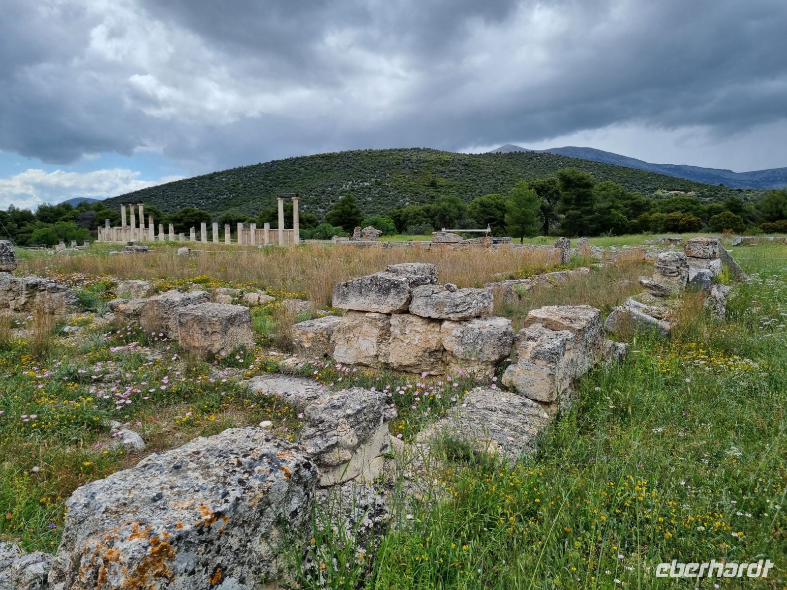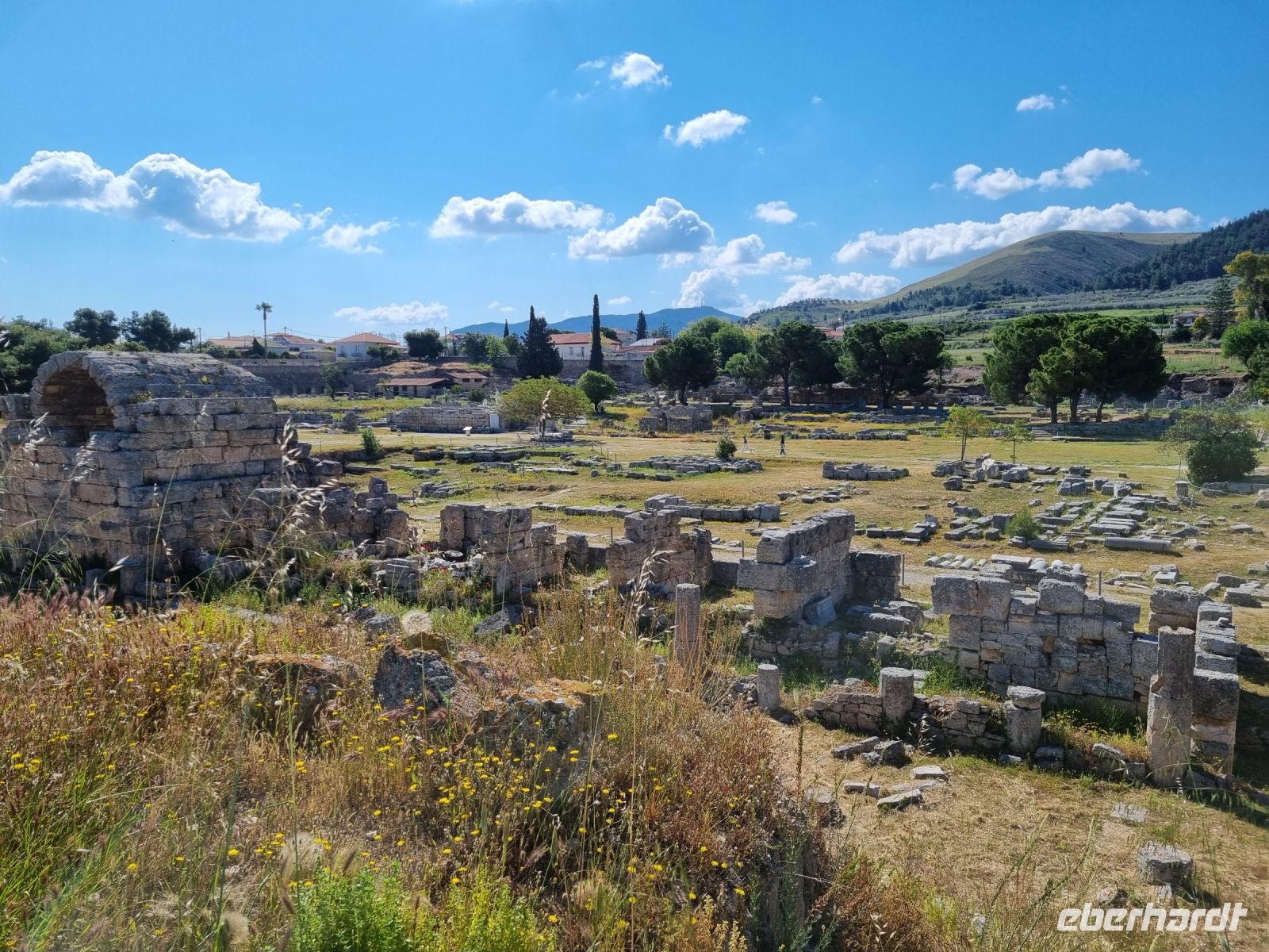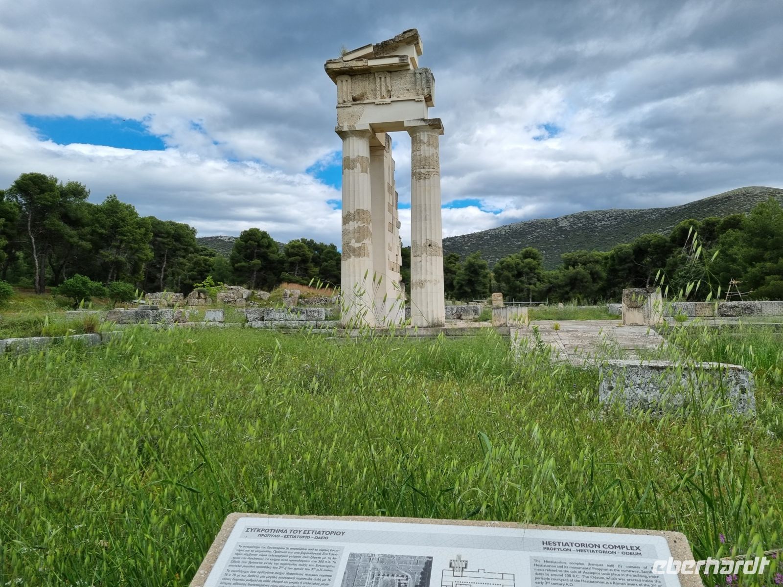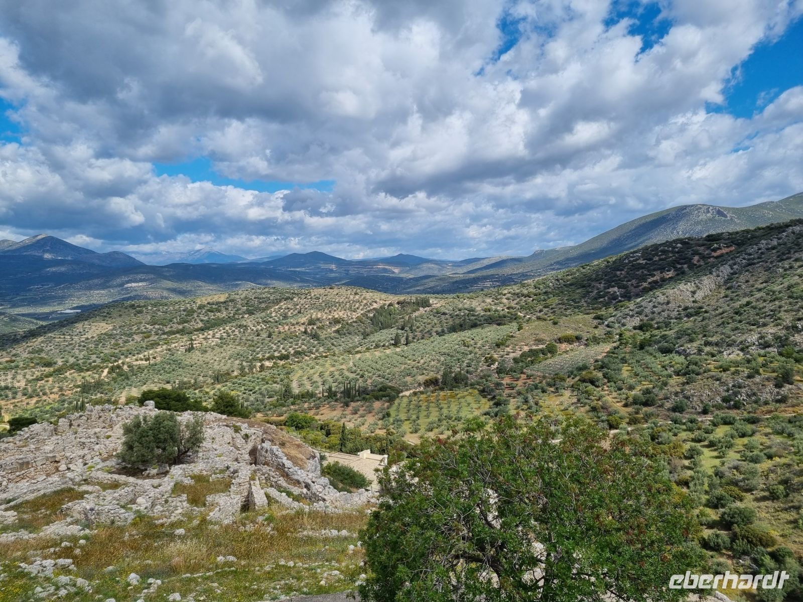Auch heute erwarteten uns wieder wichtige antike Ausgrabungsstätten. Die Fahrt führte uns in südliche Richtung und vorbei am Weingebiet Nemea, wo überwiegend trockene Rotweine aus der Agiorgitiko-Traube gekeltert werden. Nach einer kurzweiligen Fahrt erreichten wir Mykene, die berühmte Heimatstadt des sagenumwobenen Königs Agamemnon. Sogar der bekannte deutsche Archäologe Heinrich Schliemann weilte auf der Suche der Grablege des antiken Herrschers Ende des 19. Jh.´s hier. Noch vor den Toren der Stadt besuchten wir zuerst das sogenannte "Schatzhaus des Atreus", doch in Wirklichkeit ist der riesige Tumulus eine Grabanlage. Wenig später betraten wir durch das berühmte "Löwentor" die antike Stadt Mykene und standen auch schon direkt vor den sogenannten Königsgräbern, wo Schliemann die berühmte Goldmaske des Agamemnon fand. Heute weiß man allerdings, dass die Maske, die sich heute im Nationalarchäologischen Museum in Athen befindet, aus einer früheren Ära stammt. Wer noch Ausdauer hatte, ging anschließend individuell hinauf zum Palast, zur ober- und unterirdischen Zisterne, sowie am zweiten Stadttor vorbei. Auch für einen Besuch des hiesigen kleinen Museums bot sich die Zeit und wer wollte, konnte so weitere interessante Informationen zur Geschichte der Gegend erhalten. Gegen Mittag erreichten wir Nauplia, die einstige Hauptstadt Griechenlands. Die Stadt liegt direkt am Argolischen Golf und besticht mit einem besonderen Charme. Wir flanierten durch die engen Gassen der Altstadt und über malerische Plätze. Schnell bemerkten wir die italienisch anmutende Atmosphäre, was sich besonders in der Architektur der Häuser widerspiegelte. Die mehrmalige venezianische Besatzung hatte eben deutliche Spuren hinterlassen...! Hier verbrachten wir auch unsere heutige Mittagspause in einer der zahlreichen Tavernen. Gut erholt machten wir uns schließlich weiter in Richtung Epidauros auf, um dort die Ausgrabungsstätte des Asklepios-Heiligtums zu besichtigen. Besonders beeindruckte uns dort allerdings das sehr gut erhaltene antike Theater, welches für etwa 12.000 Besucher Platz bietet und zudem eine hervorragende Akustik aufweist. Voller schöner Eindrücke ging es über die Küstenstraße mit einem grandiosen Fotostopp oberhalb von Alt-Epidaurus nach Vrachati zurück.