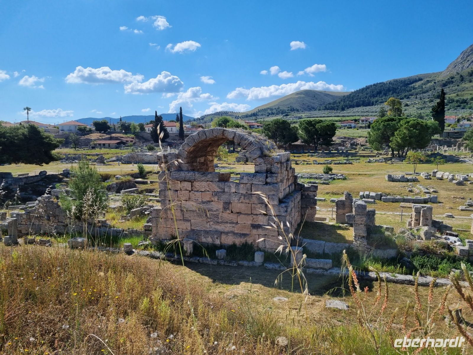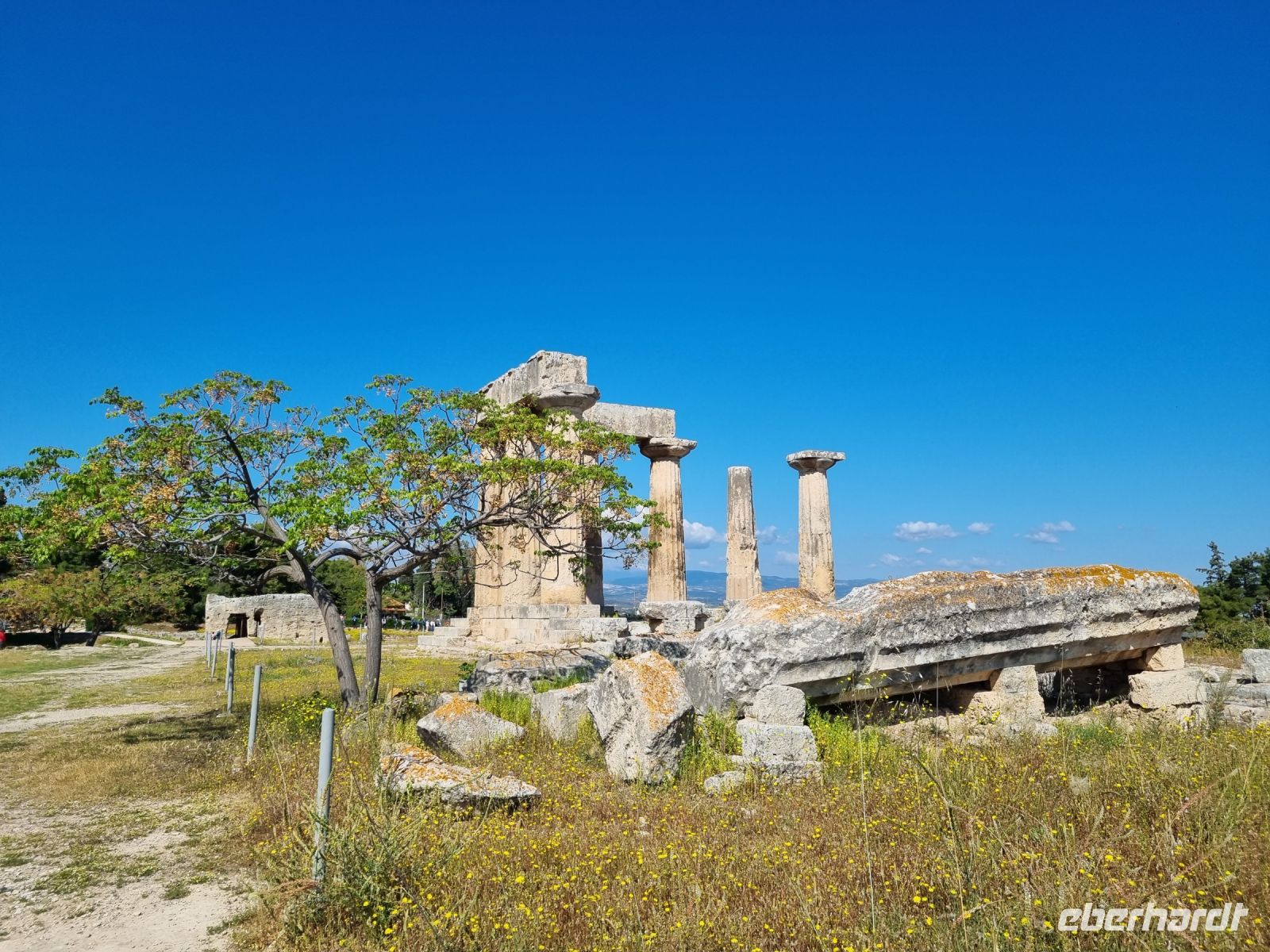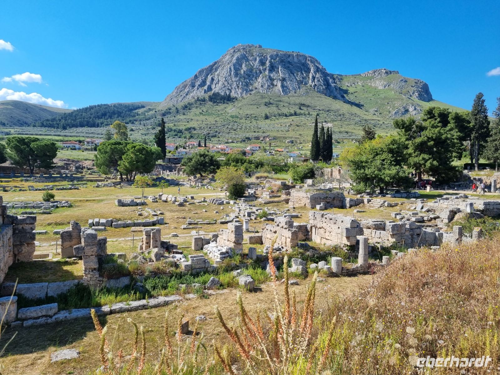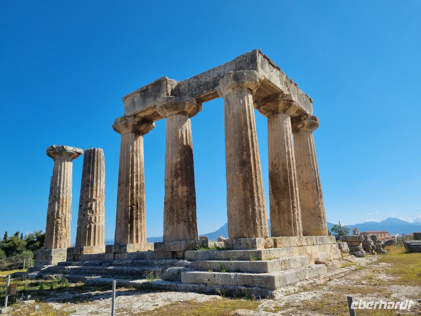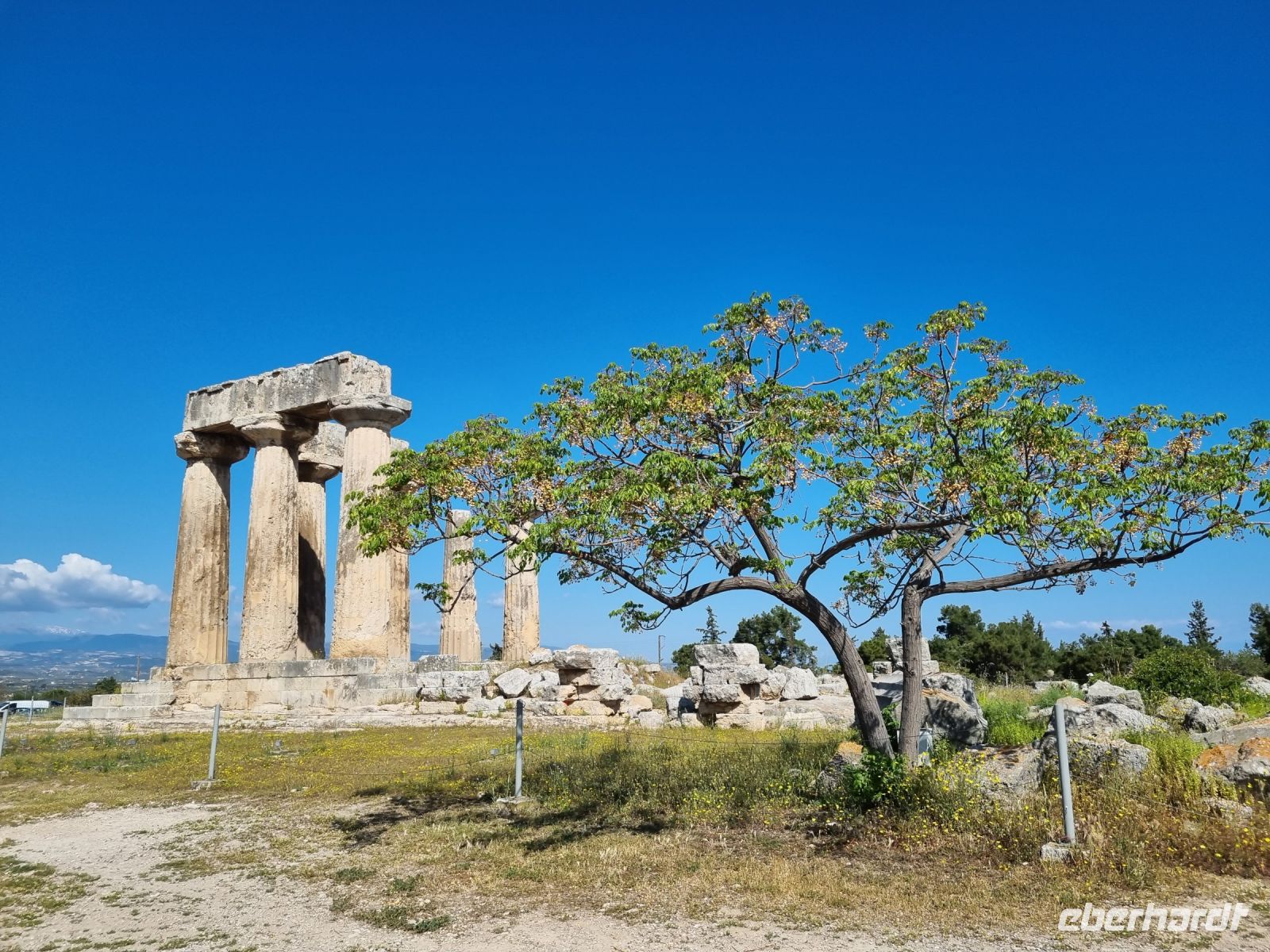 Einige wenige Gäste nutzten den heutigen Tag für individuelle Erkundungen in Vrachati. Der Strand lag schließlich nur wenige Schritte von unserem Hotel entfernt und auch der Pool lud zum Verweilen ein. Der Großteil unserer Reisegruppe hatte sich jedoch für den fakultativen Ausflug nach Alt-Korinth entschieden. Zuerst legten wir jedoch einen kurzen Fotostopp am Kanal von Korinth ein. Das Bild vom Kanal von Korinth ist einfach beeindruckend, denn steht man auf der Brücke, blickt man 75 Meter in die Tiefe in eine Schlucht, die wie mit einem glatten Messer in den Felsen geschnitten scheint. Unten ist ein etwa 24 Meter breiter Wasserweg, auf dem die Schiffe vom Golf von Korinth in den Saronischen Golf gelangen. Anschließend erreichten wir Alt-Korinth. Nur wenige Kilometer südwestlich von Korinth, am Rande und zwischen der heutigen unscheinbaren kleinen Siedlung von Alt Korinth (Palea Korinthos), liegen die Überreste des antiken Korinths. Dies war eine der größten und wichtigsten Städte bzw. ein wichtiger Stadtstaat des antiken Griechenlands. Direkt vor dem mächtigen Berg von Akrokorinth, war sein Standort strategisch und wirtschaftlich wichtig, da er die Schlüsselposition der Landenge kontrollierte und das wichtigste Handelszentrum der Antike war. Die Ruinen des Apollontempels mit seinen noch sieben erhaltenen minoischen Säulen, sowie die Überreste der kompletten Stadtanlage (Theater, öffentliche Einrichtungen, Agora, Straßen etc.) des antiken Korinths haben uns tief beeindruckt... Nun ging es zum gemütlichen Teil des Tages über... Wir fuhren nach Nemea weiter, um dort das Weingut "Bairaktaris" zu besuchen, wo wir sehr herzlich empfangen wurden. Wir erlebten eine spannende Führung mit Informationen über die Herstellung und Lagerung der Weine und auch die Verkostung von vier tollen Weinen durfte dabei nicht fehlen! In diesem Sinne "Jámas!".
