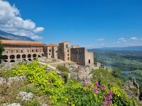 Heute hieß es wieder einmal Kofferladen, denn wir verließen unser Resort-Hotel in Vrachati, um noch ein wenig weiter in den Süden der Halbinsel Peloponnes vorzudringen. Wir durchfuhren die berühmten Landschaften Arkadiens und Lakoniens am Rande des Taygetos-Gebirges. Bereits am späten Vormittag erreichten wir die sagenumwobene Stadt Sparta, allerdings zeugt in der neuzeitlichen Hauptstadt Lakoniens kaum noch etwas von der großartigen antiken Vergangenheit. So führte uns unser Weg schnell weiter in die mittelalterliche Nachfolgesiedlung Spartas, nach Mystras. Strategisch viel besser, am Hang des Taygetos-Gebirges gelegen, wurde diese Stadt im 13. Jh. unter dem fränkischen Grafen William II. von Villehardouin erbaut. Wir besichtigten die byzantinische Ruinenstadt vom oberen Burgtor aus und stiegen langsam den steilen Treppenpfad hinab. Dabei besichtigen wir die Kirchen Agia Sophia und Agios Nikolaos sowie den Despotenpalast. Anschließend besuchten wir das Pantanassas Kloster, das heute von sechs Nonnen bewohnt wird, welche seit der Neugründung Spartas immerhin die einzigen Bewohnerinnen der verlassenen Stadt sind. Am Ende der Besichtigung sahen wir die Metropolis, die ehemalige Hauptkirche der Stadt, wo wir uns schließlich noch ein kleines Museum ansehen konnten. Die wohlverdiente Mittagspause verbrachten wir im urigen Garten einer authentischen Taverne direkt im Stadtzentrum von Sparta, wo wir weitere Köstlichkeiten der griechischen Küche probierten. Um weitere nach Kalamata zu gelangen, nahmen wir anschließend die Autobahn, denn die landschaftlich sehr reizvolle Strecke über das Taygetos-Gebirge, wo der höchste Punkt der Straße immerhin bei etwa 1.400 m ü. d. M. liegt, ist leider seit Monaten für Busse gesperrt. Letztendlich erreichten wir am frühen Abend unser Hotel "Akti Taygetos Resort" in Kalamata. An diesem letzten gemeinsamen Abend auf griechischem Boden war es nun aber auch an der Zeit, sich offiziell und in einer angemessenen Form voneinander zu verabschieden und so wurde kurzerhand ein Sekt-Empfang veranstaltet. Ein großes Dankeschön ging hier vor allem an unsere sympathische und stets gut gelaunte Reiseleiterin Anastasia, die uns mit ihrem unglaublichen Wissen sowie ihren Geschichten der griechischen Mythologie begeisterte und der Reise einen zusätzlichen Mehrwert bescherte!