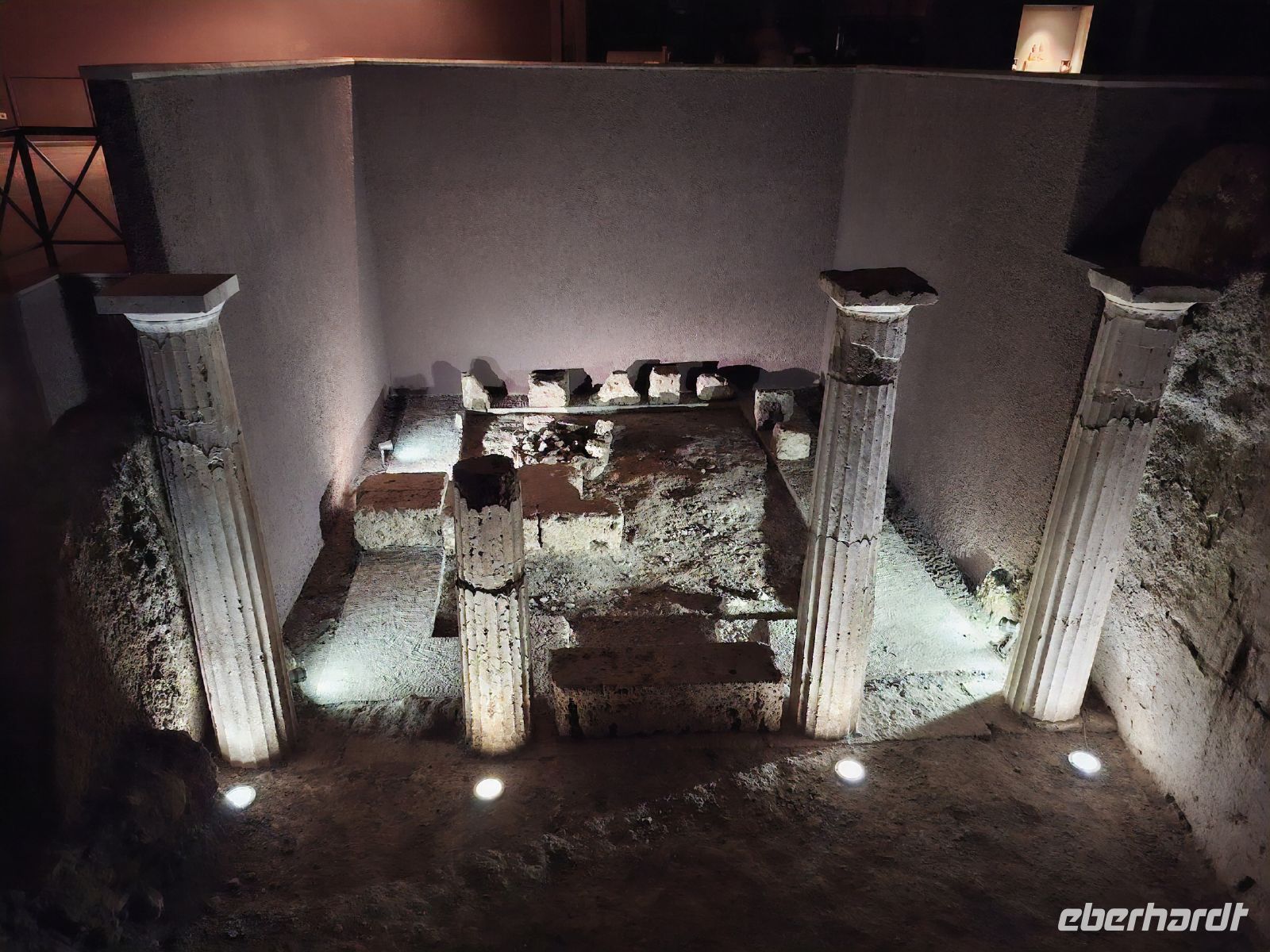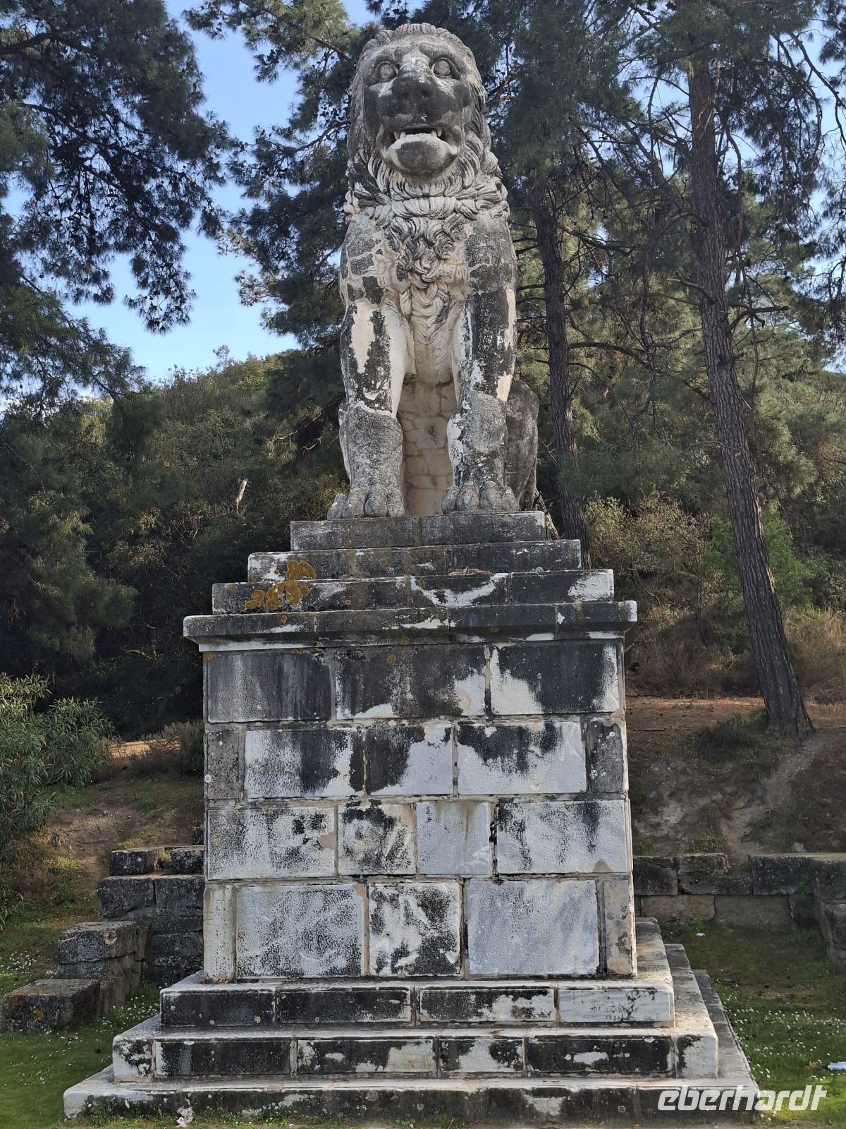 Heute führte uns unsere Reise gen Osten durch die fruchtbare Kleine Makedonische Ebene, vorbei am Kleinen und Großen See. Gedanklich begleitete uns dabei Philipp II. Unsere Reiseleiterin Anastasia verkürzte die Fahrt mit unterhaltsamen Einblicken in den griechischen Alltag und mit ersten Ausführungen zur umfangreichen Geschichte Griechenlands. Unterwegs legten wir einen ersten kurzen Stopp in einer Konditorei ein, wo wir zahlreiche süße Spezialitäten probieren konnten. Es fiel schwer, den vielen Versuchungen zu widerstehen – so wanderte schließlich die ein oder andere Leckerei in unsere Taschen. Besonders überzeugten die Kourabiedes, ein traditionelles, vor allem zur Weihnachtszeit beliebtes Mandelgebäck. Anschließend besuchten wir die Ausgrabungsstätte von Philippi. Die bereits im 4. Jahrhundert v. Chr. gegründete Stadt erhielt ihren Namen nach der Eroberung durch Philipp II. Einst ein bedeutendes Handelszentrum, zählt sie heute zu den wichtigsten römischen Ausgrabungsstätten und gilt als Ort der ersten christlichen Gemeindegründung Europas durch den Apostel Paulus von Tarsus. Auf den Spuren der frühen Christen ging es weiter zum sogenannten Taufbecken der Lydia von Thyatira, der ersten auf europäischem Boden getauften Christin. Am frühen Nachmittag erreichten wir die Hafenstadt Kavala, wo wir unsere Mittagspause verbrachten und uns in einer der zahlreichen Tavernen stärkten. Die Stadt wurde einst von Siedlern der Insel Thasos als Neapolis gegründet und in byzantinischer Zeit in Christoupolis umbenannt. Ihren heutigen Namen verdankt sie ihrer Funktion als bedeutende Poststation entlang der Via Egnatia, wo einst die Pferde gewechselt wurden (italienisch cavallo). Die bewegte Geschichte Kavalas spiegelt sich bis heute in ihrer Architektur wider – besonders beeindruckend sind das osmanische Aquädukt aus dem 16. Jahrhundert sowie die Zitadelle aus der venezianischen Zeit im 15. Jahrhundert. Auf dem Rückweg machten wir schließlich noch Halt in Amphipolis, um das berühmte Löwendenkmal zu besichtigen. Die über vier Meter hohe Statue aus dem 4. Jahrhundert v. Chr. war einst Teil eines monumentalen Grabmals, dessen ursprüngliche Größe heute nur noch zu erahnen ist.