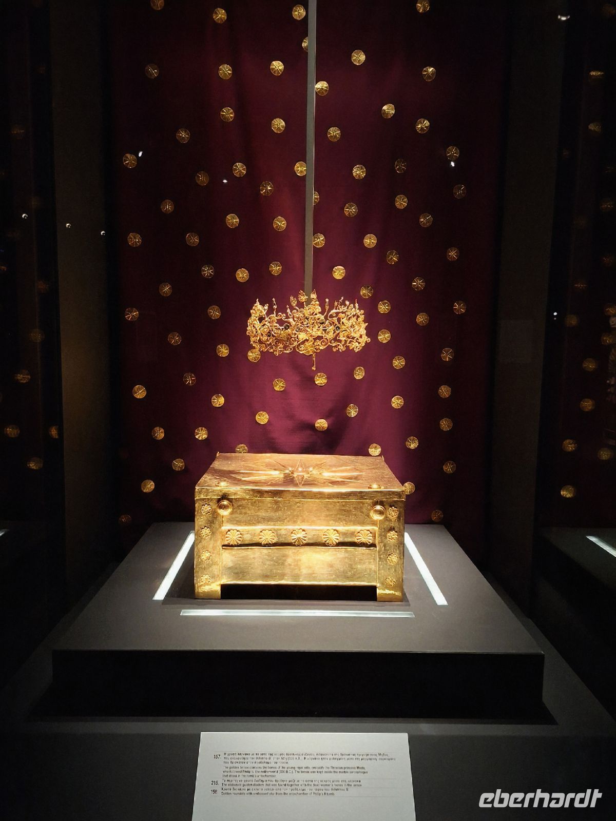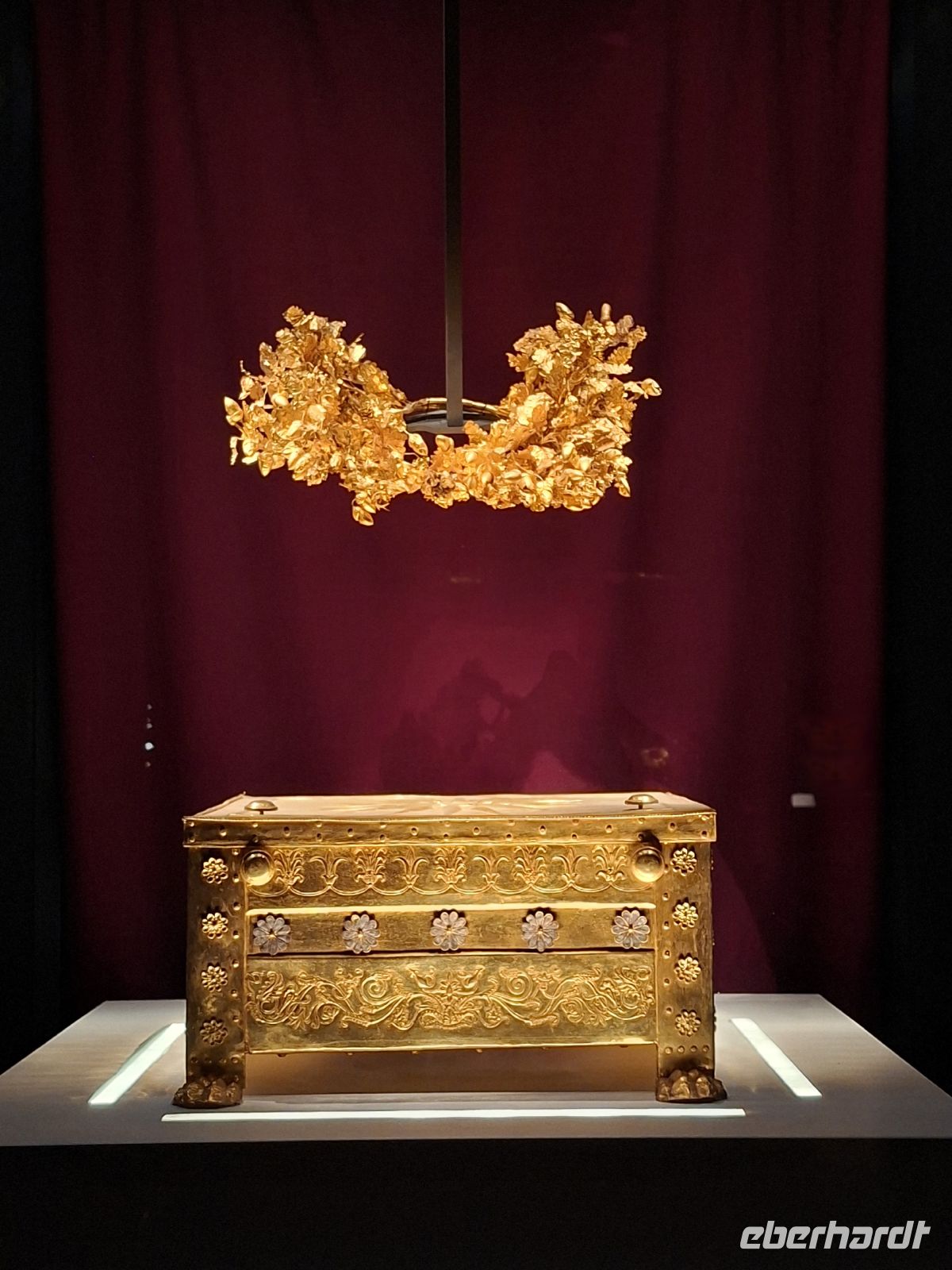 Heute hieß es Abschied nehmen von Thessaloniki, denn unsere Weiterreise führte uns erneut durch die weite makedonische Ebene. Vorbei an zahlreichen Reisfeldern erreichten wir schließlich Vergina, die einstige Hauptstadt Makedoniens. Dieser Ort zählt zu den bedeutendsten archäologischen Stätten Nordgriechenlands, da er über Jahrhunderte hinweg als Begräbnisstätte der makedonischen Könige diente. Insgesamt wurden hier neun Königsgräber entdeckt – darunter auch das unberaubte Grab von Philipp II. Heute können diese beeindruckenden Funde direkt an ihrem ursprünglichen Ort besichtigt werden, geschützt unter einem gewaltigen Grabhügel, der ein Museum beherbergt. In der bewusst gedämpften, nahezu mystischen Dunkelheit waren wir tief beeindruckt von den kostbaren Gold- und Silberschätzen, die dort ausgestellt sind. Gegen Mittag setzten wir unsere Fahrt in Richtung Süden fort – begleitet von anhaltendem Regen, der uns den gesamten Weg über nicht mehr verließ. Vom schneebedeckten Gipfel des Olymp war an diesem Tag leider nichts zu sehen; nicht einmal schemenhaft ließ sich der mit über 2.900 Metern höchste Berg Griechenlands am Horizont erahnen. Dennoch verstand es Anastasia, uns mit ihren lebendigen und oft humorvollen Geschichten über die griechischen Götter bestens zu unterhalten und trotz des Schmuddelwetters bei einigen von uns die Vorfreude auf die geplante Wanderung zu wecken. Ausgangspunkt war das charmante Bergdorf Litochoro, von wo aus sich einige Gäste auf den Weg in die beeindruckende Enipeas-Schlucht machten. Die Wanderung erinnerte ein wenig an eine Levada-Tour und führte durch eine reizvolle, nahezu unberührte Landschaft. Unter anderen Umständen wäre dies zweifellos ein echtes Highlight gewesen – doch leider zeigte sich der Wettergott an diesem Tag wenig gnädig. Auf der Weiterfahrt durch die Thessalische Ebene – nicht umsonst als „Kornkammer“ des Landes bekannt – in Richtung Kalambaka lauschten wir weiterhin gebannt den unterhaltsamen Geschichten aus der griechischen Mythologie. Dabei schien es fast, als seien die Hauptfiguren ausnahmslos „wunderschön“, und nicht selten spielten sich ihre Abenteuer auf idyllischen grünen Wiesen voller „hübscher Blümchen“ ab. Es war ein echtes Vergnügen, Anastasias lebendigen Erzählungen zuzuhören. Am frühen Abend erreichten wir schließlich unser stilvolles Hotel „Meteora“ in Kalambaka, direkt am Fuße der imposanten Meteora-Klöster. Dort ließen wir den Tag bei einem ausgezeichneten Abendessen in angenehmer Atmosphäre ausklingen.
