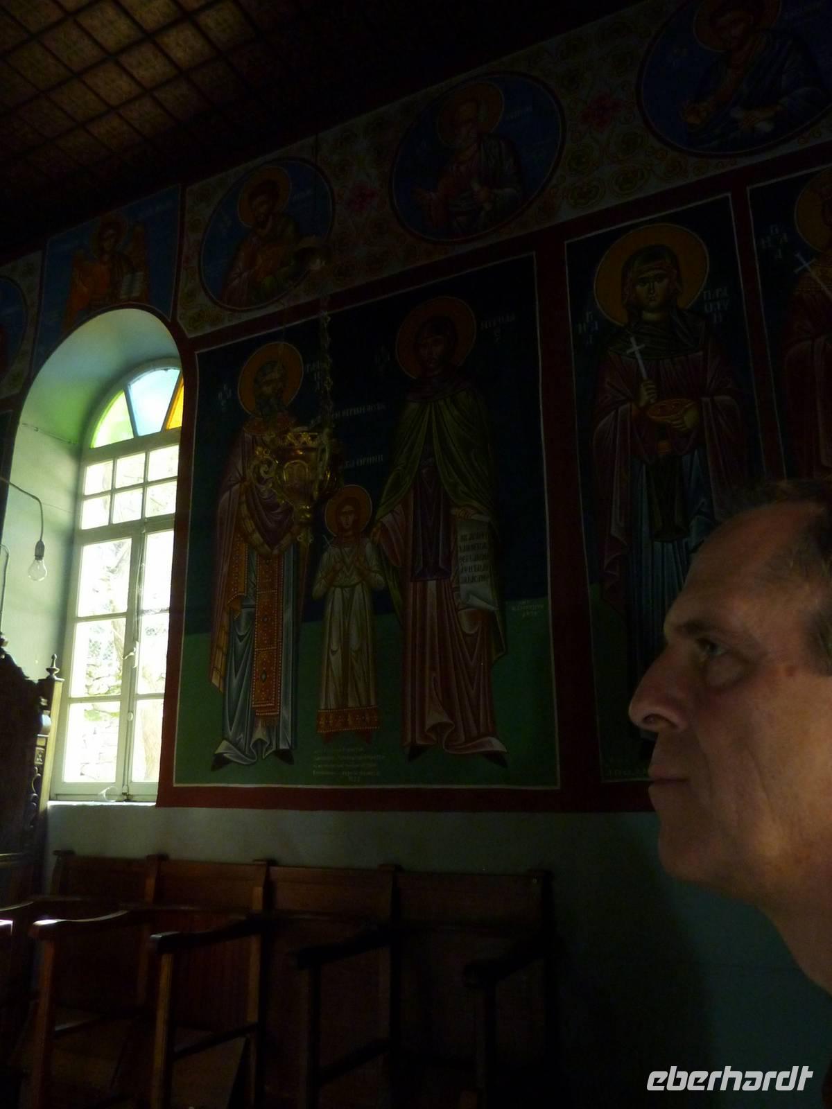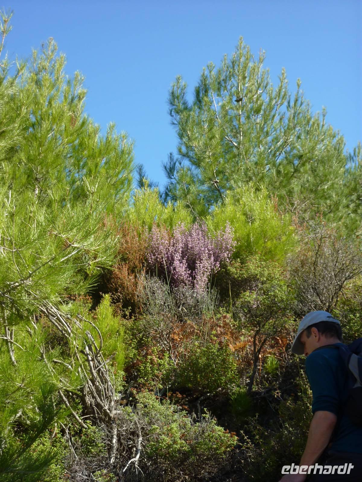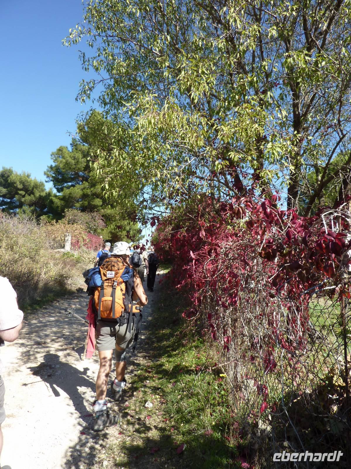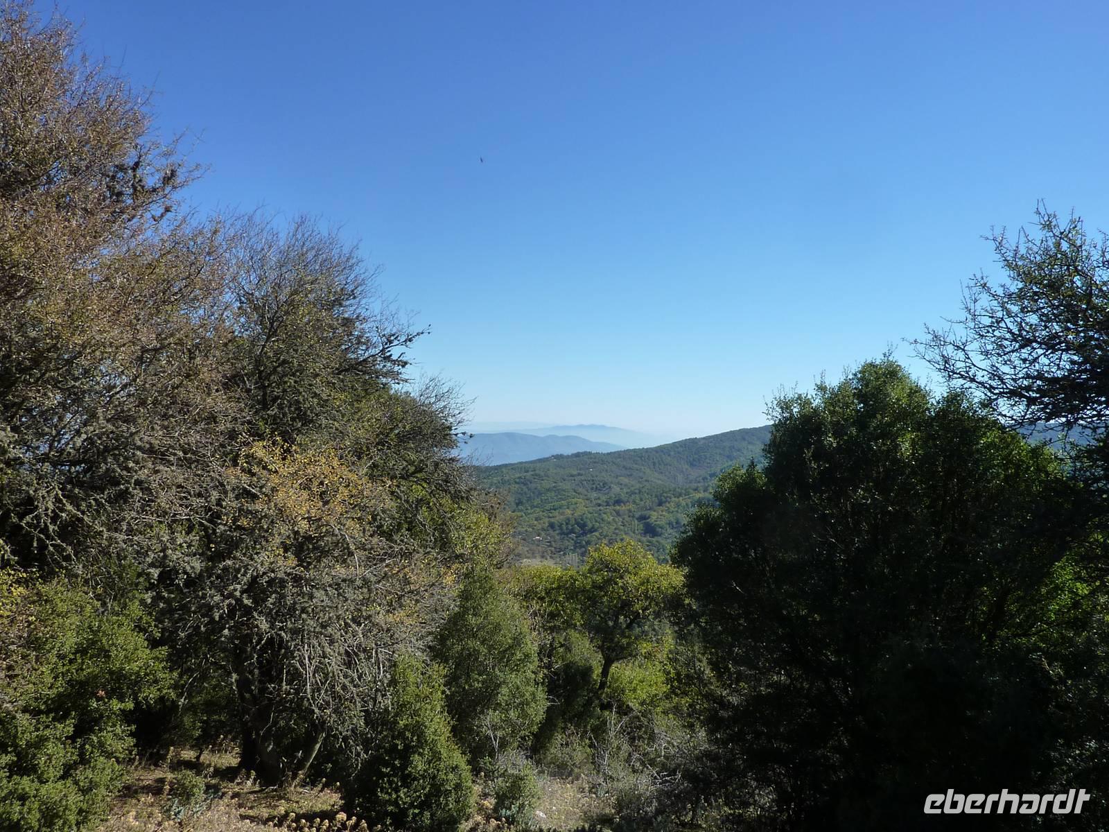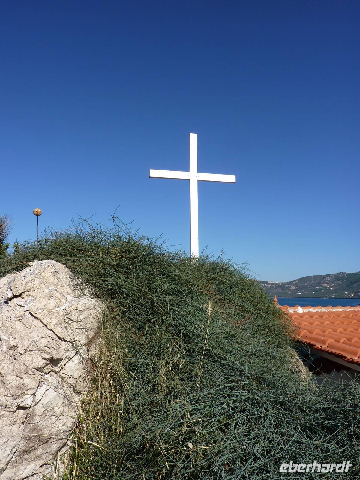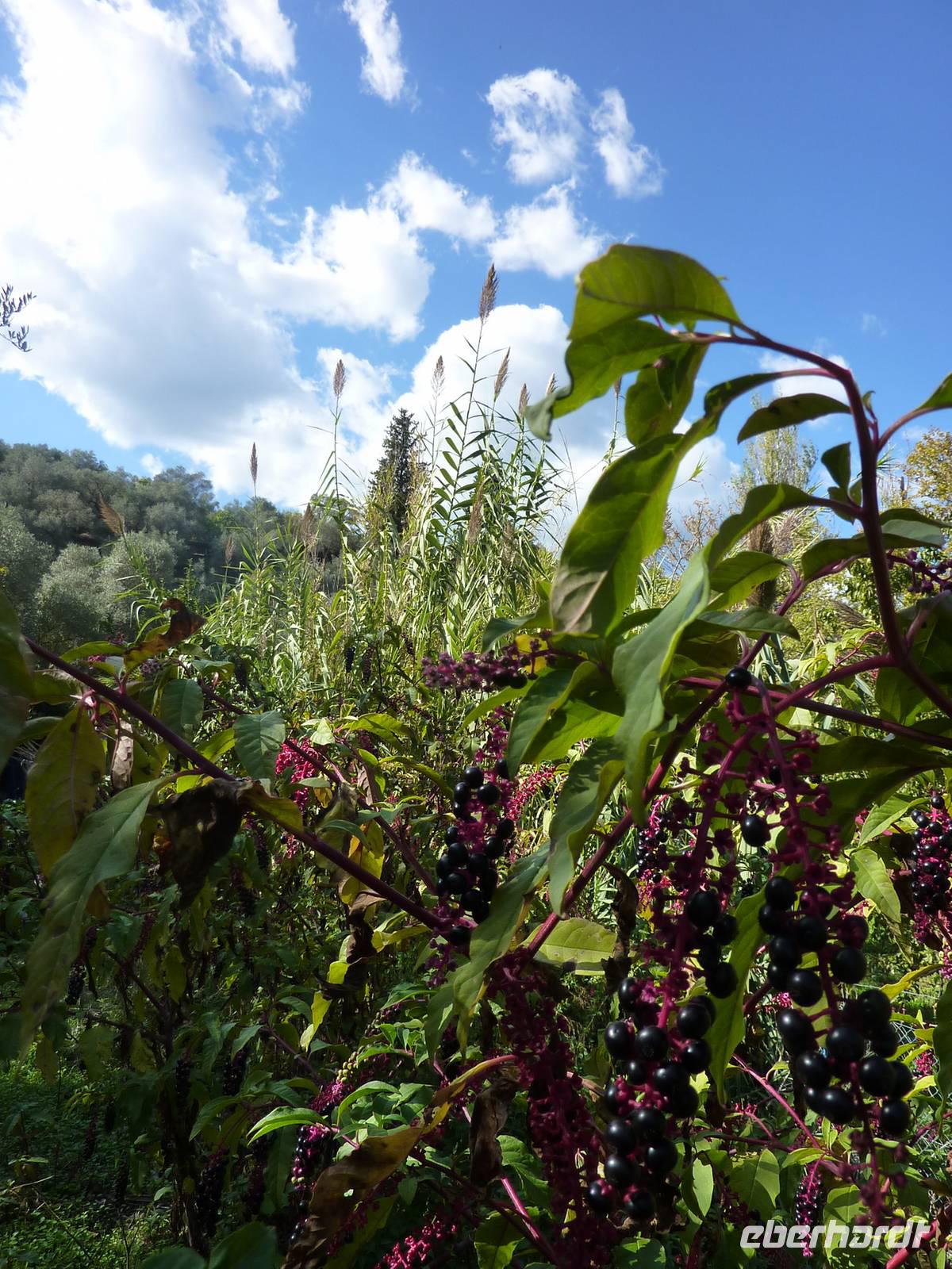 Ganz gemütlich gingen wir den Tag an, schließlich wollten unsere Gäste sich ja erholen. Um 08.30 Uhr gab es auf der Frühstücksterrasse (open-air) eine Stärkung mit Brot, Eier, Schafskäse, Schnittkäse, Wurst, Oliven, Tomaten, Gurke, frisch gepressten Orangensaft, Kaffee und/oder Tee. Eva und ich hatten uns am Morgen im Internet die Wetterkarte angesehen, naja nicht so grandios und die ganze Nacht hatte es reichlich geregnet. Wir besprachen uns und beschlossen, die geplante Wanderung den Witterungsbedingungen ein wenig anzupassen. Regensachen wurden in den Rucksack gepackt für den Fall der Fälle und so brachen wir um 10.00 Uhr zu unserer ersten Wanderung auf. Der Himmel war wolkenverhangen, aber es war angenehm warm und wir in Wanderlaune. Unser Bus brachte uns zunächst zu unserem Ausgangspunkt der Wanderung, einem netten Rastplatz. Hier konnten wir uns mit frischem Obst oder Trockenfrüchten als Wegzehrung eindecken. Ganz gemütlich, ganz siga, siga (langsam, langsam) wie Eva uns immer wieder in den nächsten Tagen auffordern würde, wanderten wir nun los. Das mit dem „siga, siga" mussten wir allerdings erst noch lernen, denn irgendwie waren wir von unserem Alltag noch ganz schön gehetzt. Unsere Sinne mussten sich erst noch öffnen und schärfen. Über alte Karrenwege, leicht bergan, vorbei an unzähligen Oliven-, Feigenbäumen, Platanen und Pinien erreichten wir schließlich das noch sehr traditionsreiche Bergstädtchen Agiasos auf immerhin 700 Metern über dem Meeresspiegel, das sich malerisch an die Hänge des Olymposgebirges schmiegt. Schmale, gepflasterte Gassen mit zahlreichen Cafenions und Tavernen zeichnen diesen Ort gleichermaßen aus, wie deren berühmte Keramikkunst. Wir besichtigen zunächst die Kirche, bevor wir bei einem griechischen Kaffee und den Leckereien aus der Bäckerei gegenüber eine Rast einlegen. Eva liest dazu aus dem Buch von Eva Demski, die darin Ihre Liebe zu dieser Insel beschreibt, z.B. die Form der Insel mit der eines Platanenblattes vergleicht und uns auffordert „mit den Füßen einer Bergziege und dem furchtlosen Herzen eines Wanderfalken" das Inselinnere zu erobern. Wir lauschen Eva dabei ganz gespannt zu, und ganz allmählich gelingt es uns, die Gelassenheit und Ruhe der Menschen dieser Insel auch in uns aufzunehmen. In unserer Freizeit lassen wir das Flair der Gassen auf uns wirken, mit den Häusern deren vorspringende Obergeschosse, bekannt als sachnisia, und hölzerne Balkone mit Blumentöpfen von Begonien, Nelken und Geranien uns verzaubern. Schließlich erwartet uns wieder unser Chauffeur und fährt uns sicher über die engen Bergstraßen zurück in unser Hotel. Das Abendessen lassen wir uns wiederum in der Taverne nahe unseres Hotels servieren. Moussaka wurde heute von Eva bestellt, ein ganz typisches Gericht, bei dem Lammhack und Auberginen geschichtet und mit Schafskäse überbacken wird. Einfach lecker.. Zum Verdauen abermals ein Ouzo hinterher, das hilft.
