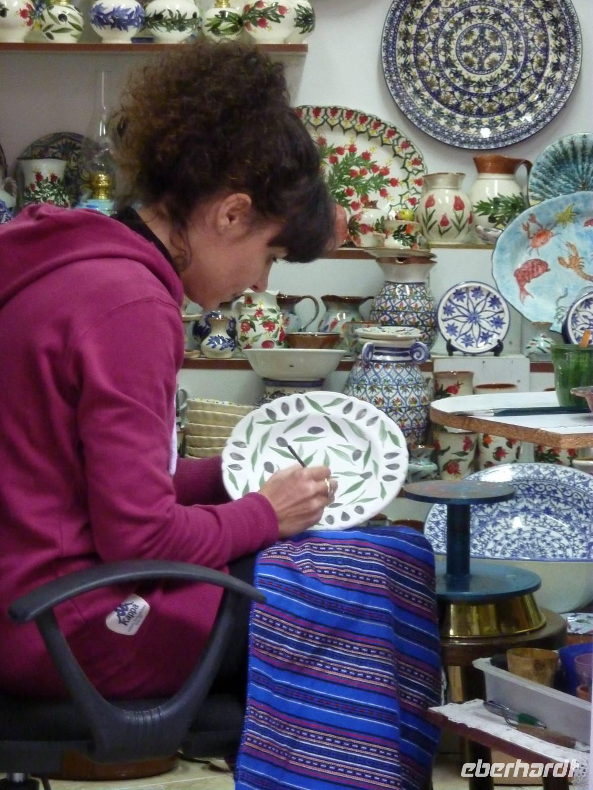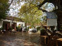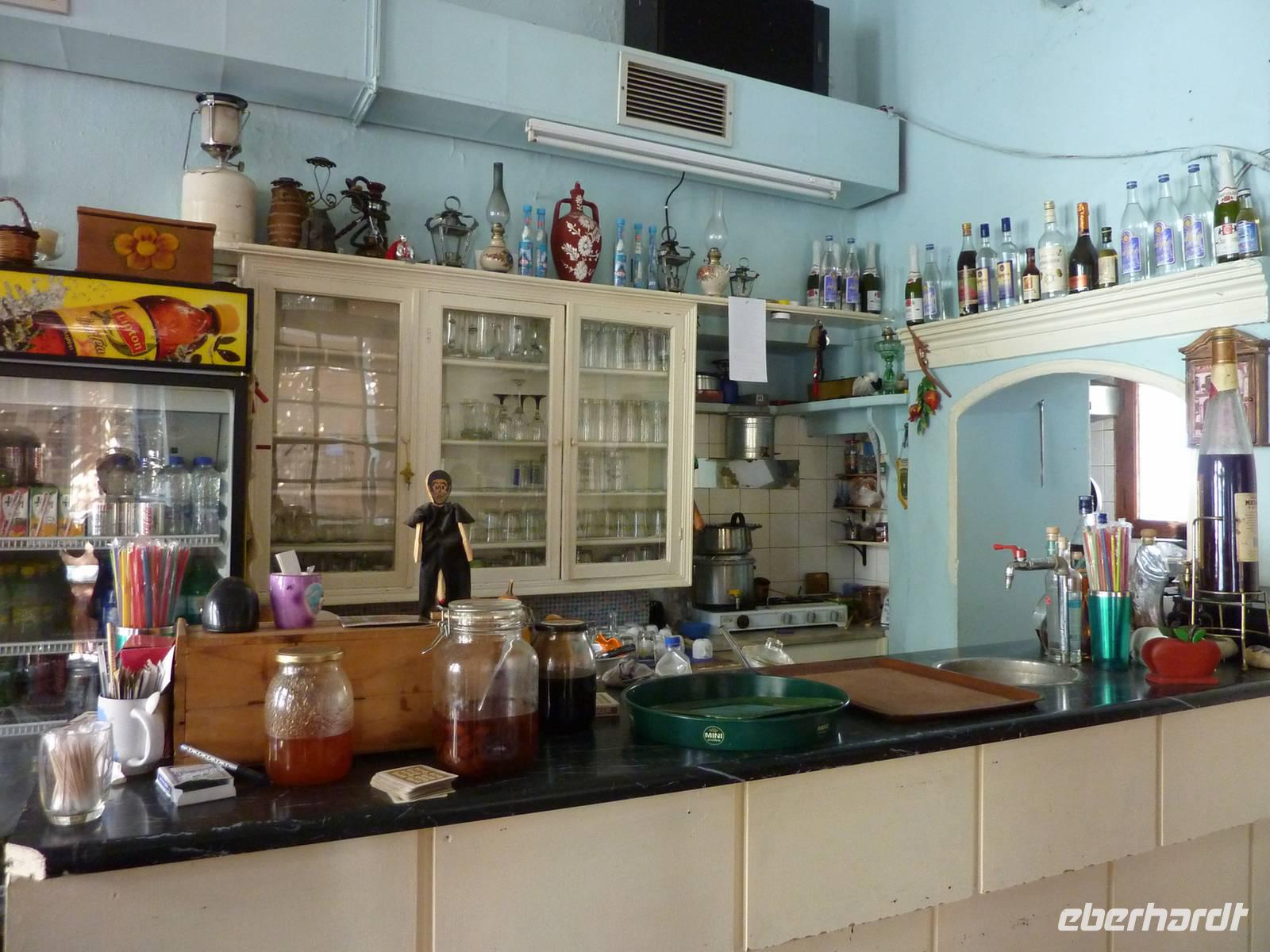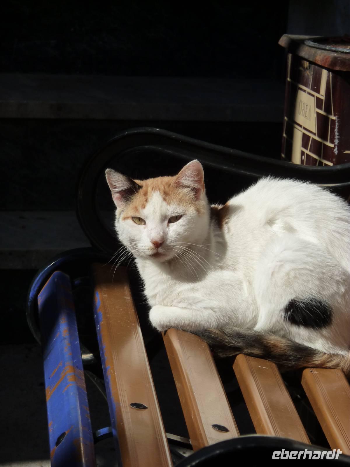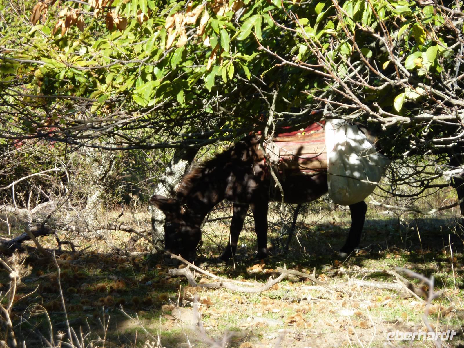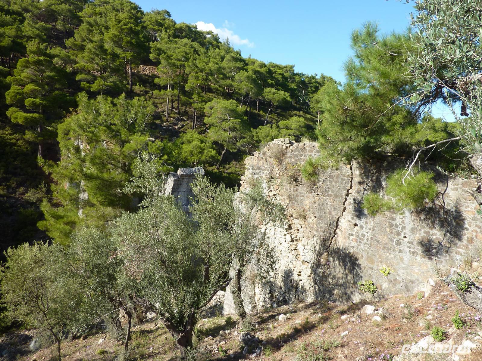 Ganz gemütlich gingen wir den Tag an, schließlich wollten unsere Gäste sich ja erholen. Um 08.30 Uhr gab es auf der Frühstücksterrasse (open-air) eine Stärkung mit Brot, Eier, Schafskäse, Schnittkäse, Wurst, Oliven, Tomaten, Gurke, frisch gepressten Orangensaft, Kaffee und/oder Tee. Eva und ich hatten uns am Morgen im Internet die Wetterkarte angesehen, naja nicht so grandios und die ganze Nacht hatte es reichlich geregnet. Wir besprachen uns und beschlossen, die geplante Wanderung den Witterungsbedingungen ein wenig anzupassen. Regensachen wurden in den Rucksack gepackt für den Fall der Fälle und so brachen wir um 10.00 Uhr zu unserer ersten Wanderung auf. Der Himmel war wolkenverhangen, aber es war angenehm warm und wir in Wanderlaune. Unser Bus brachte uns zunächst zu unserem Ausgangspunkt der Wanderung, einem netten Rastplatz. Hier konnten wir uns mit frischem Obst oder Trockenfrüchten als Wegzehrung eindecken. Ganz gemütlich, ganz siga, siga (langsam, langsam) wie Eva uns immer wieder in den nächsten Tagen auffordern würde, wanderten wir nun los. Das mit dem „siga, siga" mussten wir allerdings erst noch lernen, denn irgendwie waren wir von unserem Alltag noch ganz schön gehetzt. Unsere Sinne mussten sich erst noch öffnen und schärfen. Über alte Karrenwege, leicht bergan, vorbei an unzähligen Oliven-, Feigenbäumen, Platanen und Pinien erreichten wir schließlich das noch sehr traditionsreiche Bergstädtchen Agiasos auf immerhin 700 Metern über dem Meeresspiegel, das sich malerisch an die Hänge des Olymposgebirges schmiegt. Schmale, gepflasterte Gassen mit zahlreichen Cafenions und Tavernen zeichnen diesen Ort gleichermaßen aus, wie deren berühmte Keramikkunst. Wir besichtigen zunächst die Kirche, bevor wir bei einem griechischen Kaffee und den Leckereien aus der Bäckerei gegenüber eine Rast einlegen. Eva liest dazu aus dem Buch von Eva Demski, die darin Ihre Liebe zu dieser Insel beschreibt, z.B. die Form der Insel mit der eines Platanenblattes vergleicht und uns auffordert „mit den Füßen einer Bergziege und dem furchtlosen Herzen eines Wanderfalken" das Inselinnere zu erobern. Wir lauschen Eva dabei ganz gespannt zu, und ganz allmählich gelingt es uns, die Gelassenheit und Ruhe der Menschen dieser Insel auch in uns aufzunehmen. In unserer Freizeit lassen wir das Flair der Gassen auf uns wirken, mit den Häusern deren vorspringende Obergeschosse, bekannt als sachnisia, und hölzerne Balkone mit Blumentöpfen von Begonien, Nelken und Geranien uns verzaubern. Schließlich erwartet uns wieder unser Chauffeur und fährt uns sicher über die engen Bergstraßen zurück in unser Hotel. Das Abendessen lassen wir uns wiederum in der Taverne nahe unseres Hotels servieren. Moussaka wurde heute von Eva bestellt, ein ganz typisches Gericht, bei dem Lammhack und Auberginen geschichtet und mit Schafskäse überbacken wird. Einfach lecker.. Zum Verdauen abermals ein Ouzo hinterher, das hilft.
