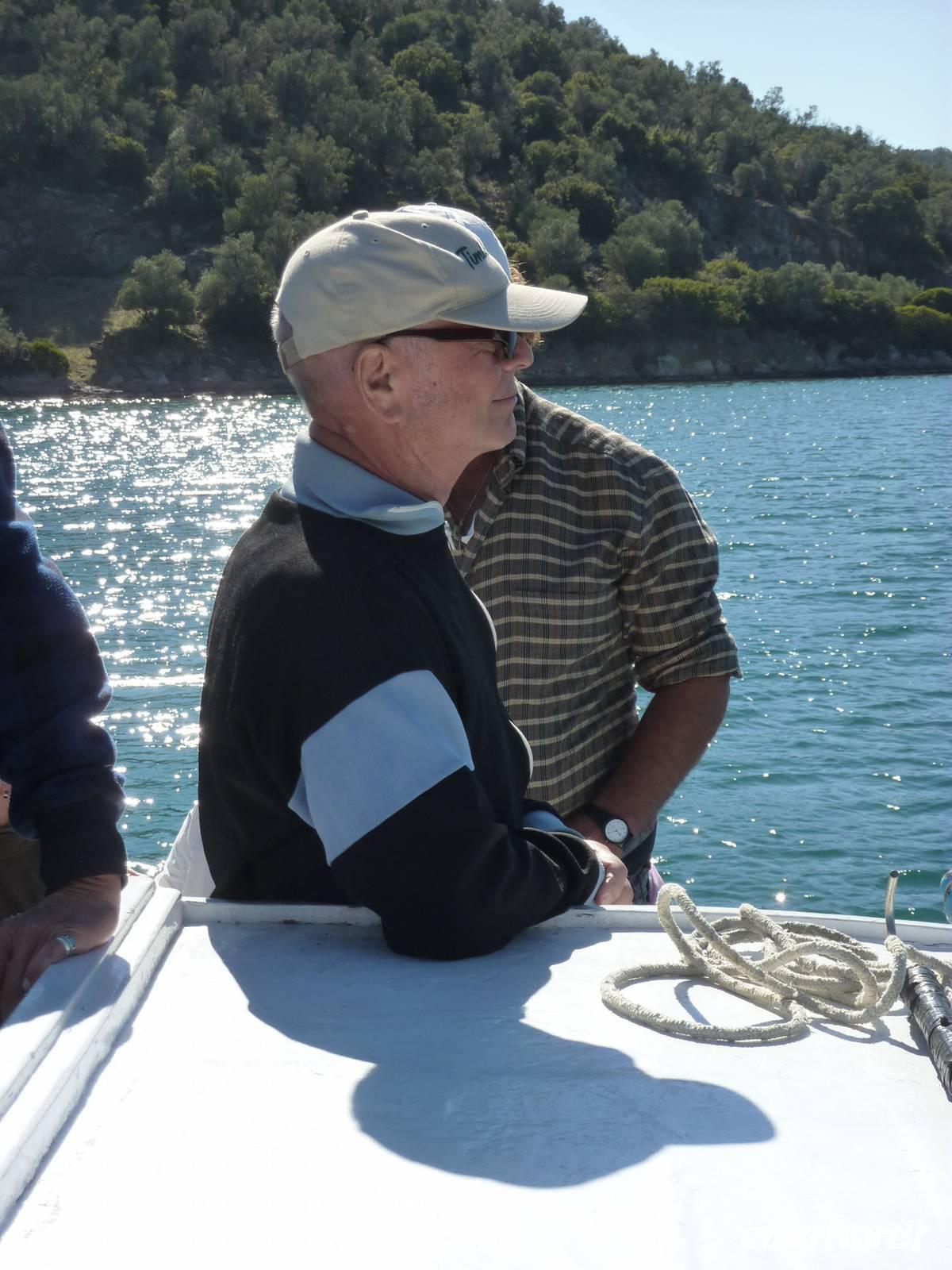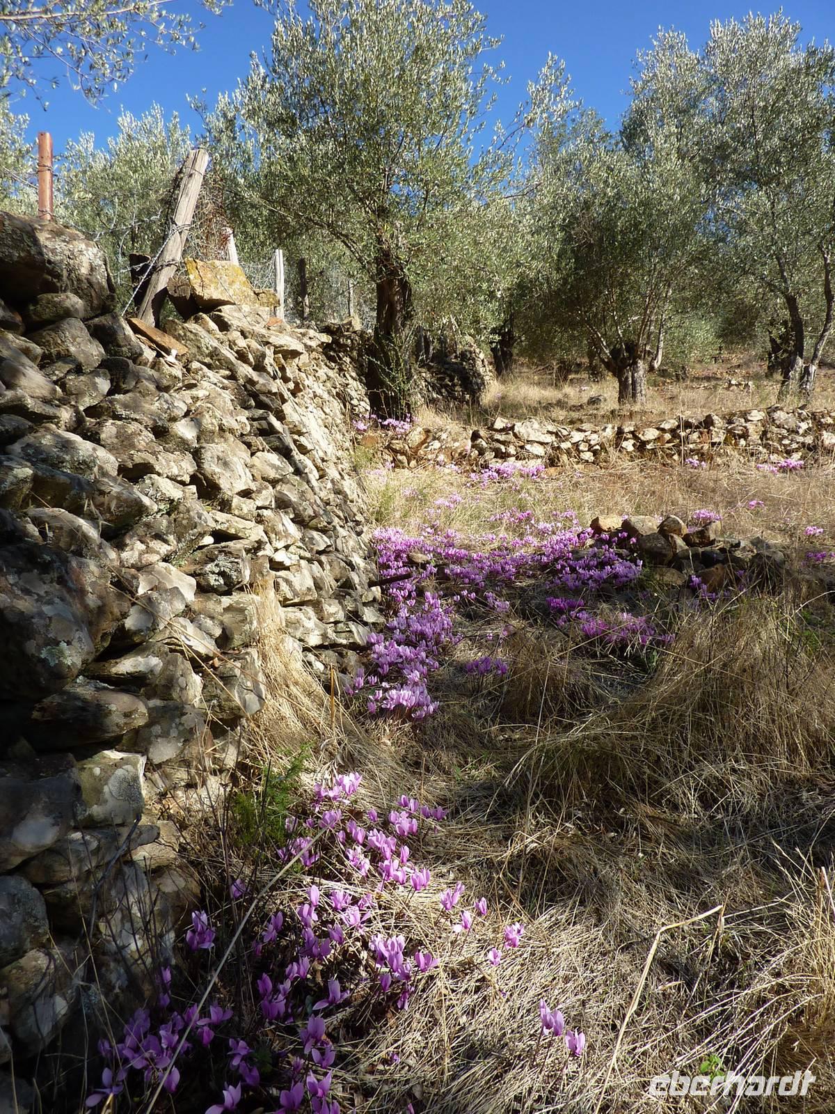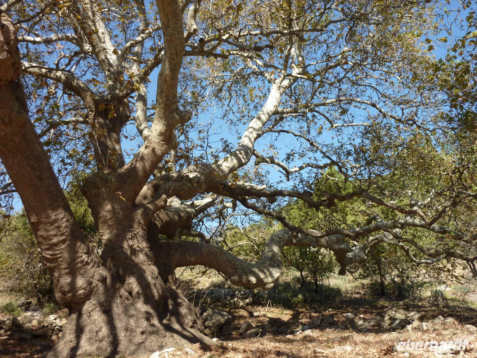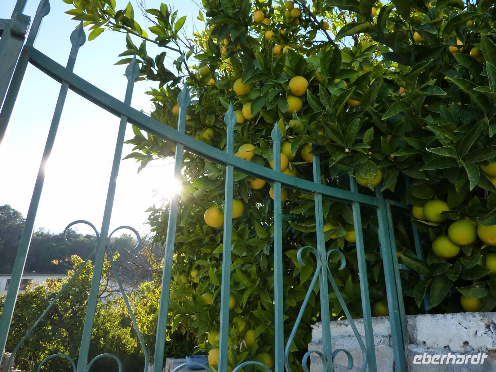 Am Morgen treffe ich 11 meiner Reiseteilnehmer am Flughafen Berlin-Tegel und gemeinsam fliegen wir zunächst nach München, wo bereits 2 weitere Teilnehmer auf uns warten. Pünktlich geht es weiter und um 13.55 Uhr erreichen wir unser Ziel. Schon beim Überfliegen der Insel kann man das üppige Grün bewundern, was eher untypisch für diese Region ist, die im Herbst meist verbrannt und sehr karg daherkommt. Der Flughafen ist winzig, kurze Wege und die Koffer laufen auch schon über das Gepäckband, kaum dass wir die Halle betreten haben. Und da erspähe ich auch schon Eva, die uns braungebrannt herzlich begrüßt. Vor dem Flughafen steht auch schon der Bus und dahinter ist bereits das Meer in Sicht. Der Himmel ist etwas wolkenverhangen, aber das war so angekündigt und ein ganz klein wenig lugt auch die Sonne durch. Aber es ist warm und ein lauer Wind weht uns um die Nase. Nach ca. 40 Minuten Fahrt erreichen wir auch schon unser Domizil für die nächsten Tage direkt am Golf von Gera gelegen - wie sagt Eva so schön - „unsere Luxus-Schafställe" - das kleine lauschige Hotel inmitten eines Olivenhains „ Olive Grove". Hier werden wir bereits vom Hausherren Alexandros erwartet. Zusammen mit seiner Mutter nehmen wir den Check-In vor. Plötzlich entlädt sich der Himmel und ein starker Regenguss erschwert das Beziehen unserer Zimmer ein wenig, denn unsere Zimmer befinden sich in kleinen Häuschen und Bungalows. Aber einer nach dem anderen gelangt dann mehr oder weniger trockenen Fußes zu seinem kleinen rustikal, aber charmant eingerichteten „Luxus-Schafstall". Wir haben ein wenig Zeit uns auszuruhen und anzukommen. Um 17.30 Uhr treffen wir uns auf der Frühstücksterrasse und Eva stellt kurz das Programm für die kommenden Tage vor. Und anschließend spazieren wir ca. 10 Minuten bis zur nächsten Taverne, in der uns ein äußerst leckeres, sehr griechisches Abendessen serviert wird, mit frischen Salaten, gegrillten Garnelen, eingelegten Sardellen, Tsatsiki natürlich... alles frisch zubereitet, einfach grandios. Dazu ein Gläschen Wein und abschließend noch einen Ouzo und wir waren rundum zufrieden.